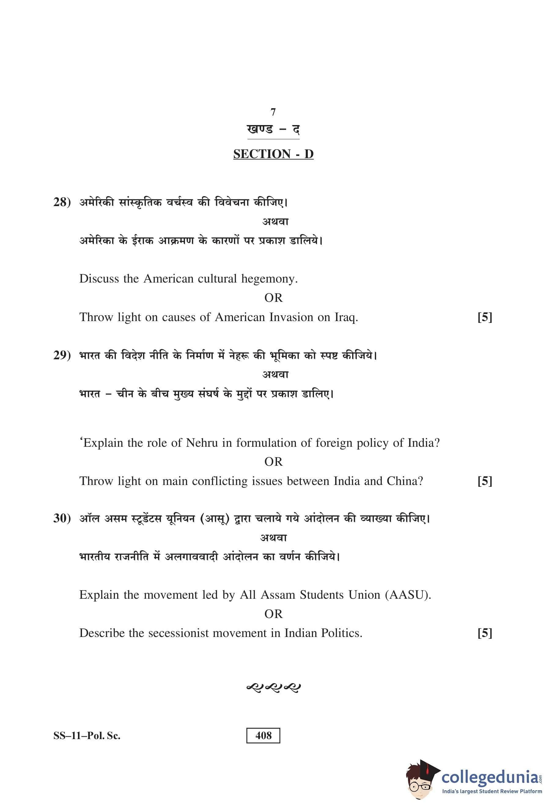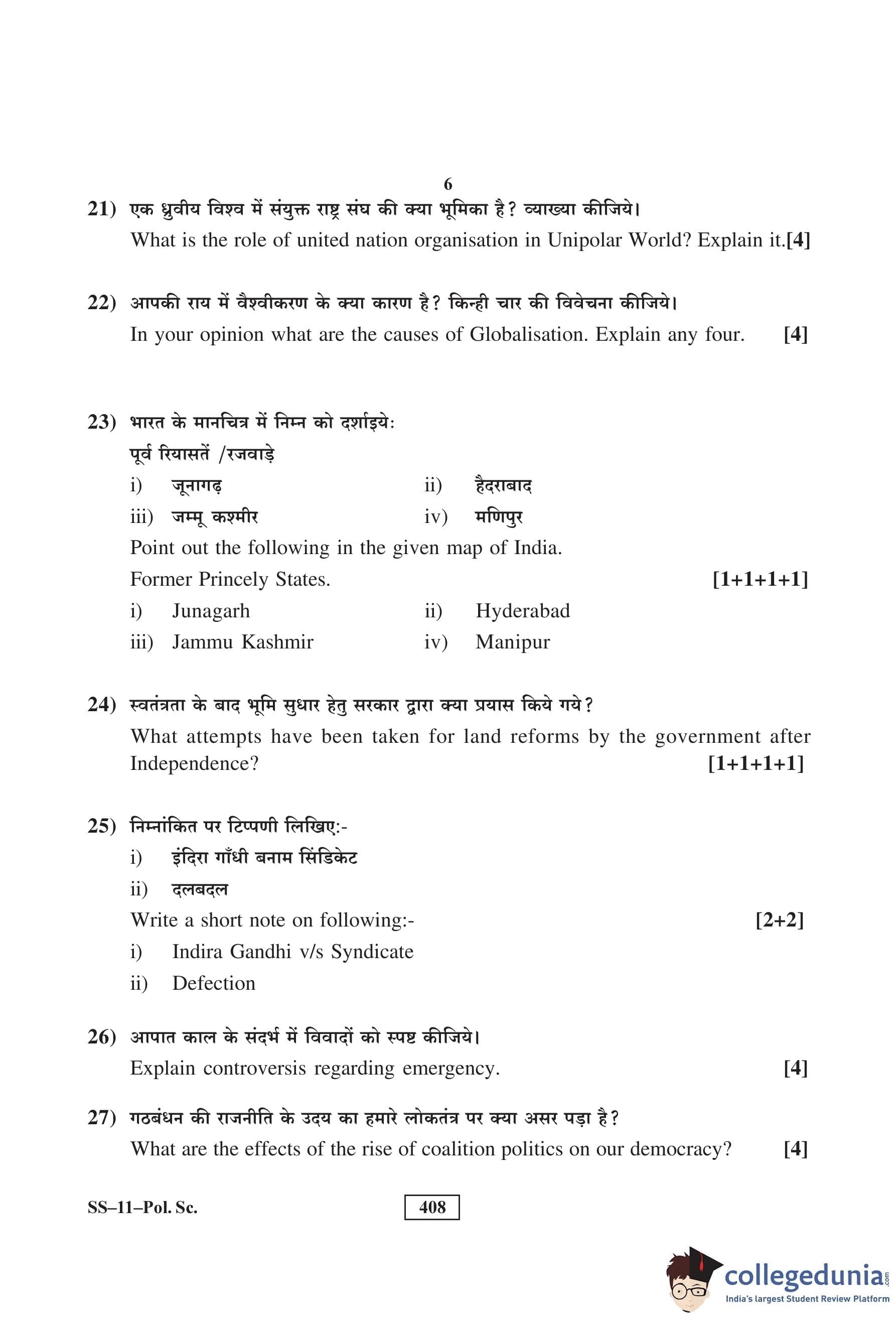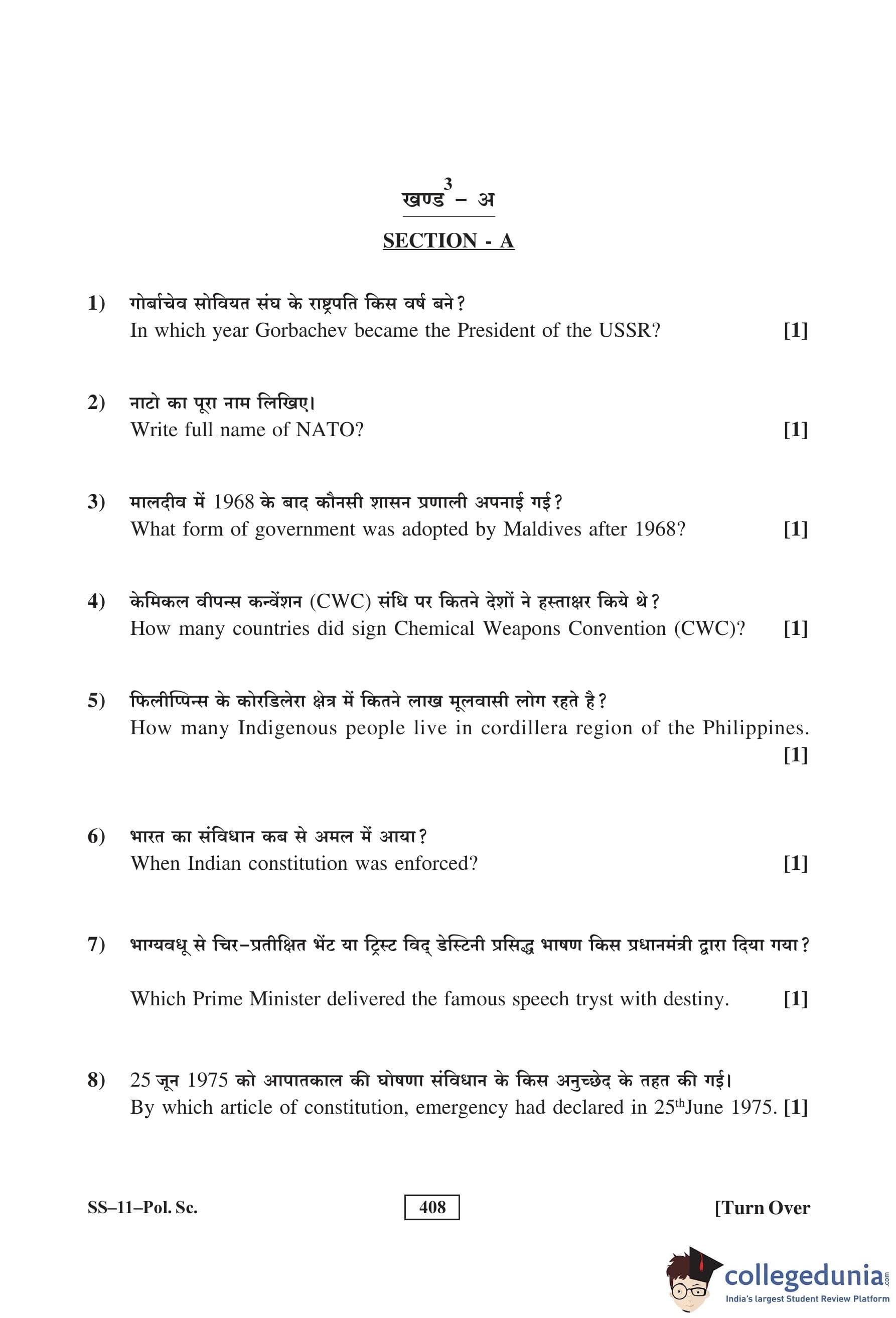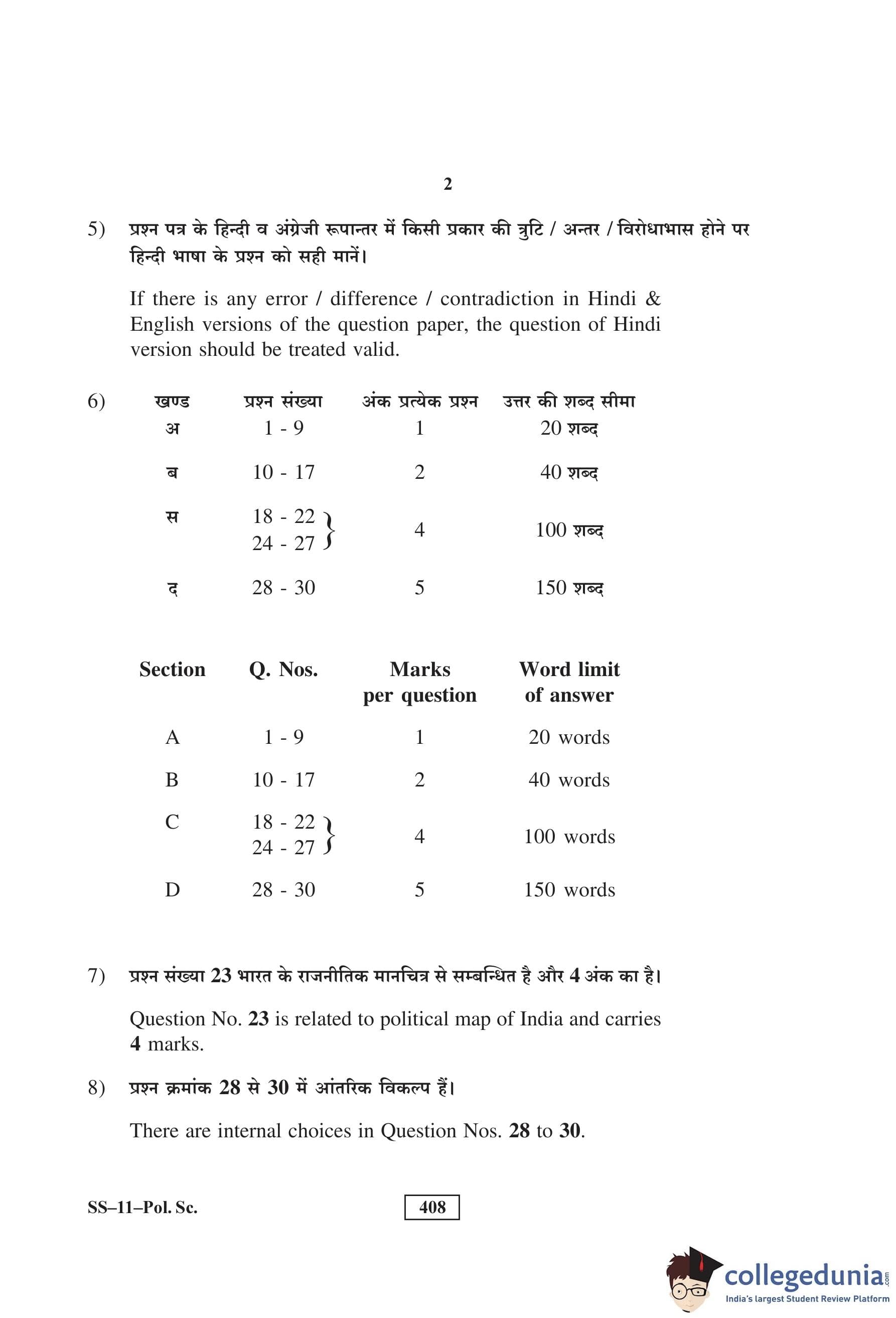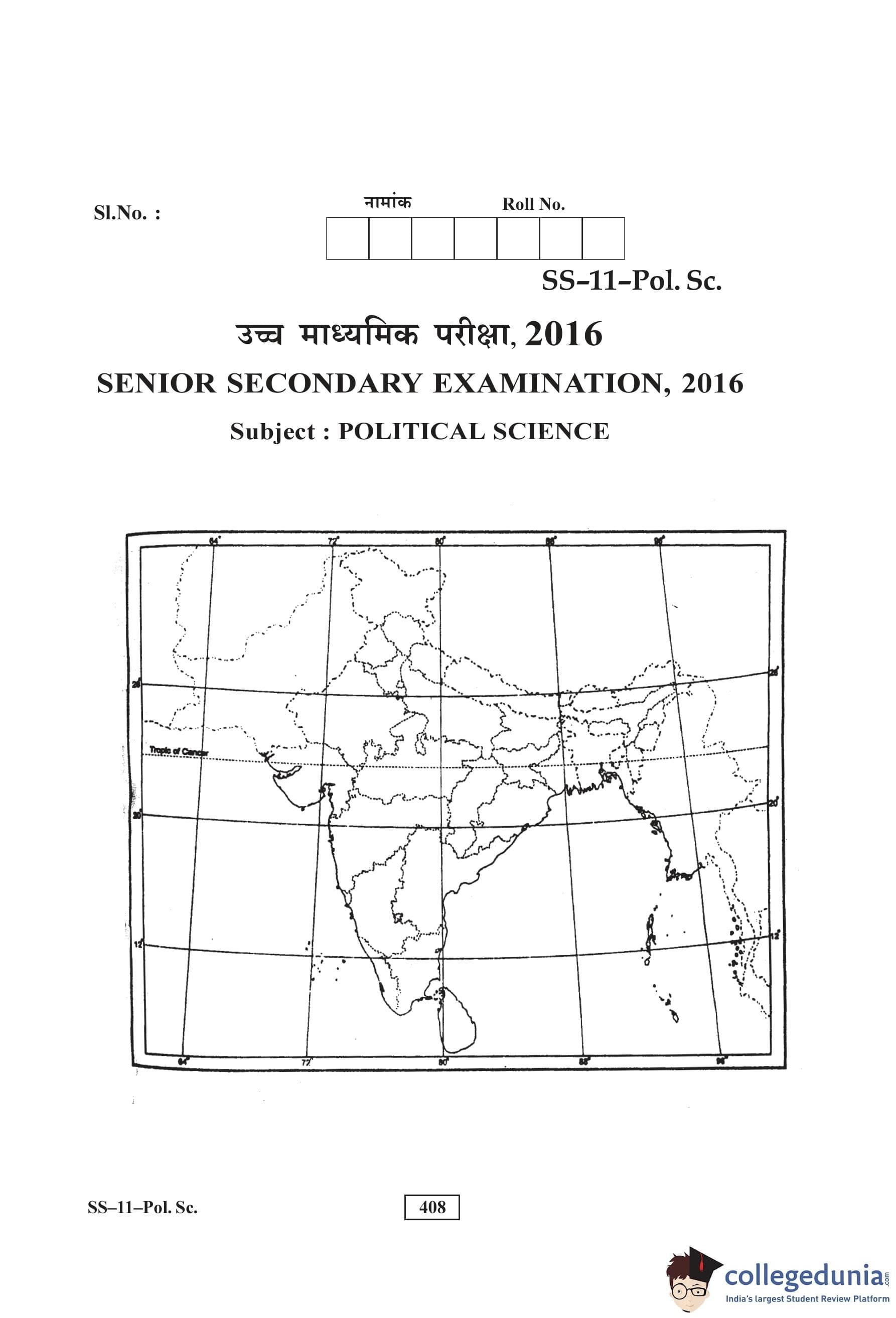 RBSE Class 12 Political Science Question Paper 2016 with Answer Key pdf is available for download here. The exam was conducted by Board of Secondary Education Rajasthan (BSER) on March 8, 2016 in the Morning Session 8:30 AM to 11:45 AM. The question paper comprised a total of 30 questions divided among 4 sections.