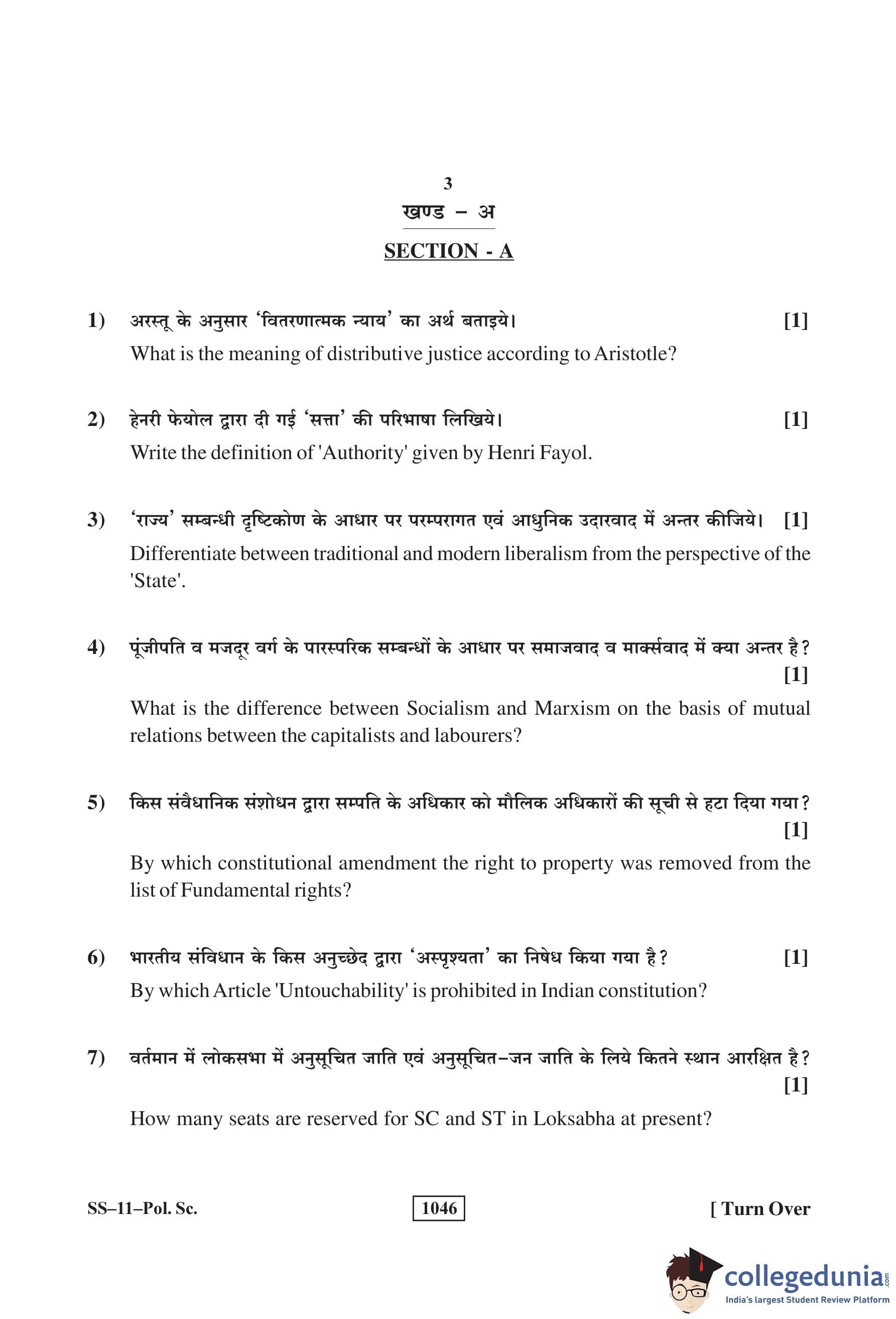 RBSE Class 12 Political Science Question Paper 2018 with Answer Key pdf is available for download here. The exam was conducted by Board of Secondary Education Rajasthan (BSER) on March 12, 2018 in the Morning Session 8:30 AM to 11:45 AM. The question paper comprised a total of 30 questions divided among 4 sections.