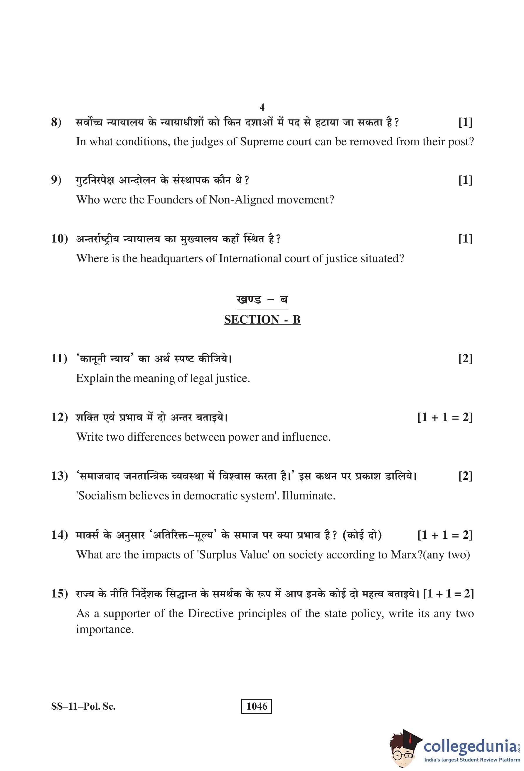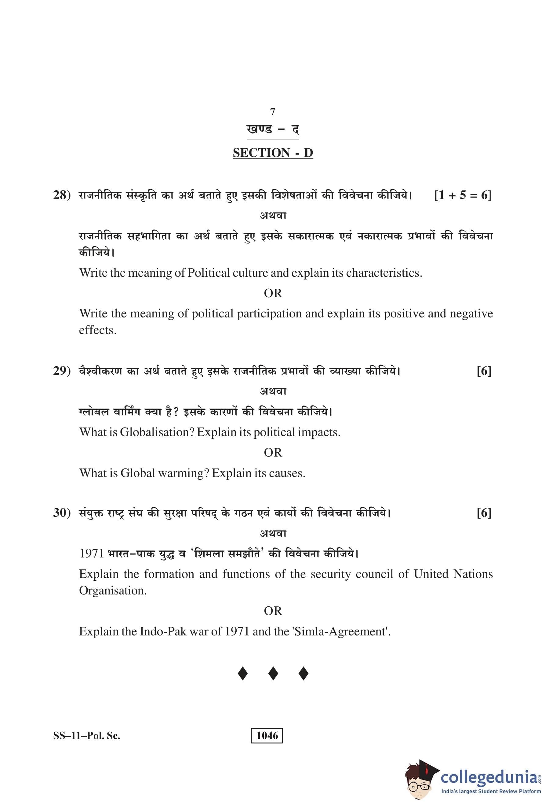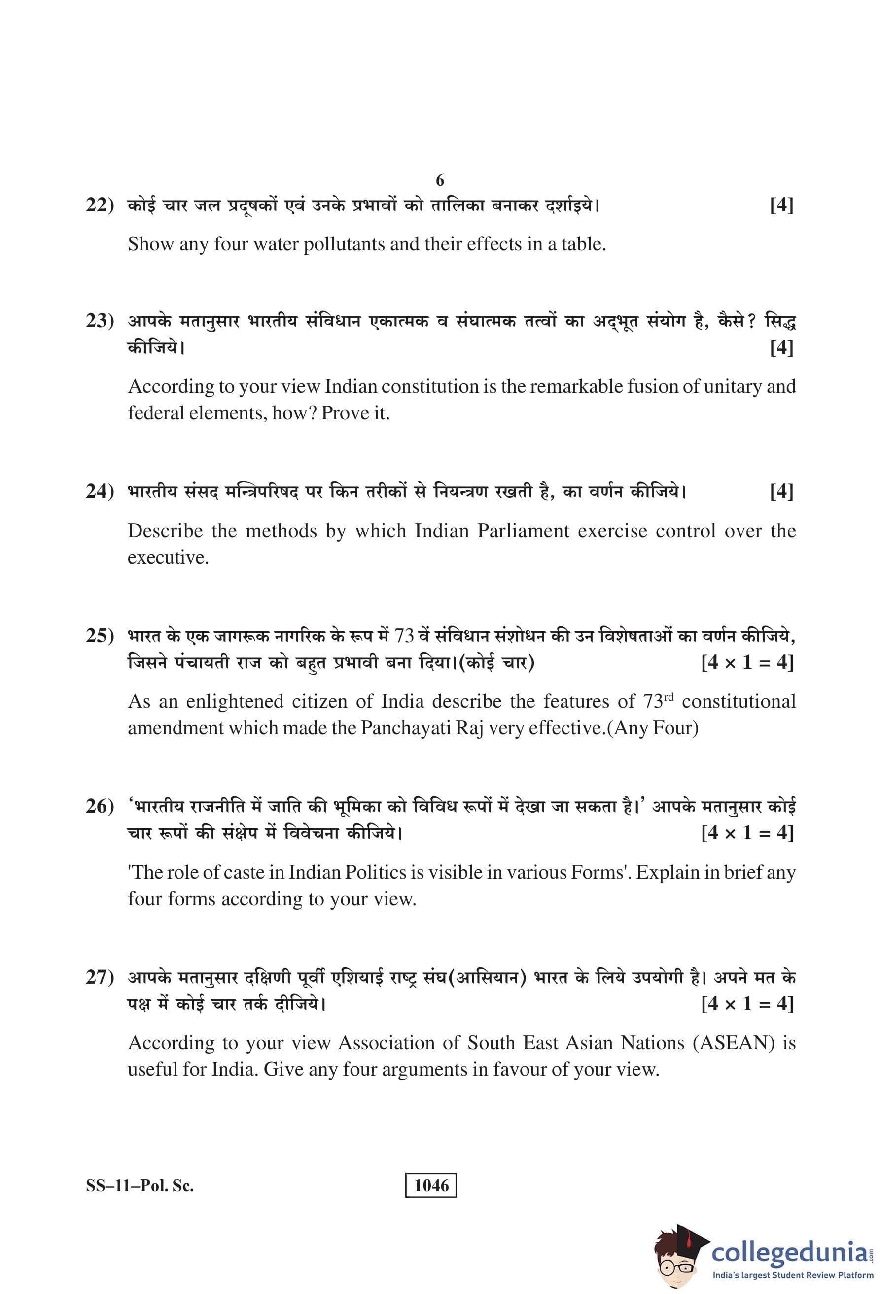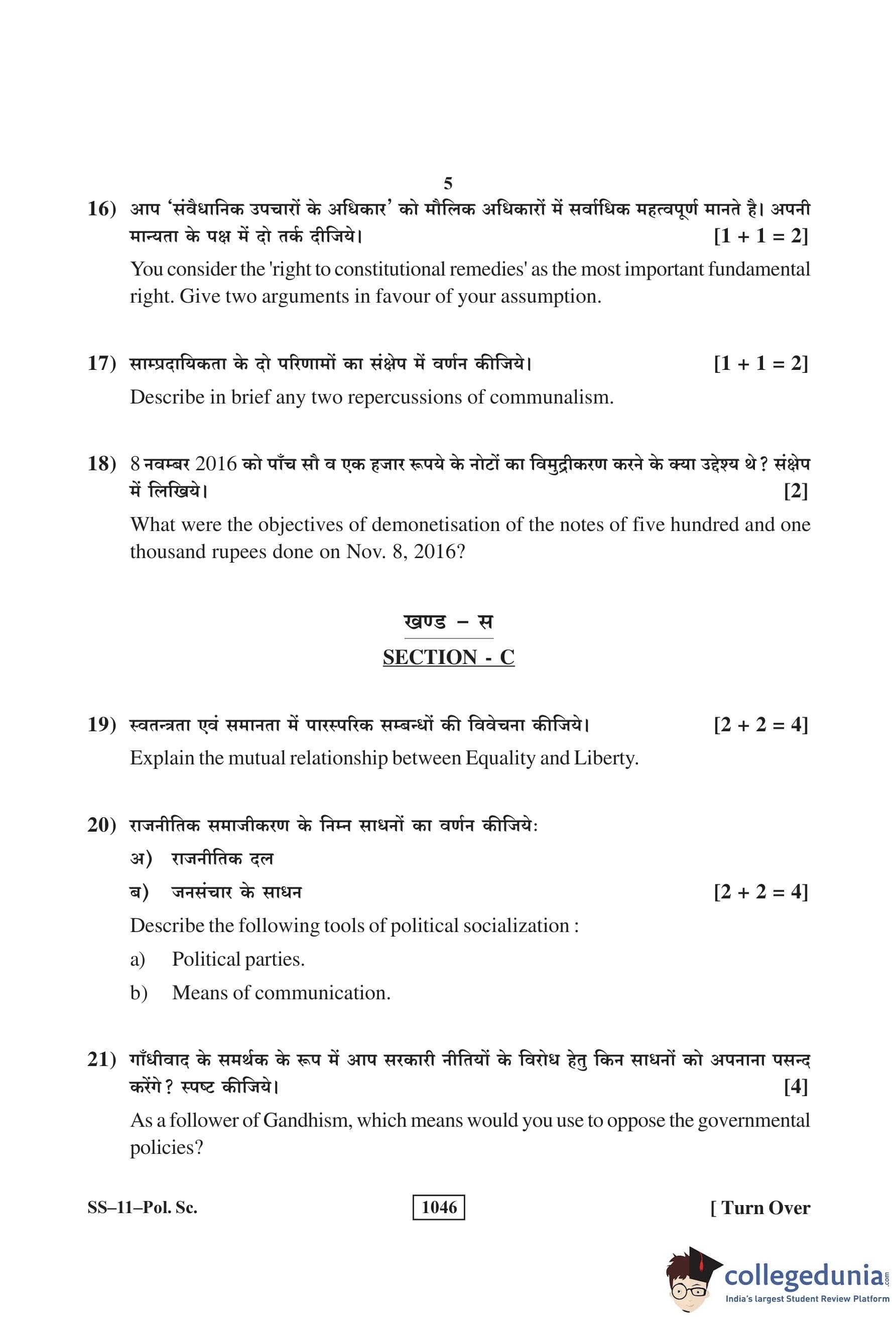 RBSE Class 12 Political Science Question Paper 2018 with Answer Key