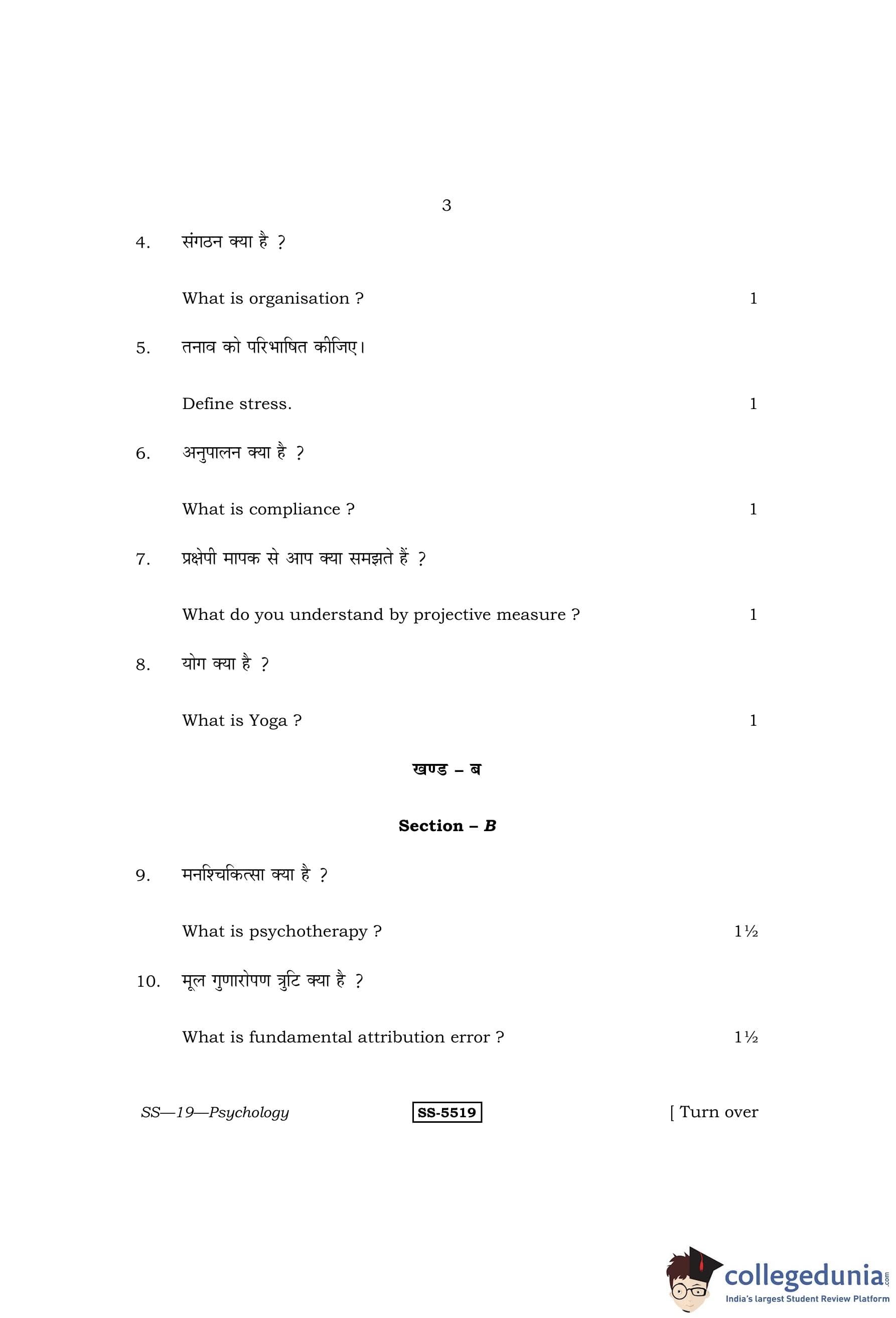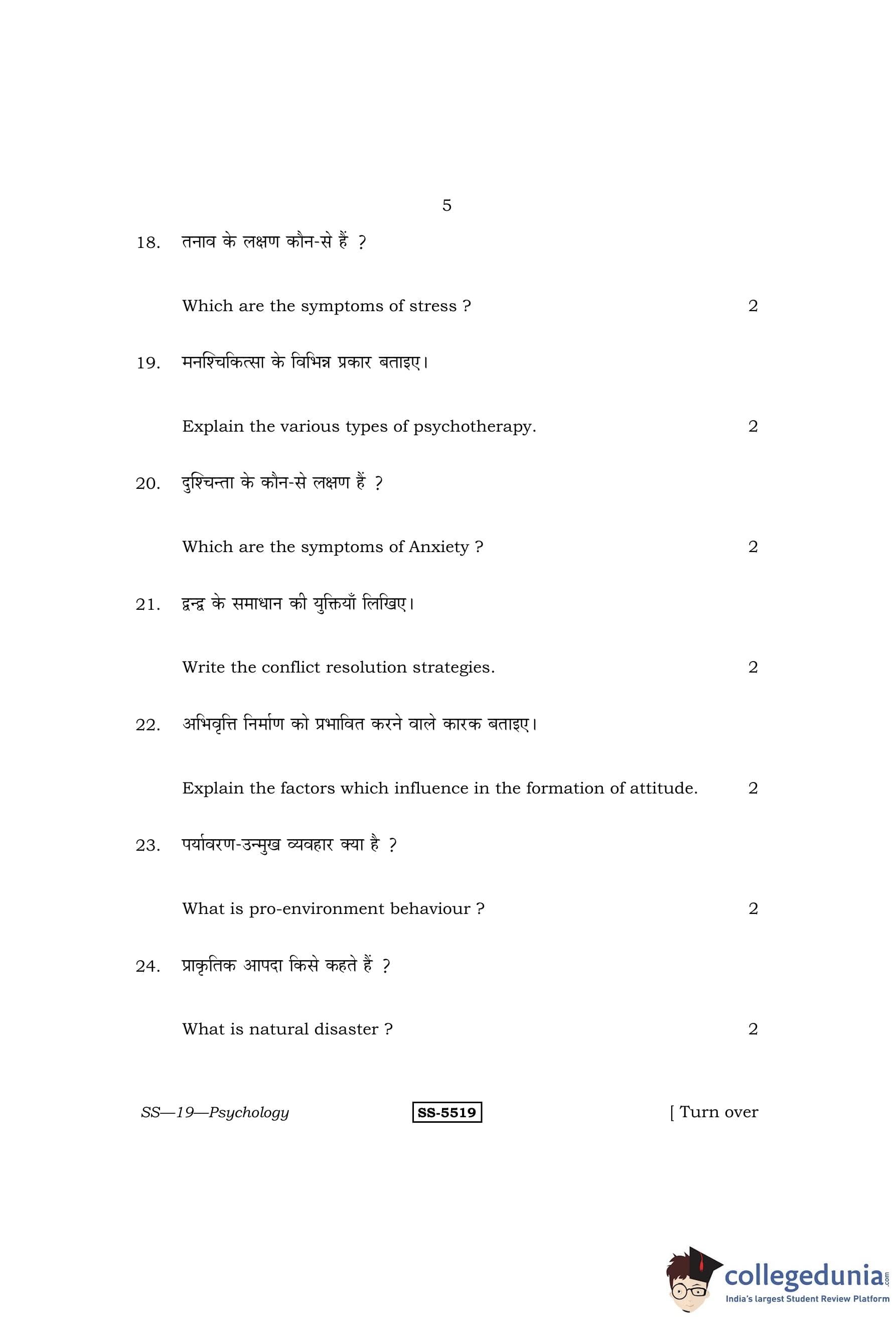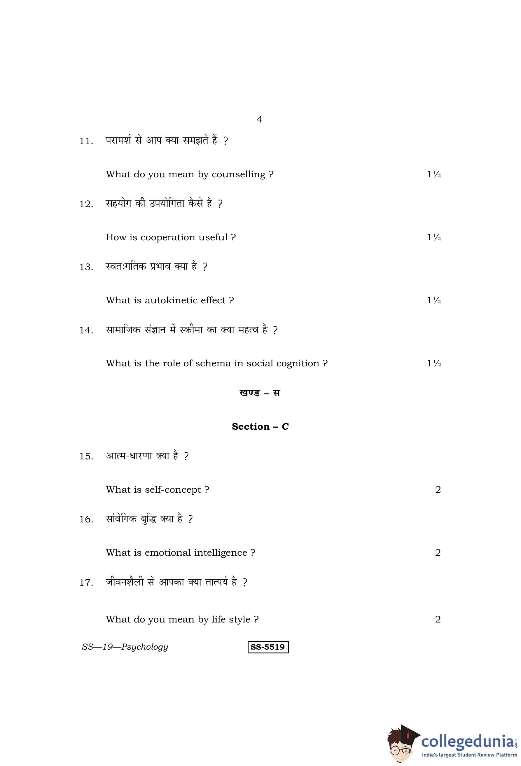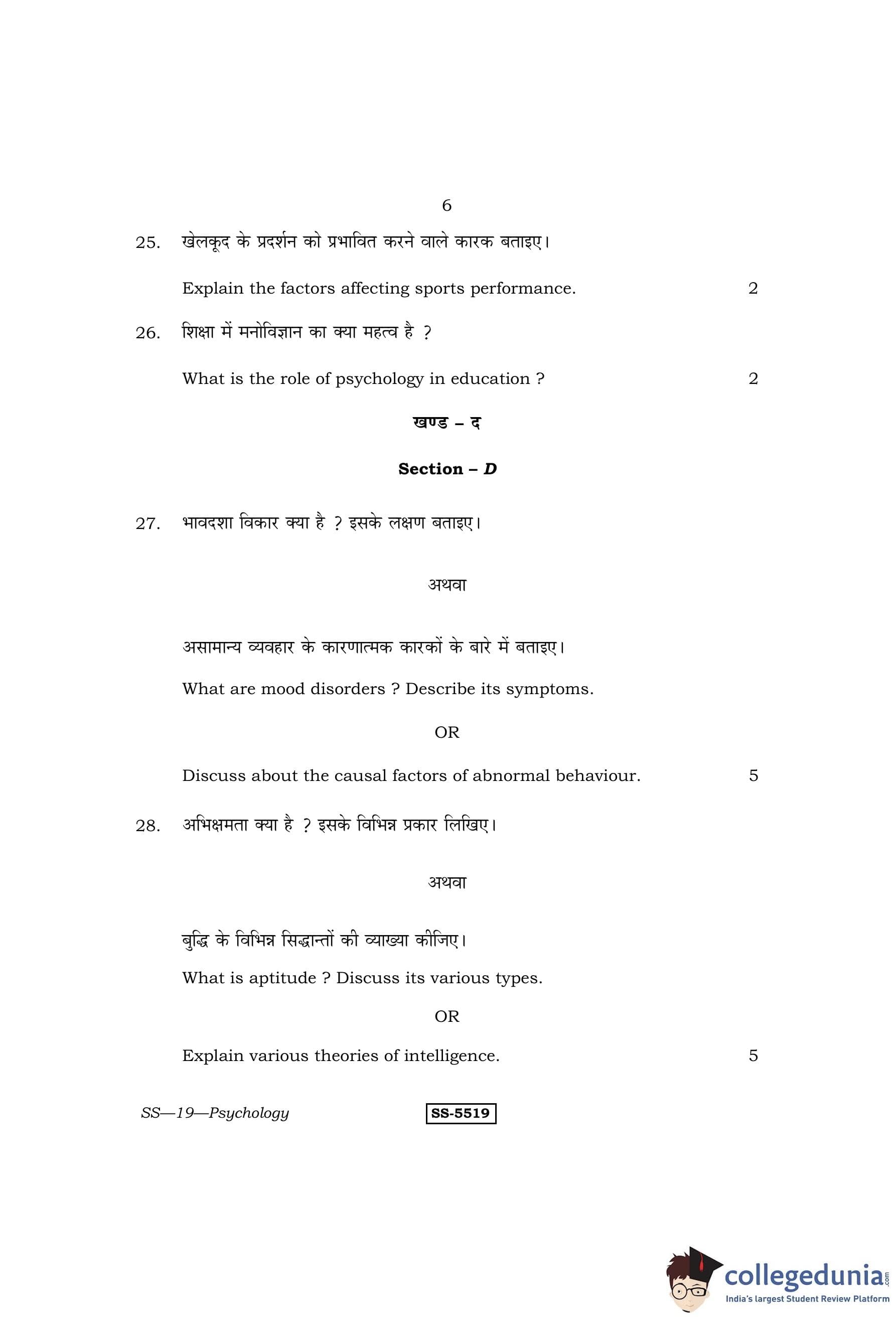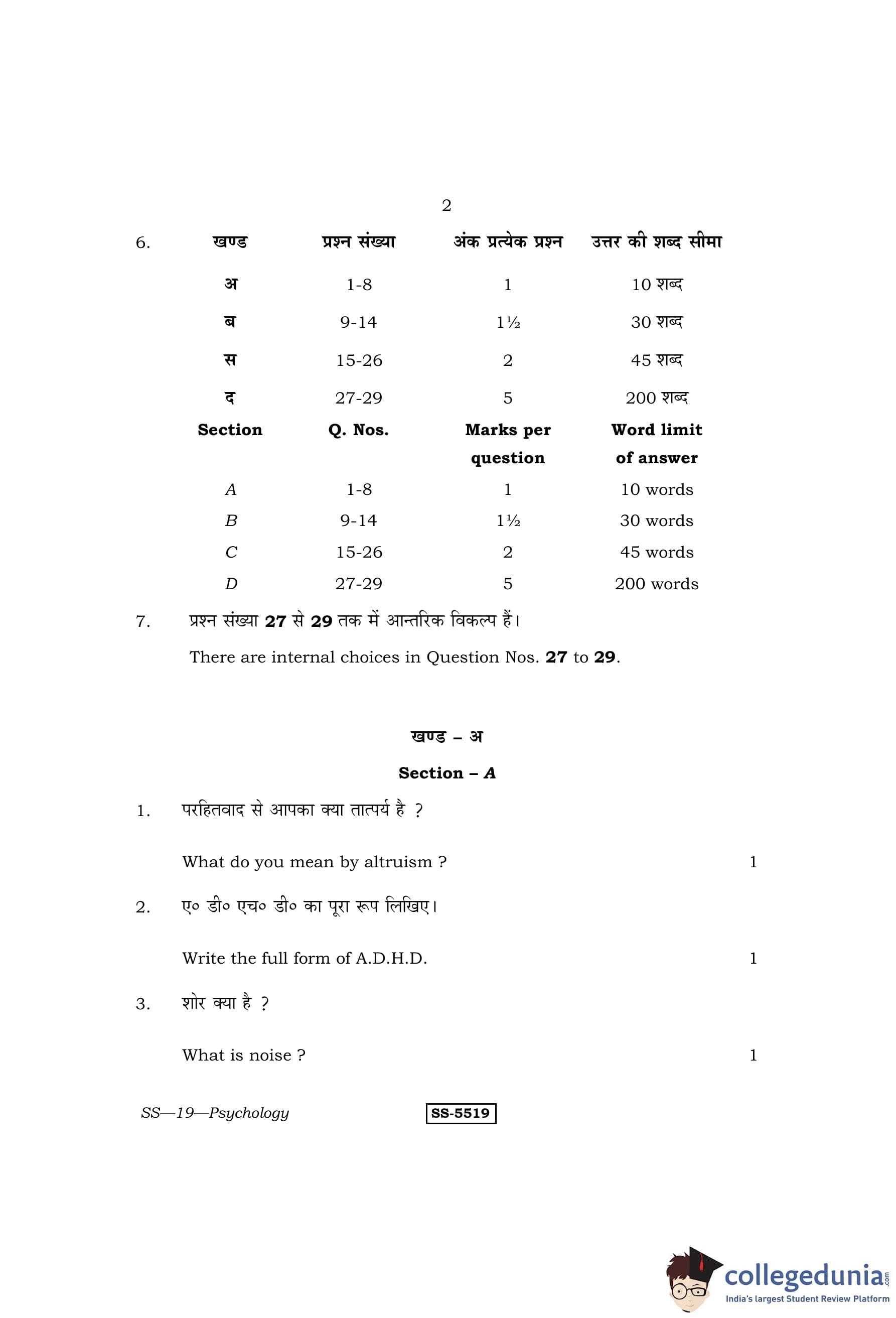 RBSE Class 12 Psychology Question Paper 2014 with Answer Key pdf is available for download here. The exam was conducted by Board of Secondary Education Rajasthan (BSER) on March 15, 2014 in the Morning Session 8:30 AM to 11:45 AM. The question paper comprised a total of 29 questions divided among 4 sections.