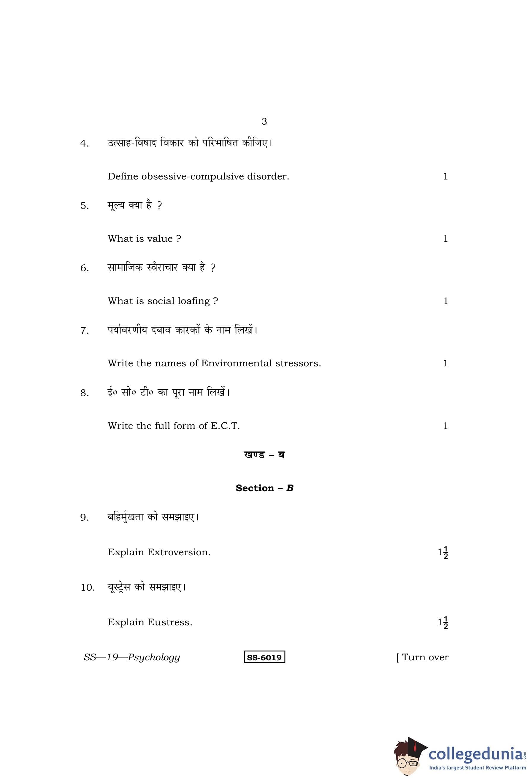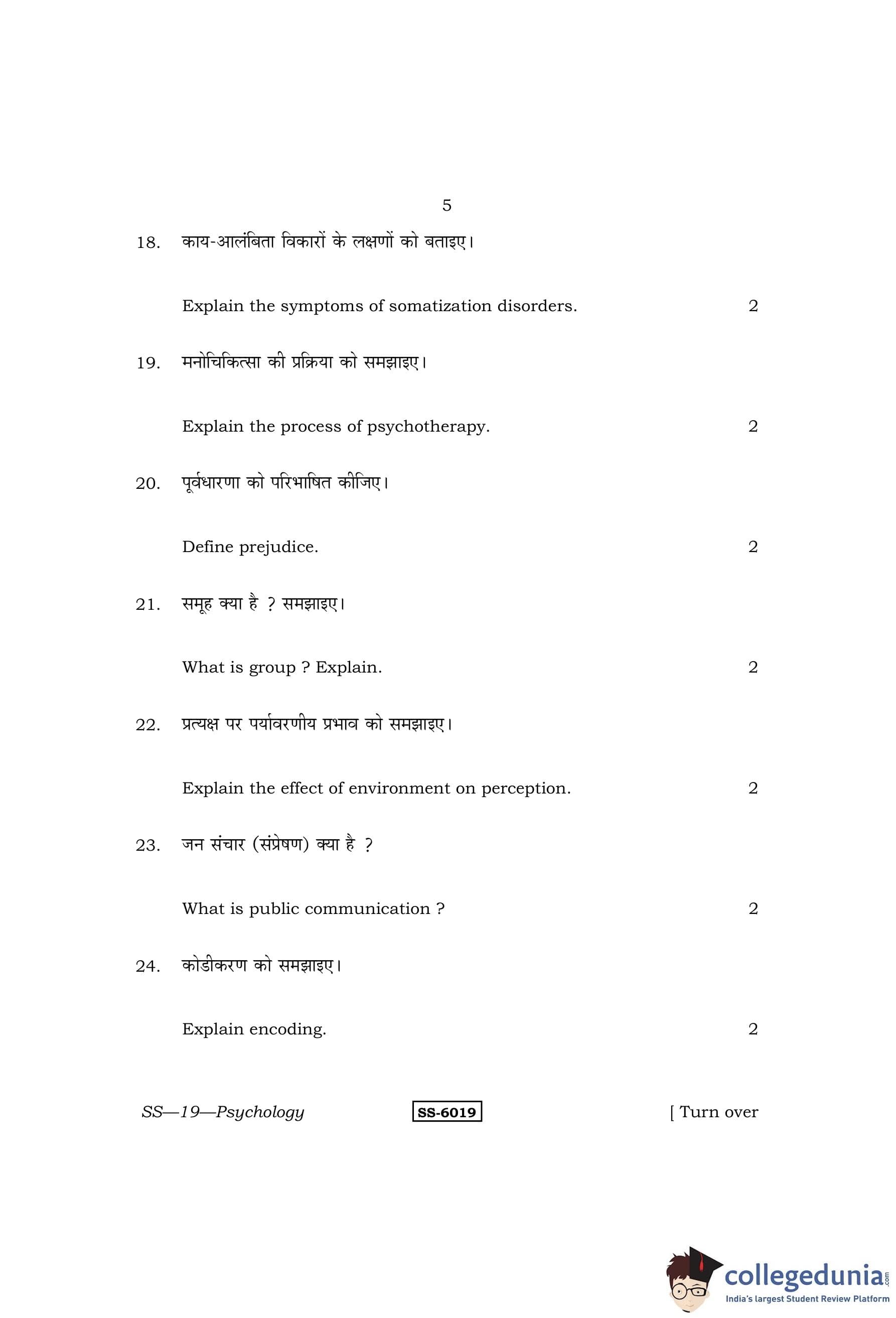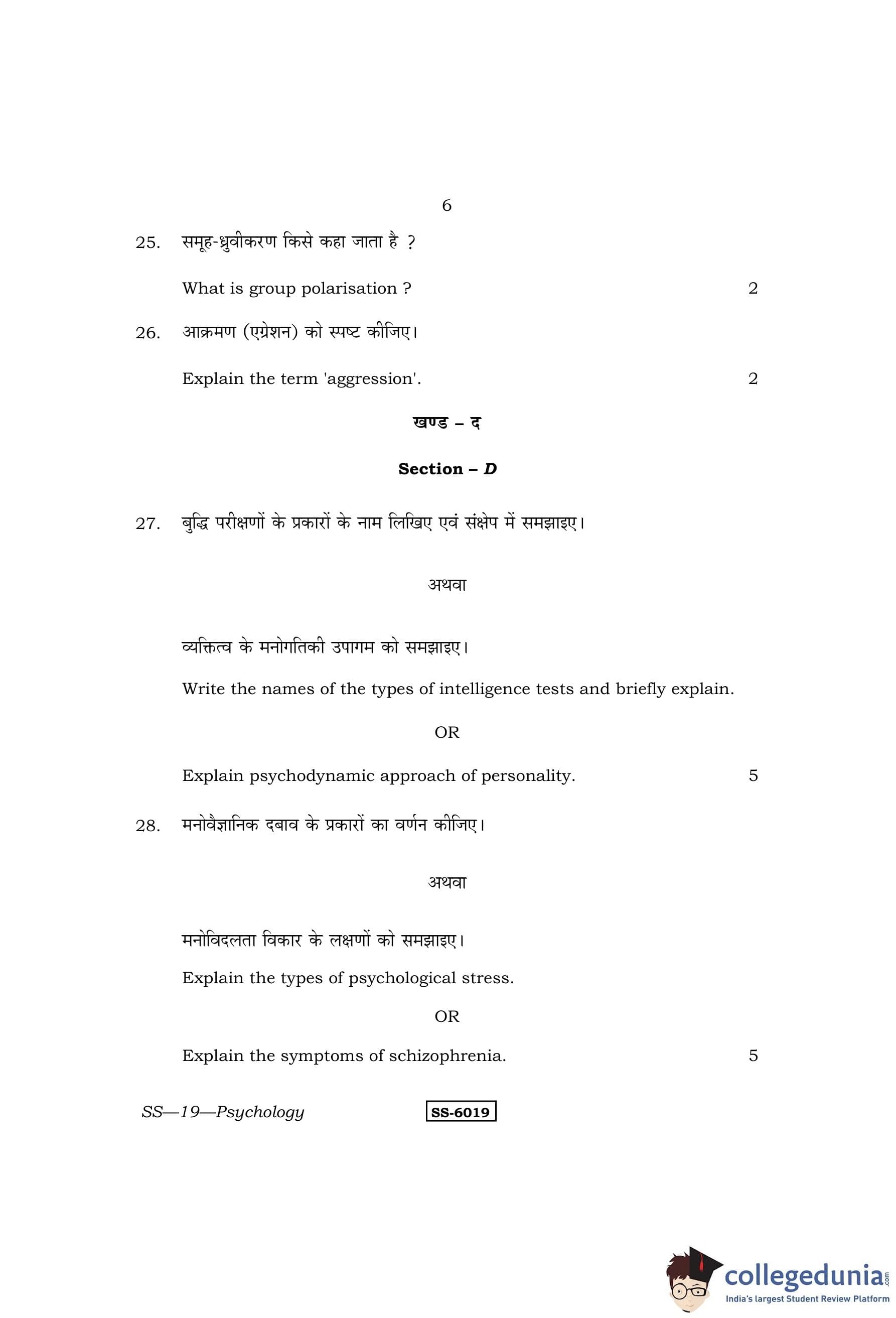 RBSE Class 12 Psychology Question Paper 2015 with Answer Key pdf is available for download here. The exam was conducted by Board of Secondary Education Rajasthan (BSER) on March 27, 2015 in the Morning Session 8:30 AM to 11:45 AM. The question paper comprised a total of 29 questions divided among 4 sections.