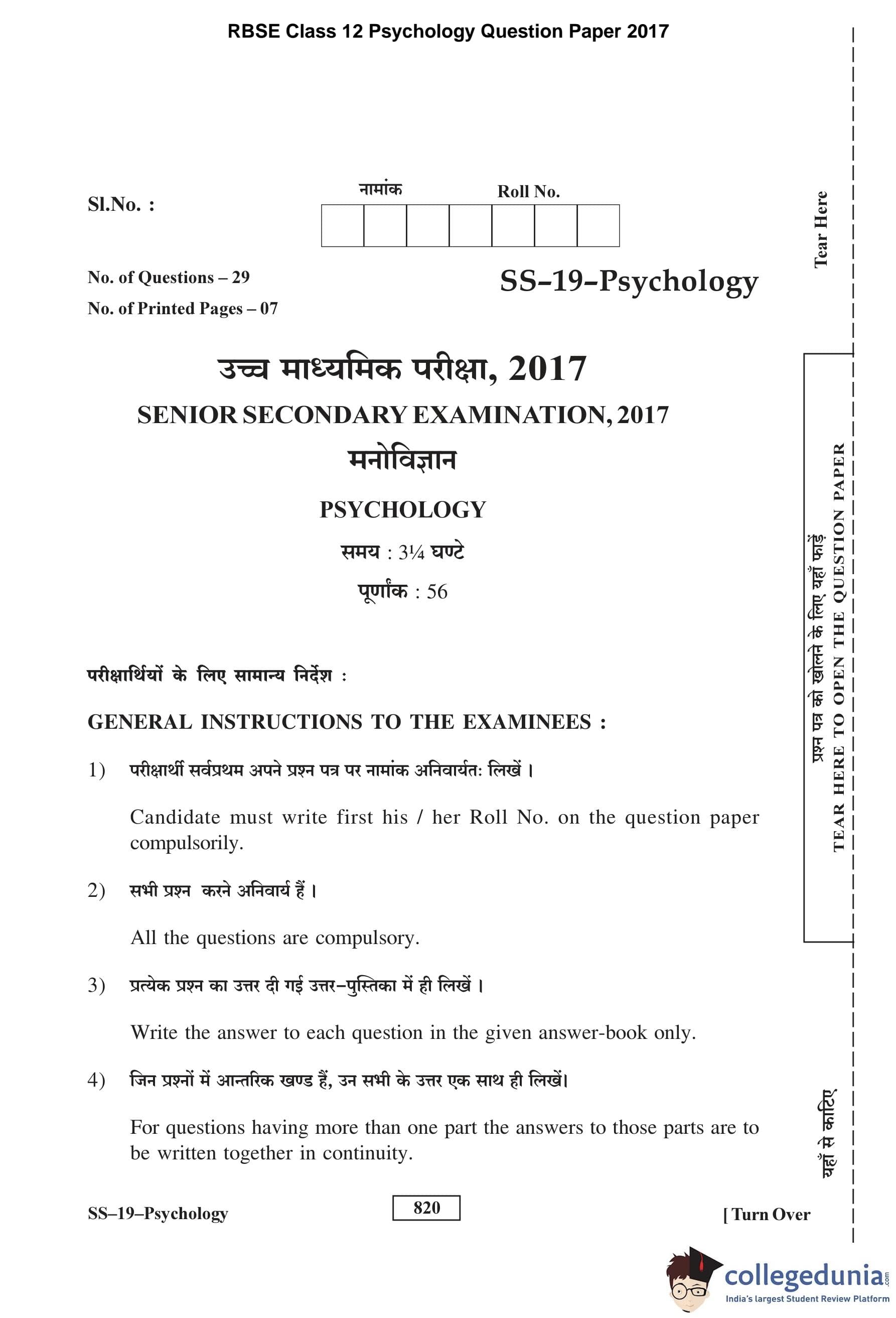 | RBSE Class 12 Psychology Question Paper 2017 PDF | RBSE Class 12 Psychology Answer Key 2017 PDF |