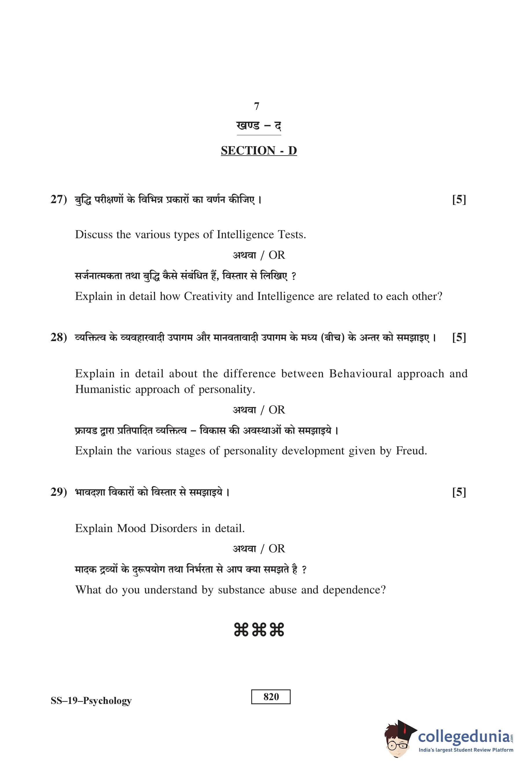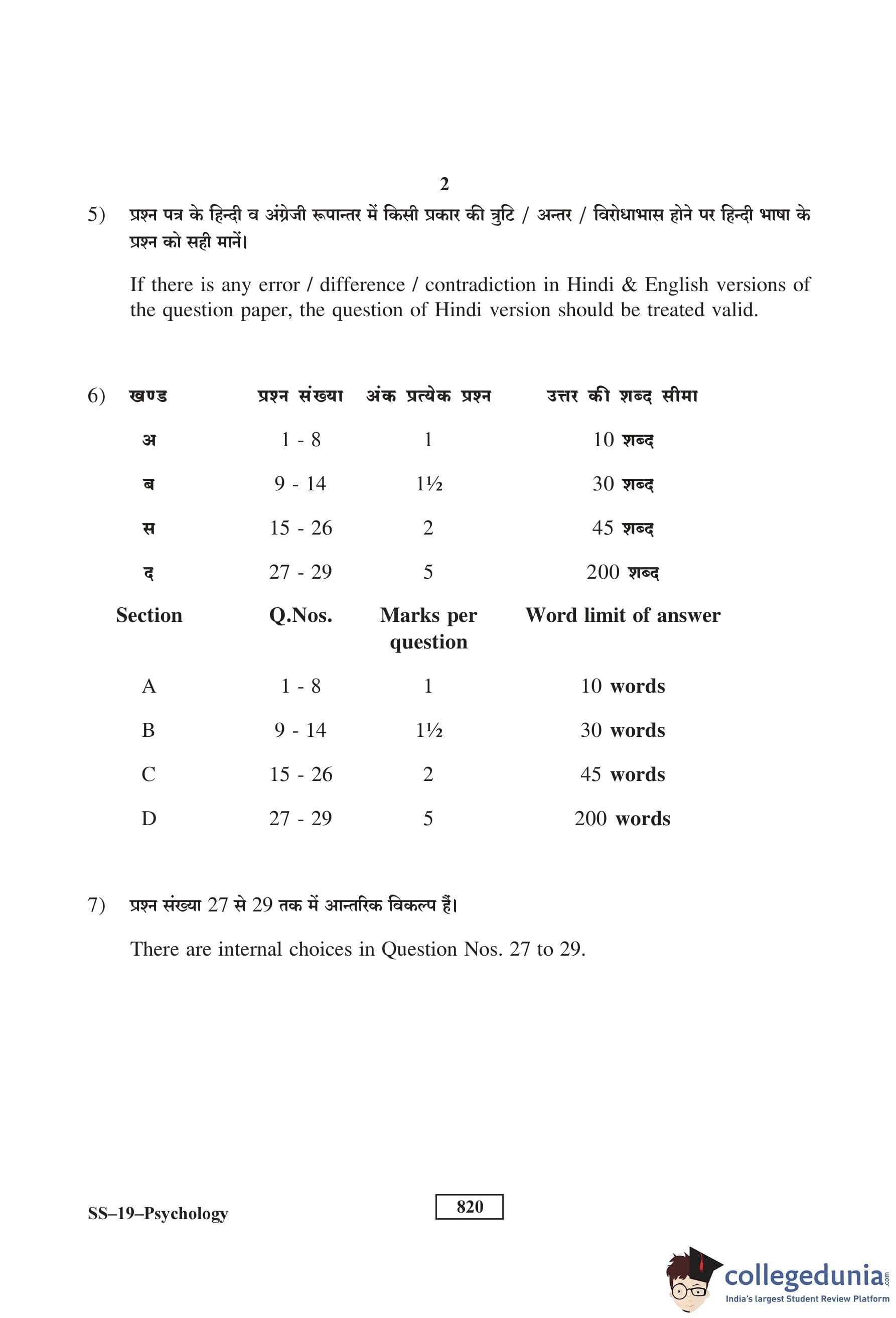 RBSE Class 12 Psychology Question Paper 2017 with Answer Key pdf is available for download here. The exam was conducted by Board of Secondary Education Rajasthan (BSER) on March 21, 2017 in the Morning Session 8:30 AM to 11:45 AM. The question paper comprised a total of 29 questions divided among 4 sections.