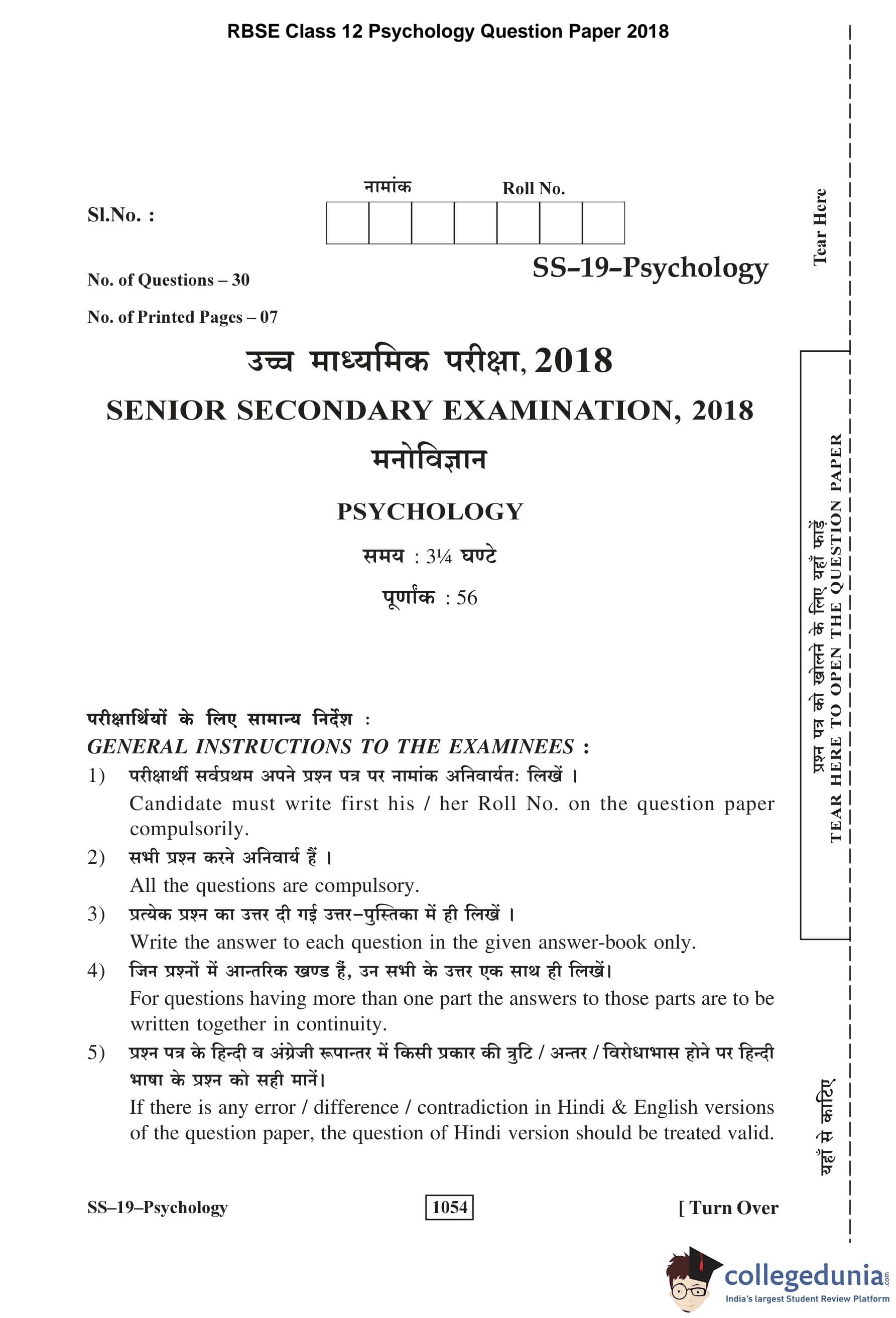 | RBSE Class 12 Psychology Question Paper 2018 PDF | RBSE Class 12 Psychology Answer Key 2018 PDF |