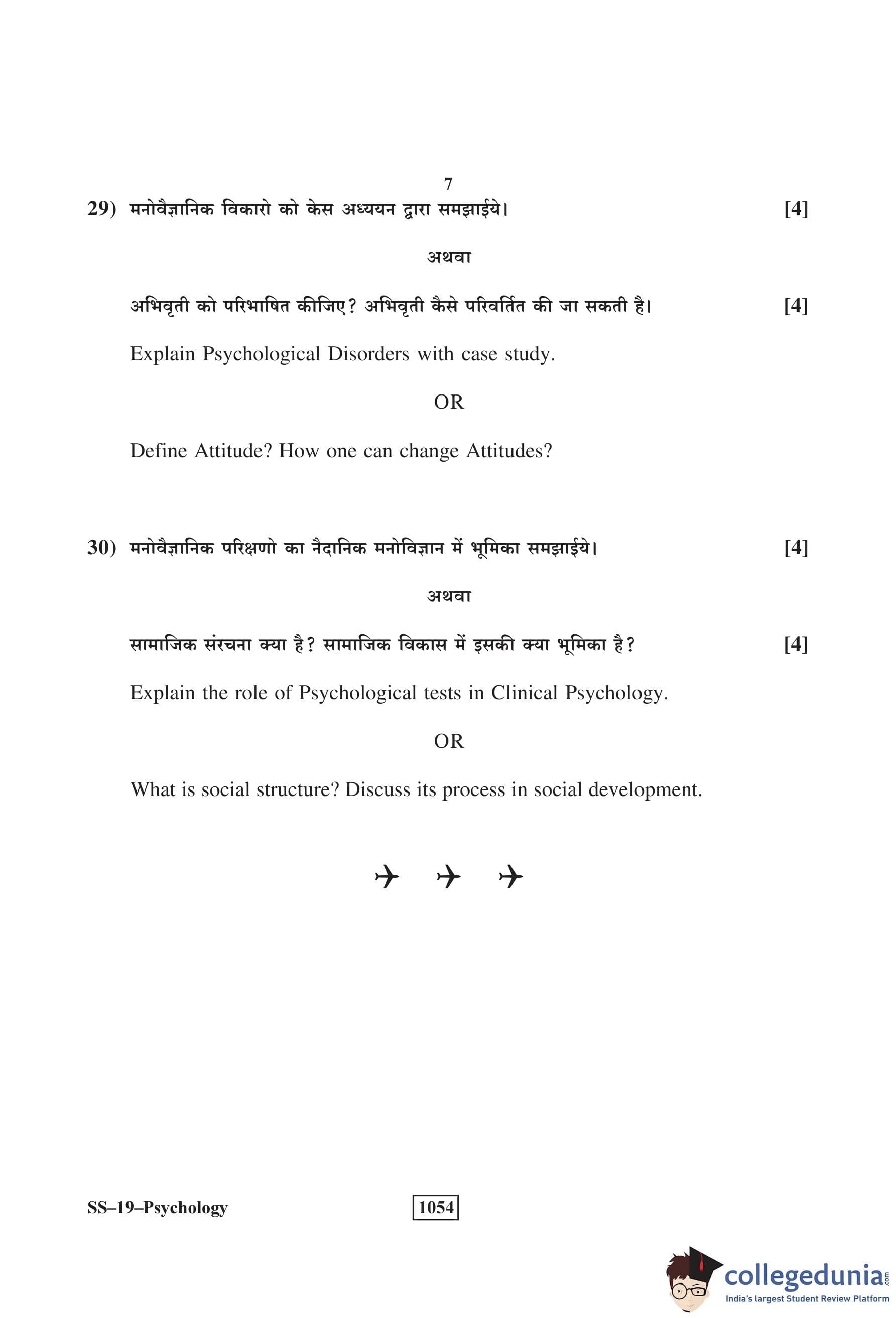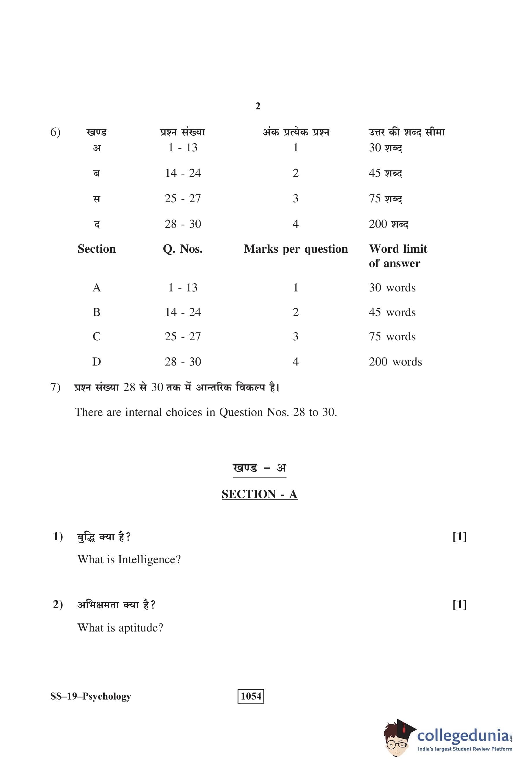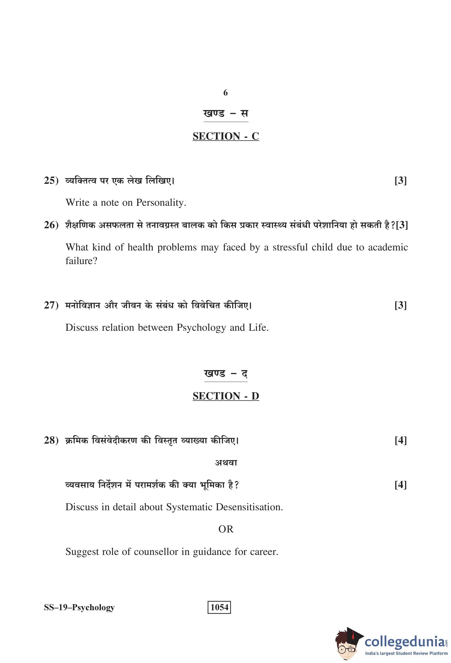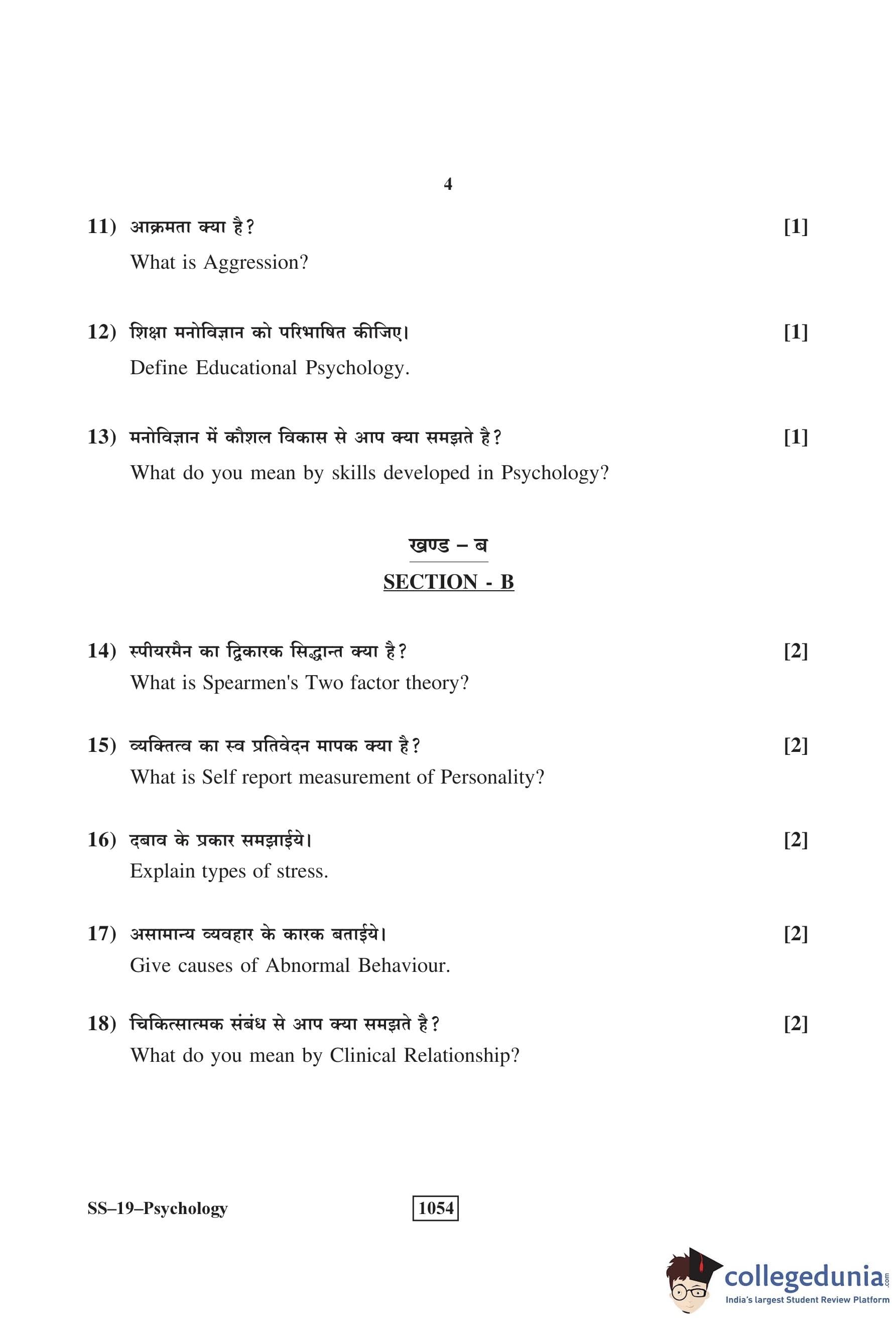 RBSE Class 12 Psychology Question Paper 2018 with Answer Key pdf is available for download here. The exam was conducted by Board of Secondary Education Rajasthan (BSER) on March 24, 2018 in the Morning Session 8:30 AM to 11:45 AM. The question paper comprised a total of 30 questions divided among 4 sections.
