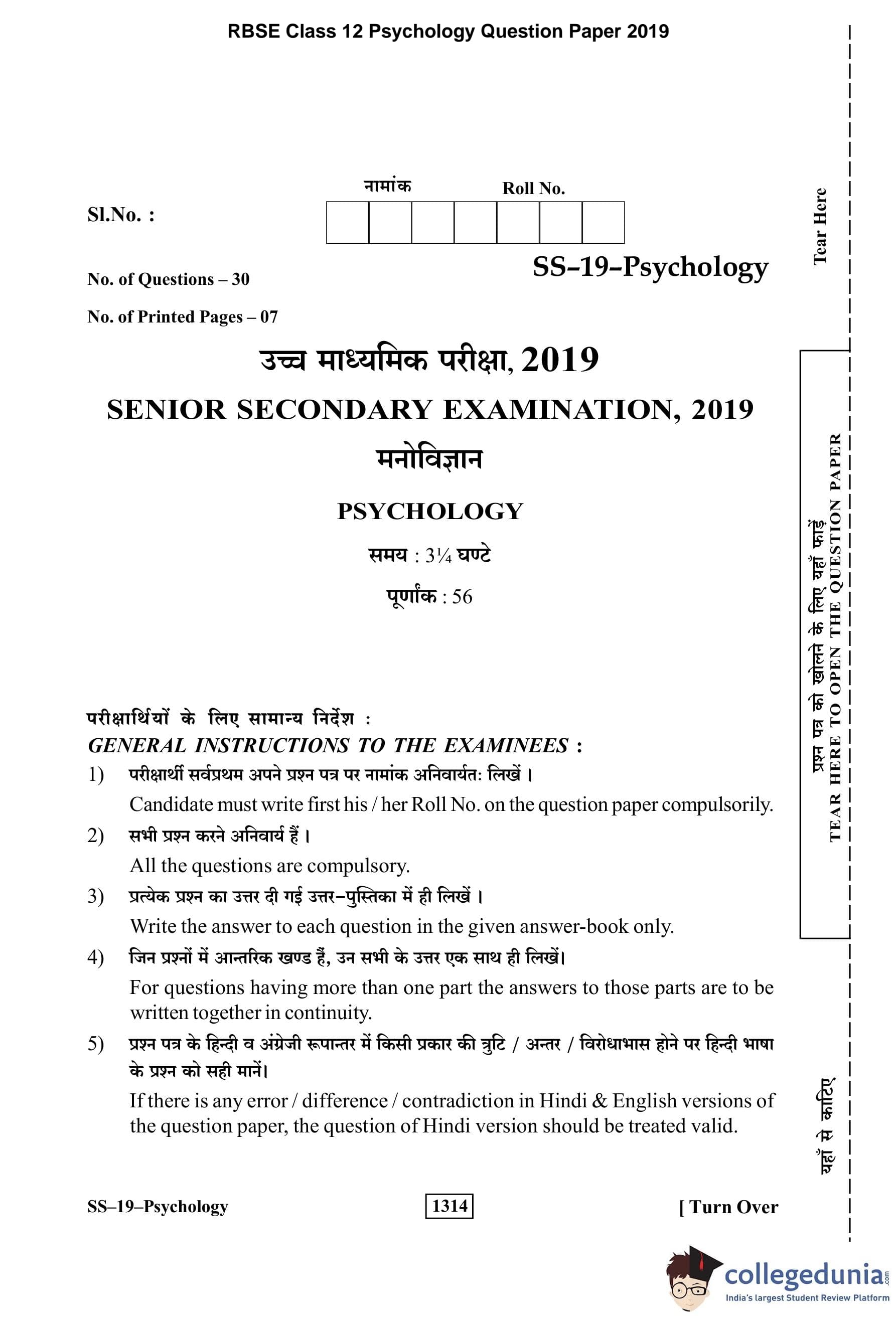 | RBSE Class 12 Psychology Question Paper 2019 PDF | RBSE Class 12 Psychology Answer Key 2019 PDF |