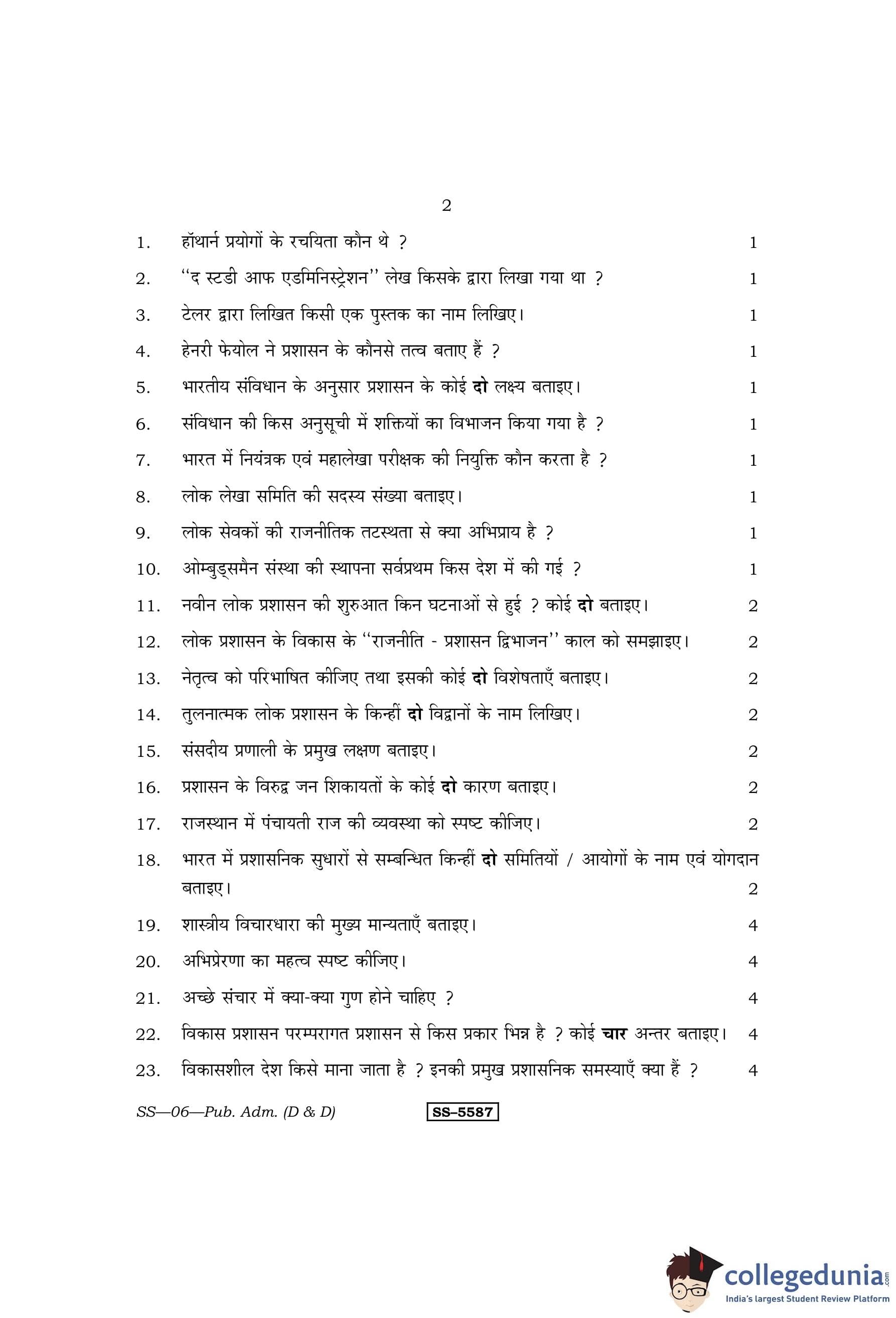 RBSE Class 12 Public Administration (D and D) Question Paper 2014 with Answer Key pdf is available for download here. The exam was conducted by Board of Secondary Education Rajasthan (BSER) on March 14, 2014 in the Morning Session 8:30 AM to 11:45 AM. The question paper comprised a total of 30 questions.