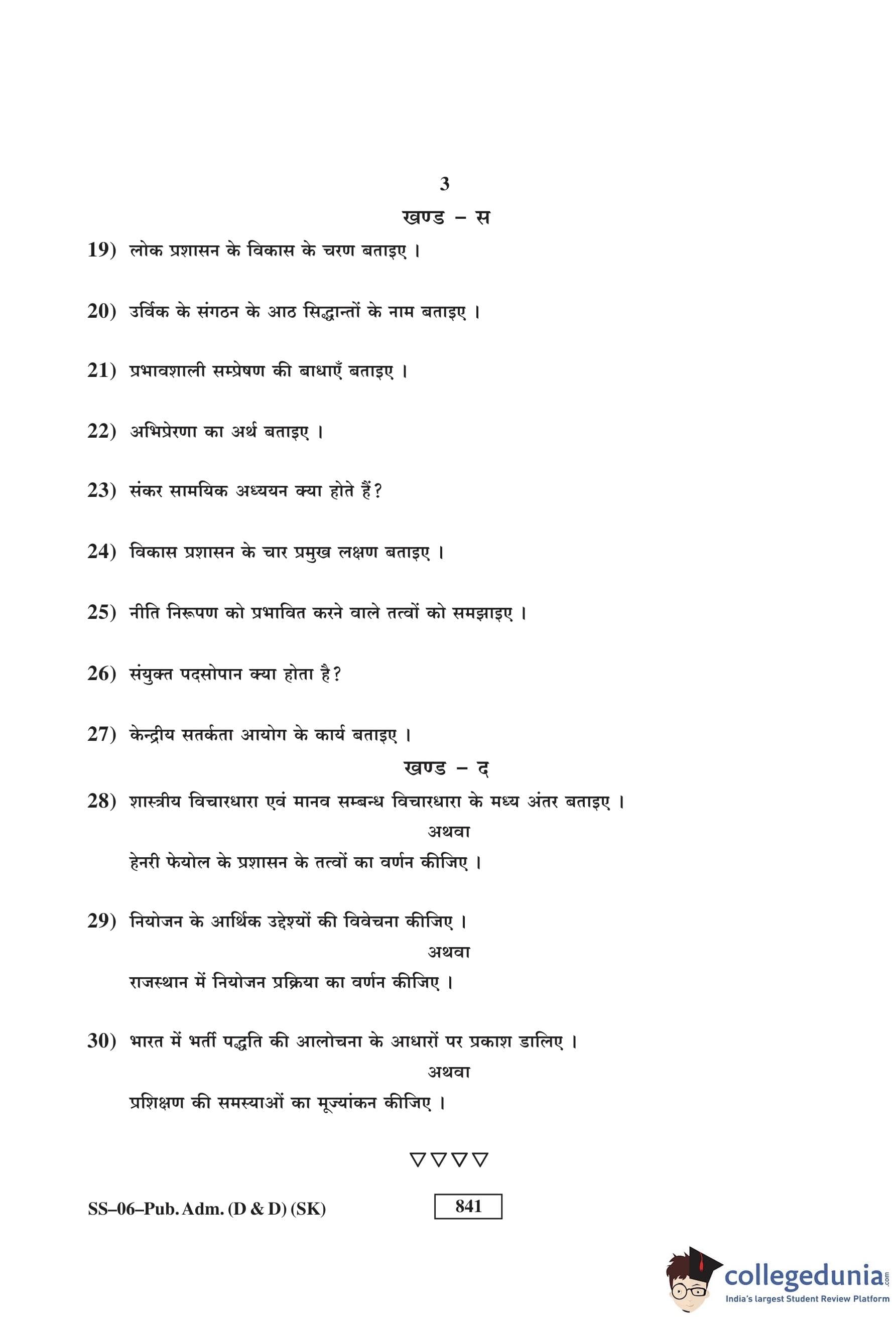 RBSE Class 12 Public Administration (D and D) Question Paper 2017 with Answer Key pdf is available for download here. The exam was conducted by Board of Secondary Education Rajasthan (BSER) on March 14, 2017 in the Morning Session. The question paper comprised a total of 30 questions divided among 4 sections.