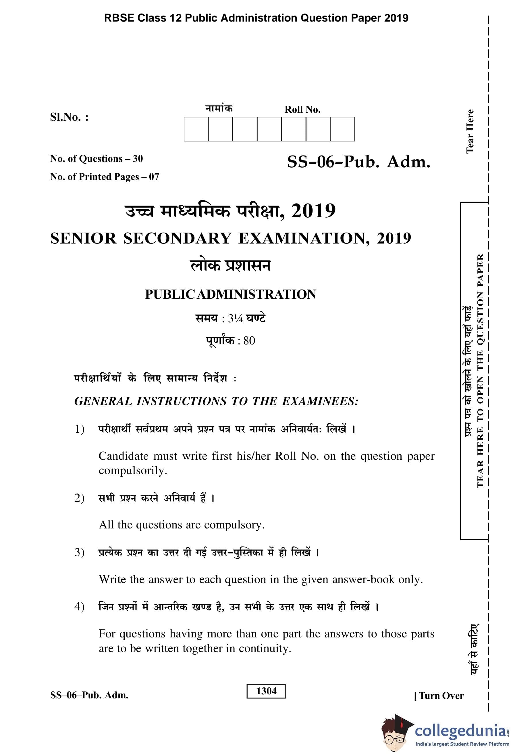 | RBSE Class 12 Public Administration Question Paper 2019 PDF | RBSE Class 12 Public Administration Answer Key 2019 PDF |