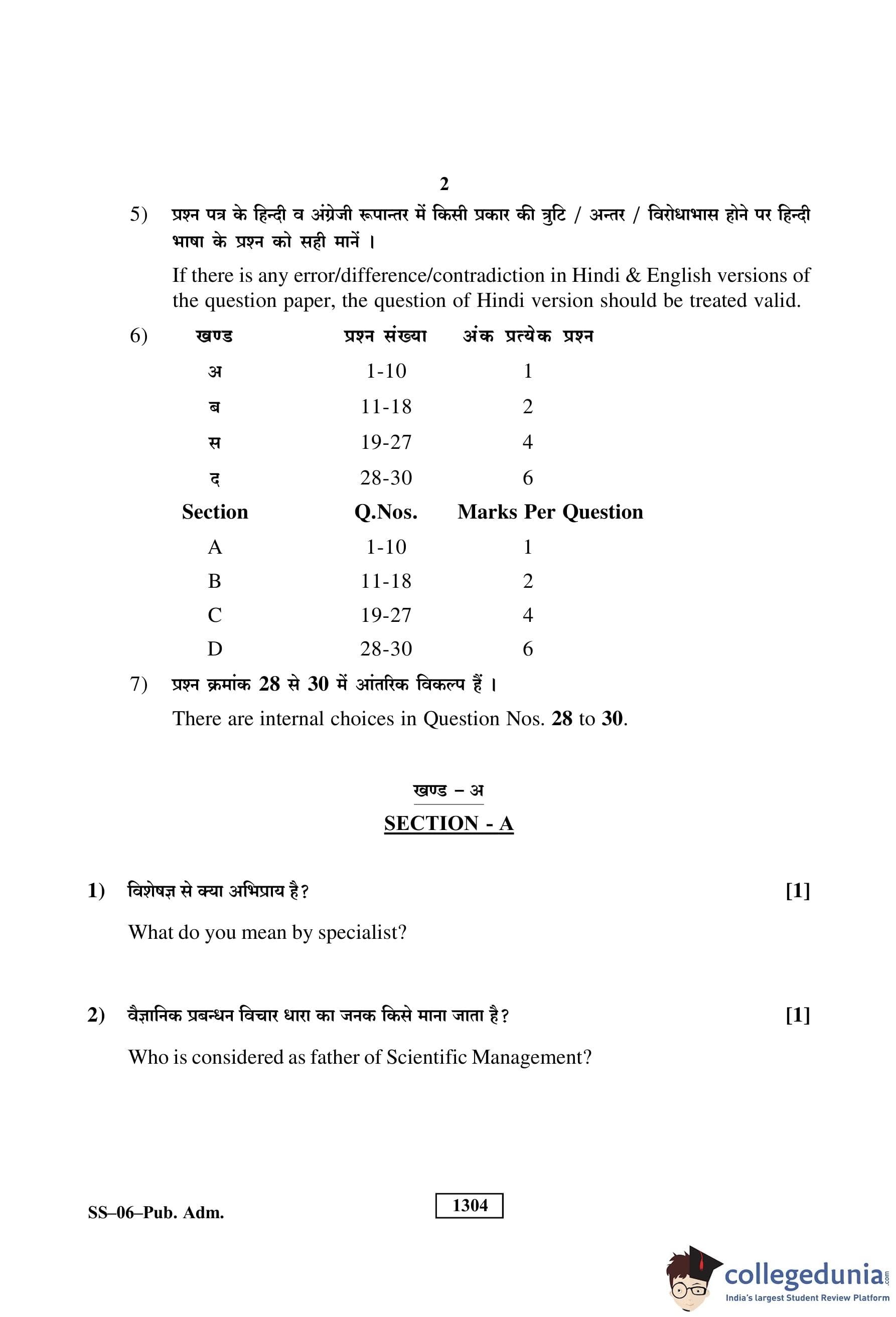 RBSE Class 12 Public Administration Question Paper 2019 with Answer Key pdf is available for download here. The exam was conducted by Board of Secondary Education Rajasthan (BSER) on March 16, 2019 in the Morning Session 8:30 AM to 11:45 AM. The question paper comprised a total of 30 questions divided among 4 sections.