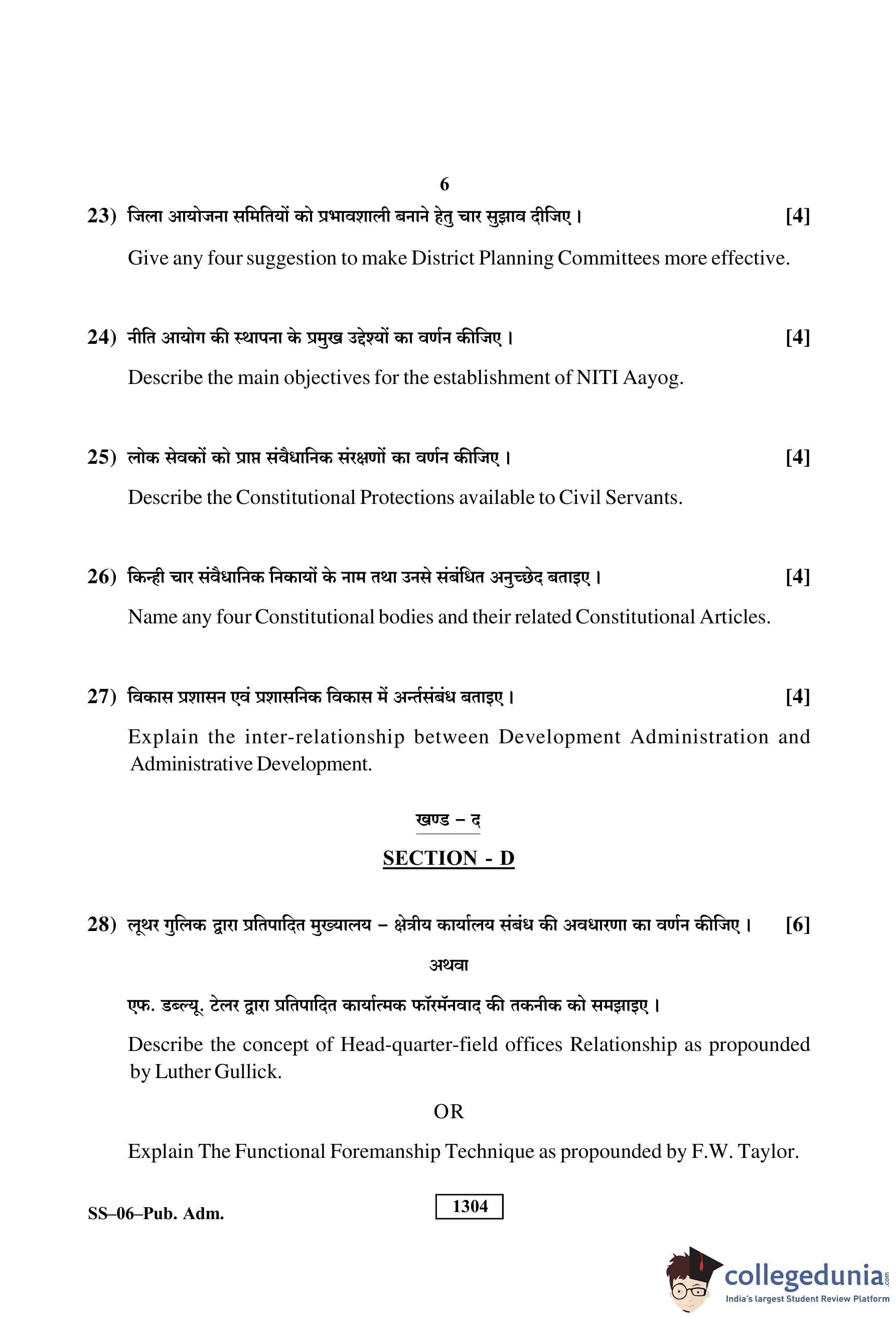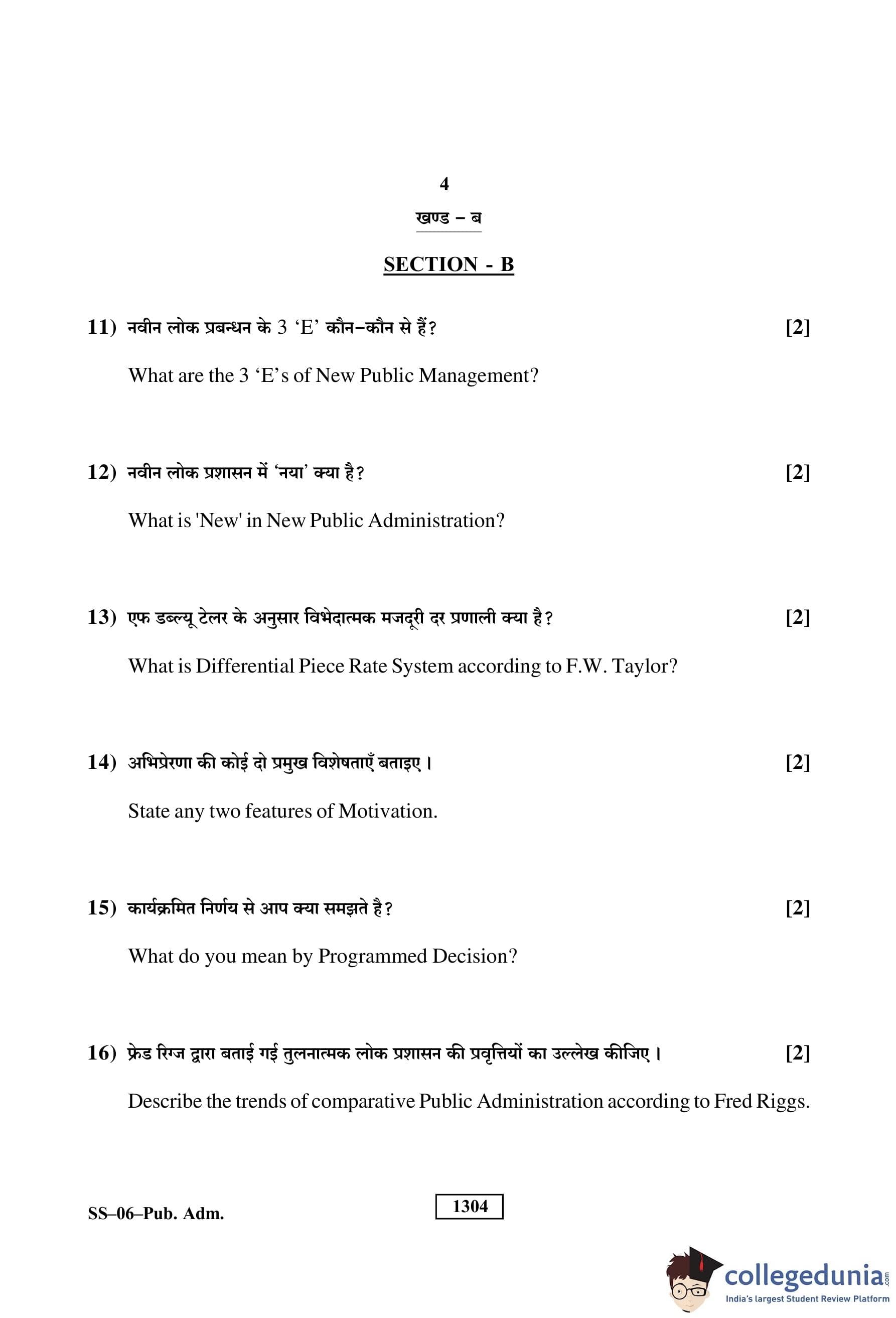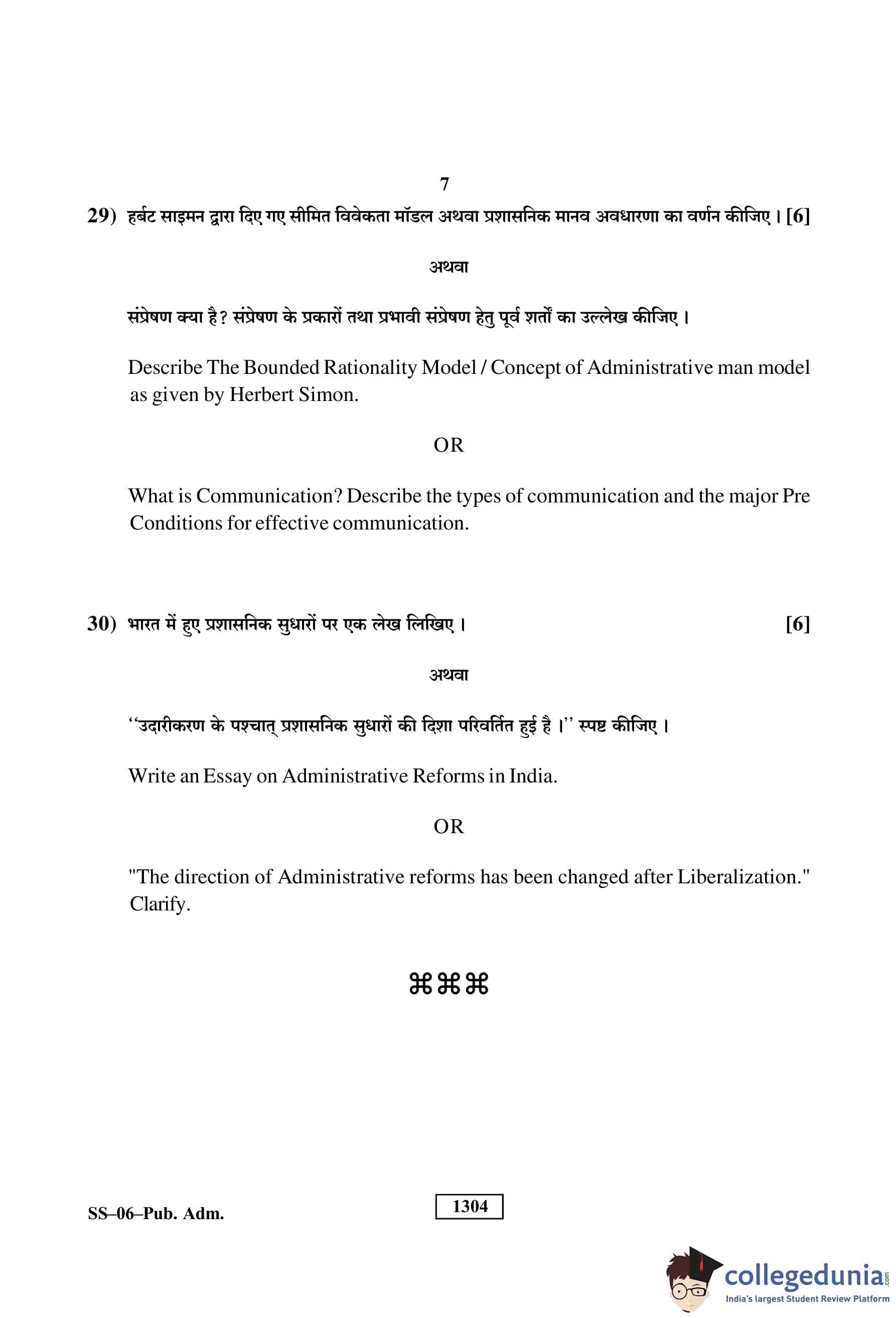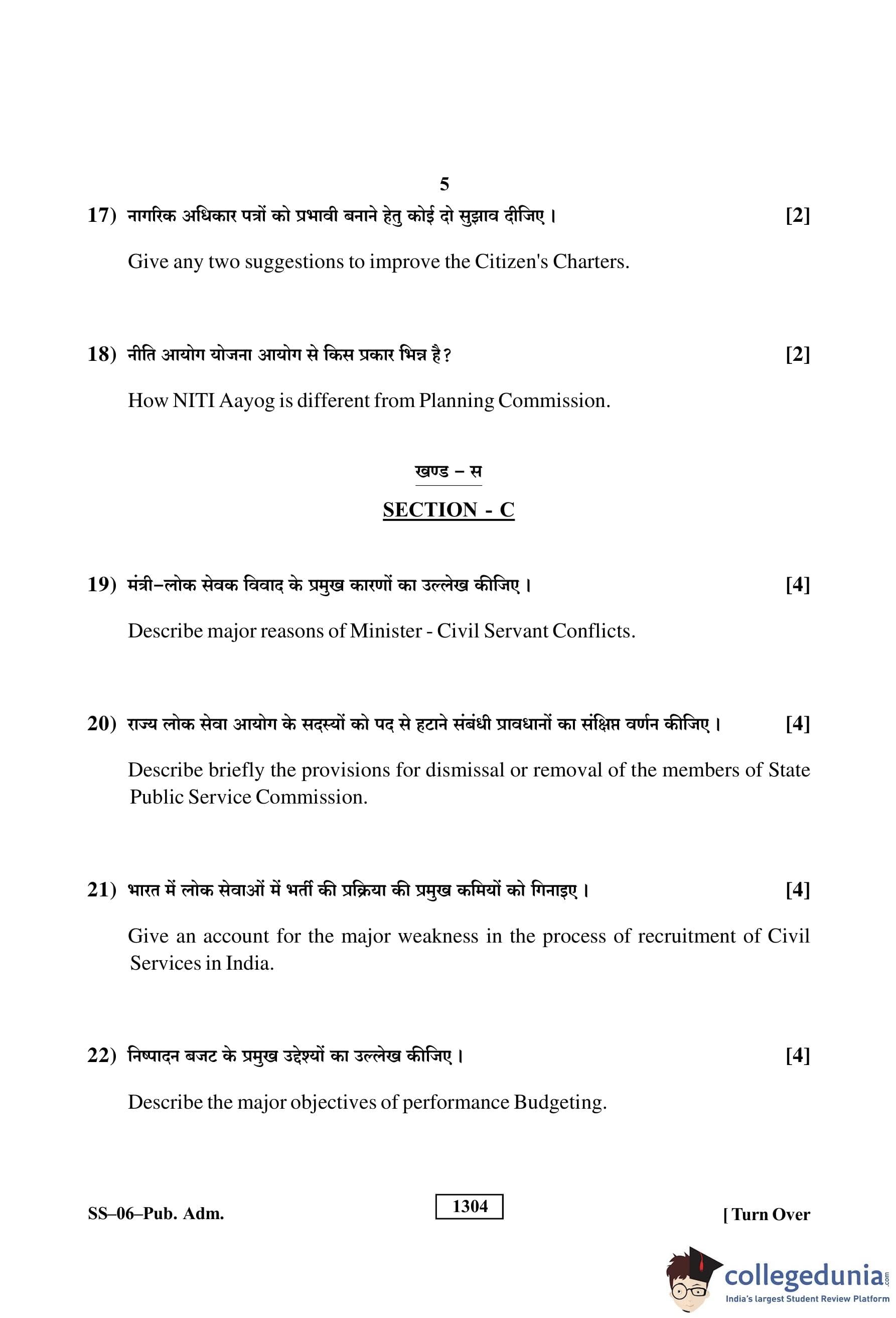 RBSE Class 12 Public Administration Question Paper 2019 with Answer Key