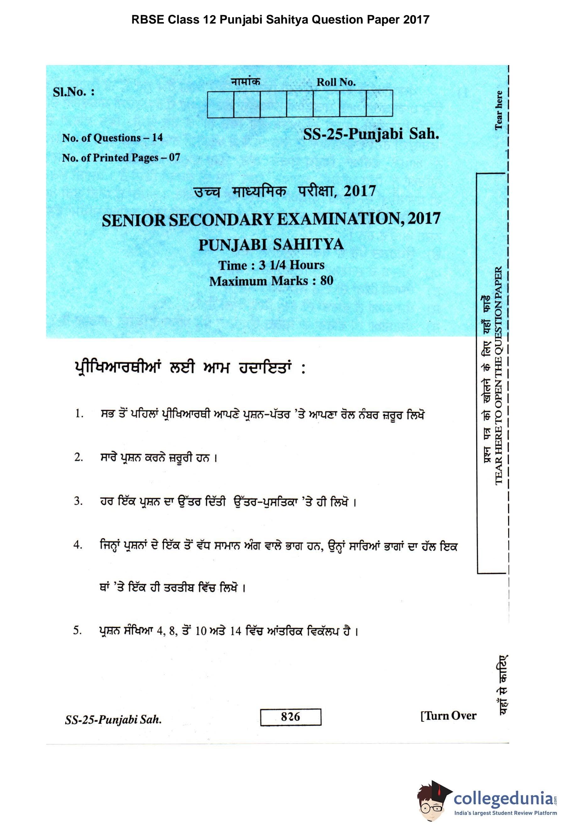 | RBSE Class 12 Punjabi Sahitya Question Paper 2017 PDF | RBSE Class 12 Punjabi Sahitya Answer Key 2017 PDF |