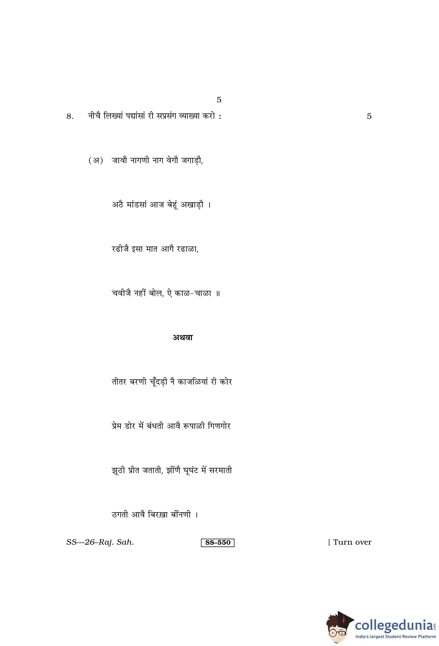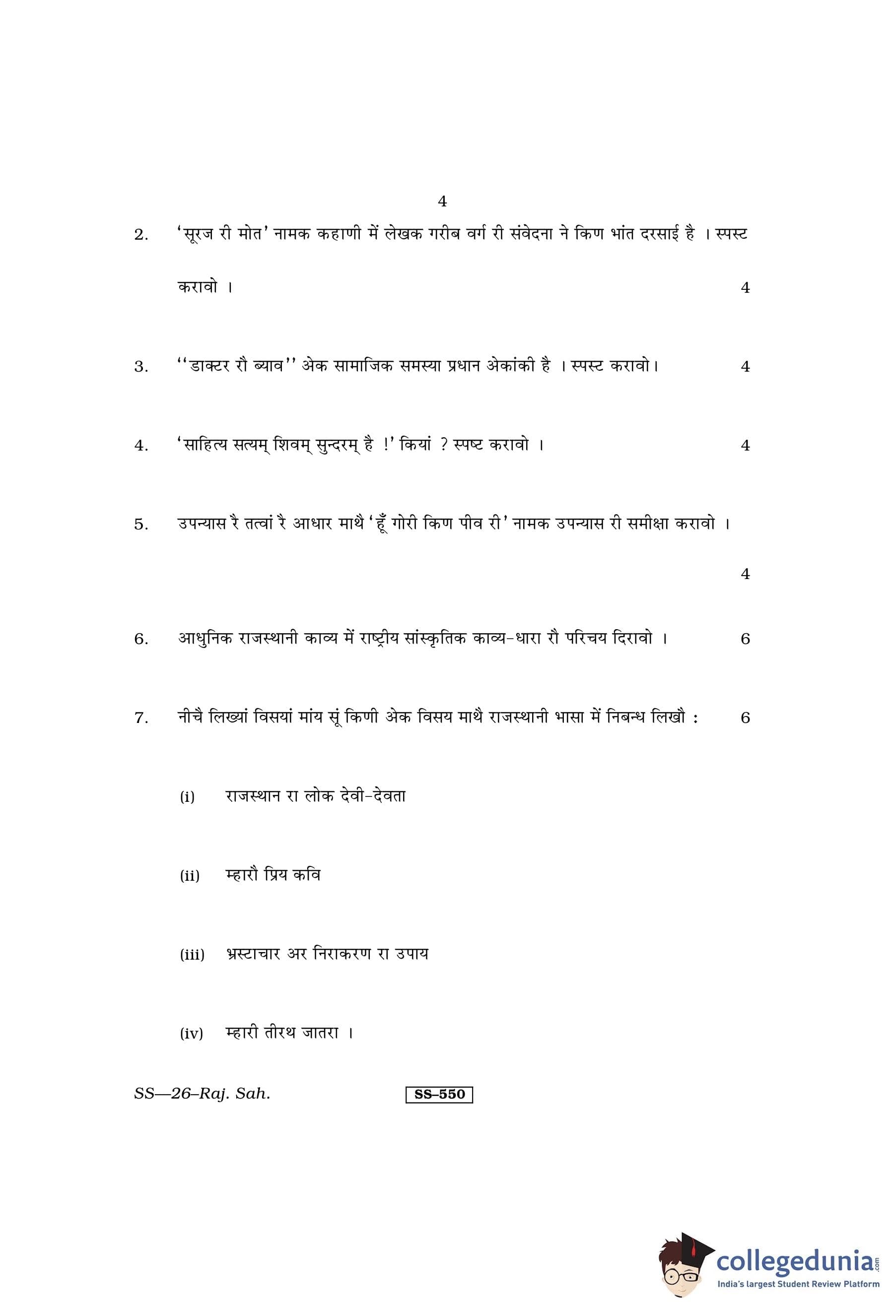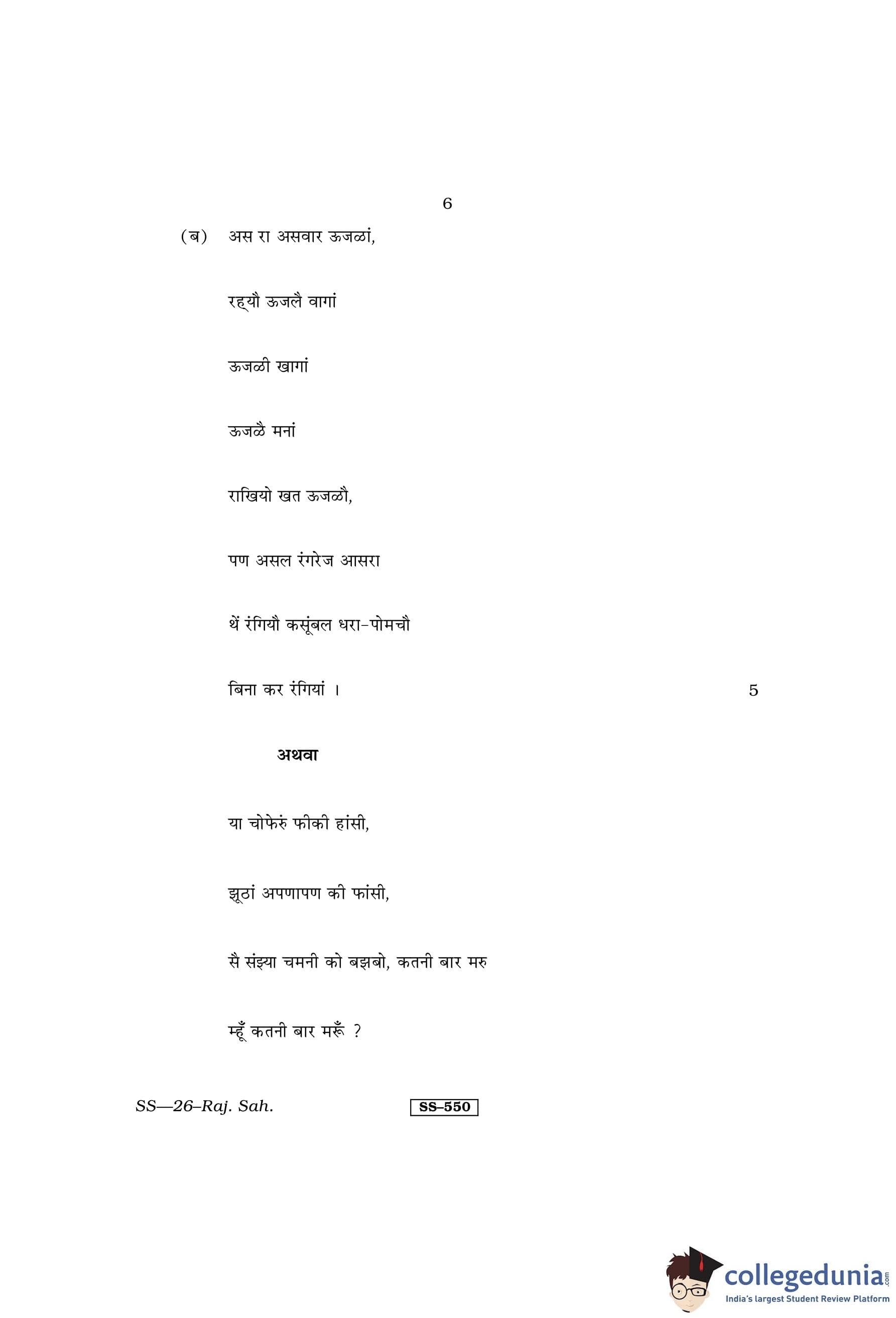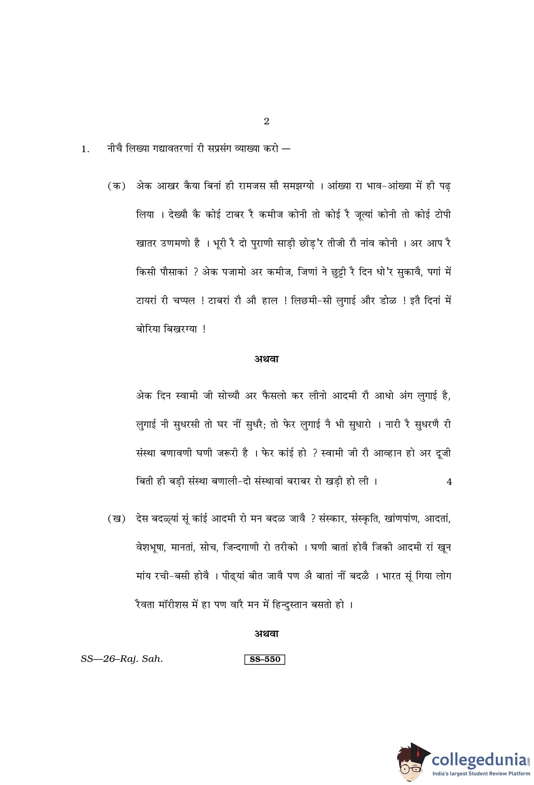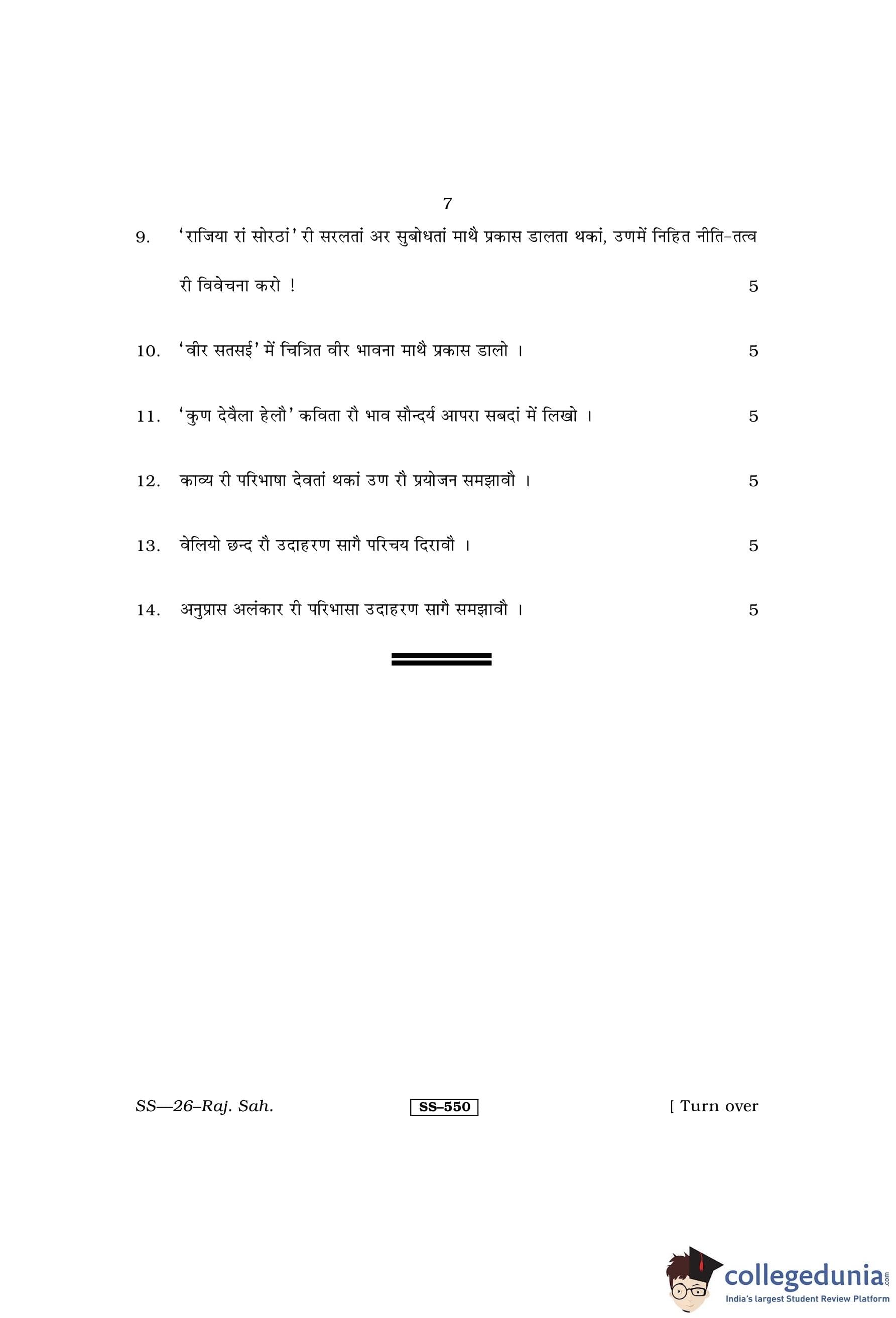 RBSE Class 12 Rajasthani Sahitya Question Paper 2013 with Answer Key pdf is available for download here. The exam was conducted by Board of Secondary Education Rajasthan (BSER) on March 19, 2013 in the Morning Session 8:30 AM to 11:45 AM. The question paper comprised a total of 14 questions.
