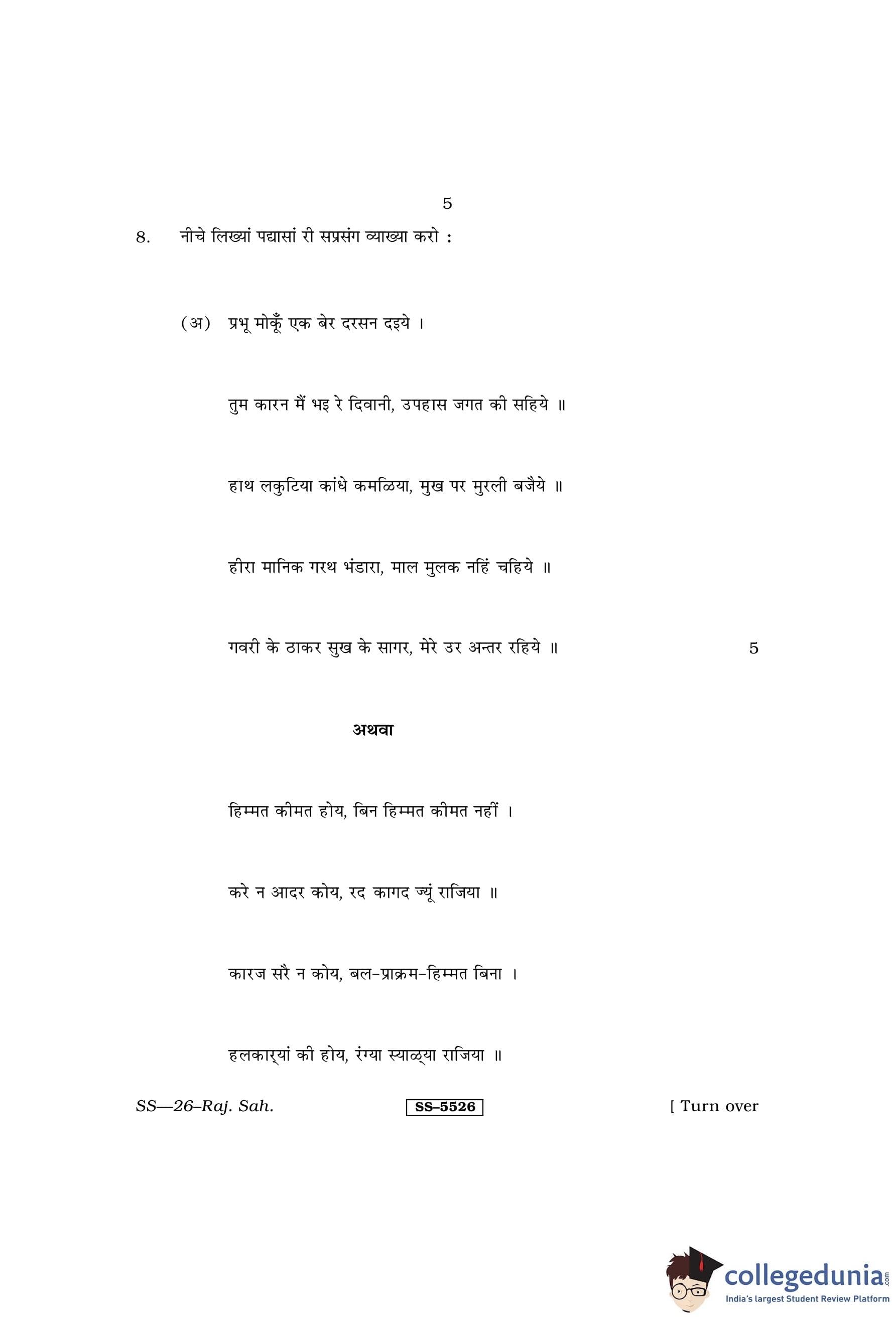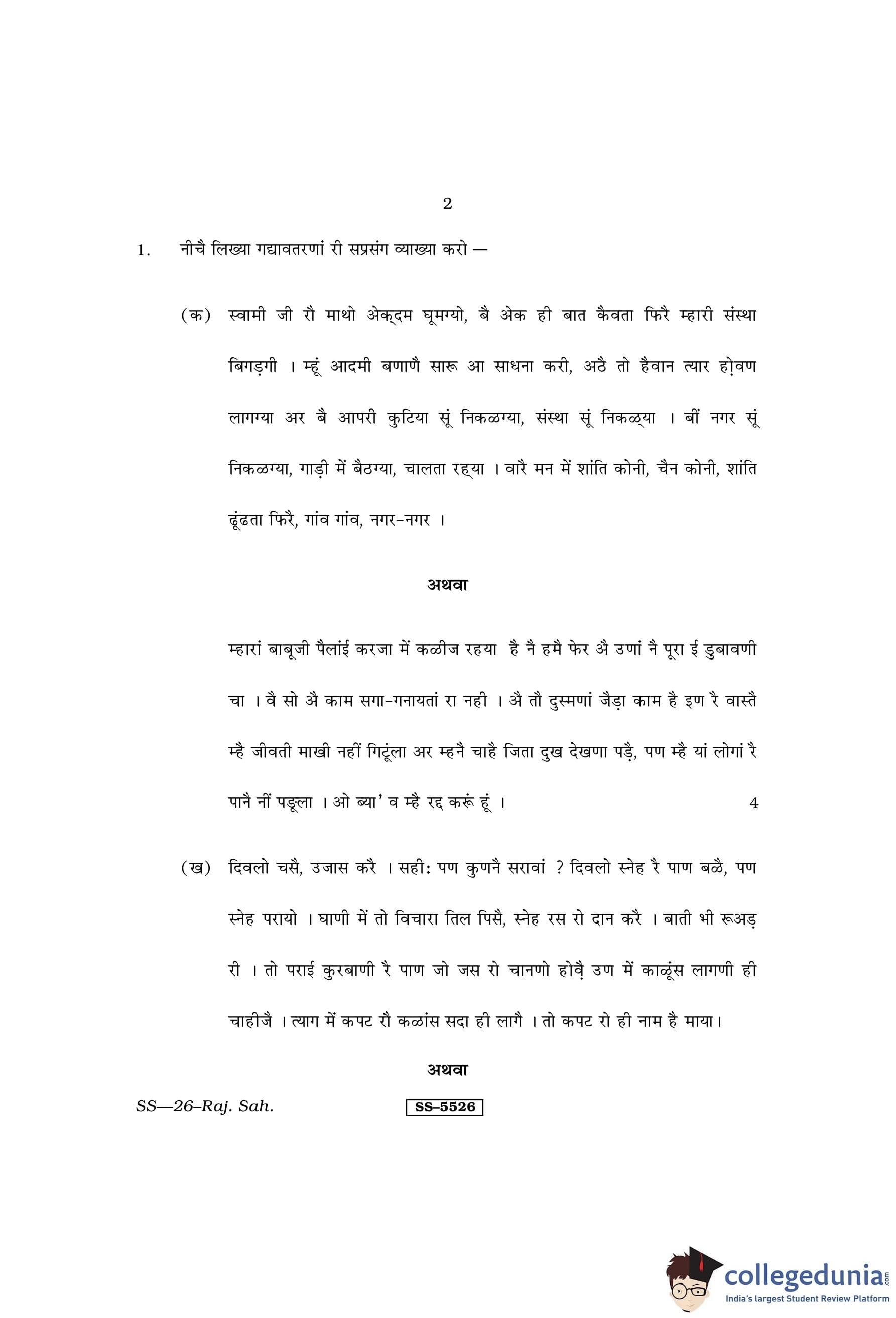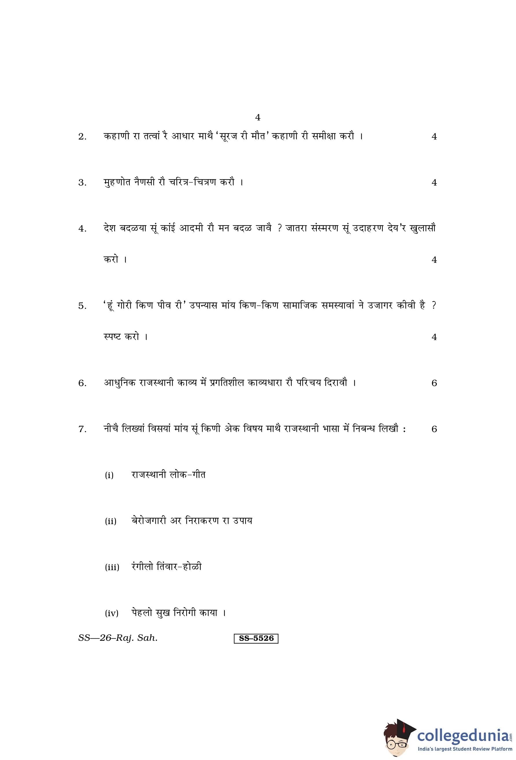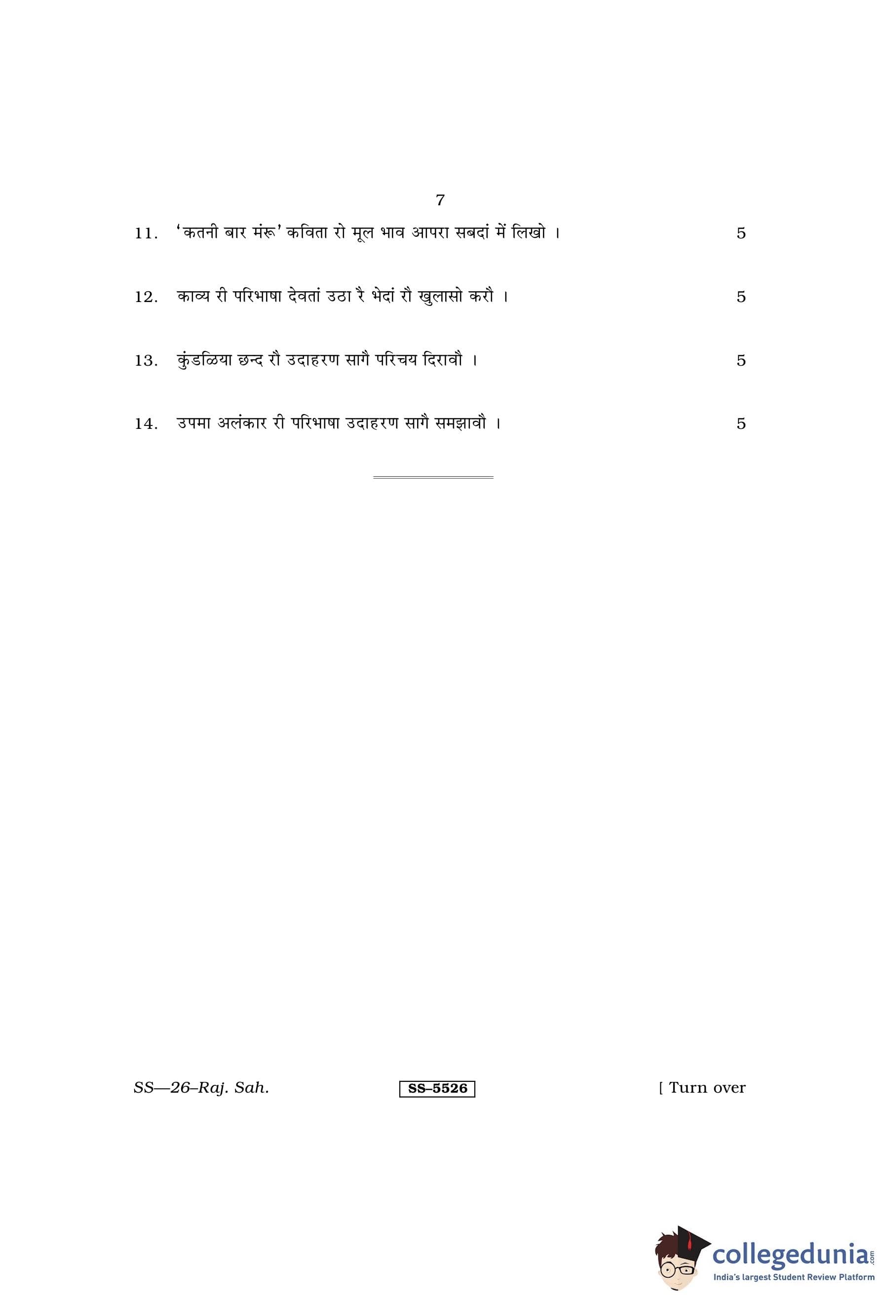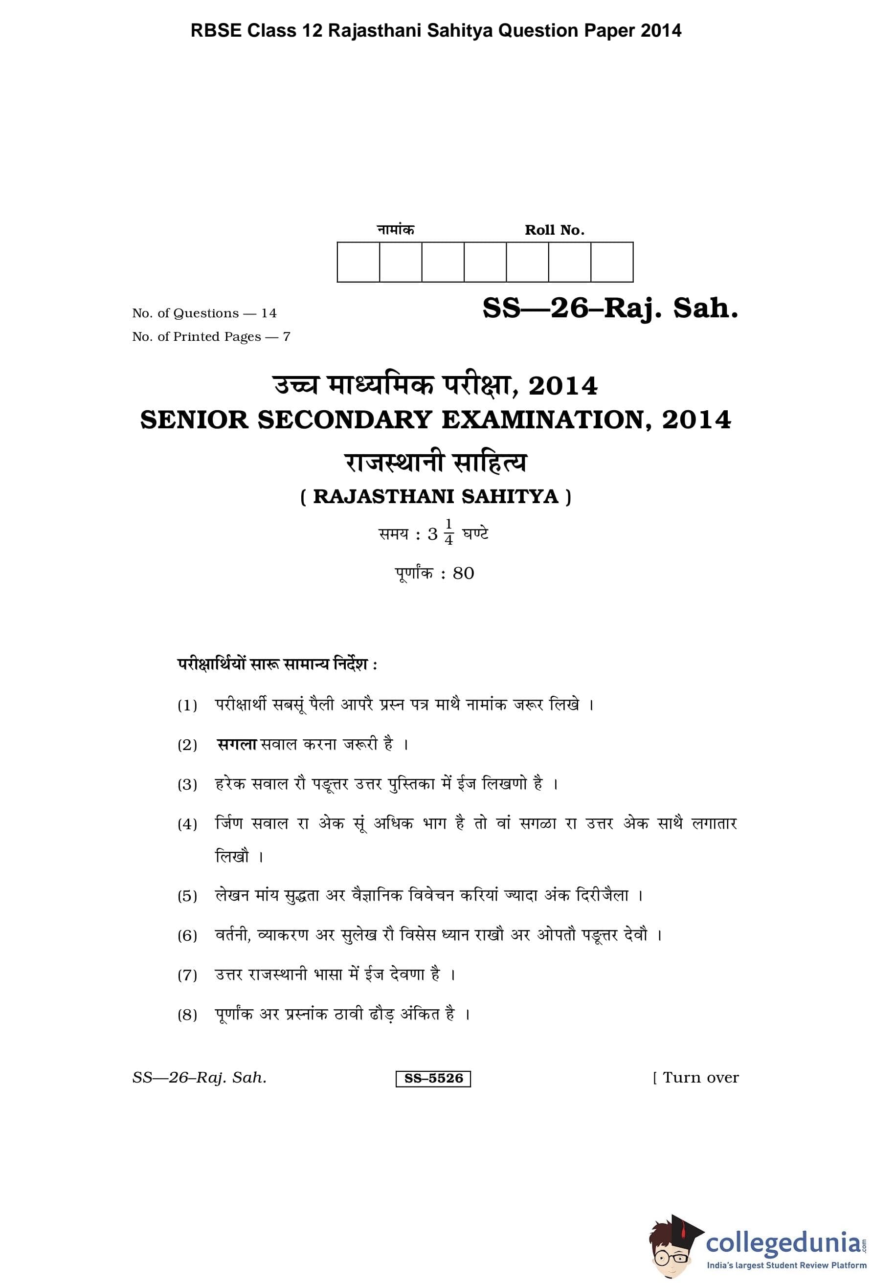 RBSE Class 12 Rajasthani Sahitya Question Paper 2014 with Answer Key pdf is available for download here. The exam was conducted by Board of Secondary Education Rajasthan (BSER) on March 20, 2014 in the Morning Session 8:30 AM to 11:45 AM. The question paper comprised a total of 14 questions.