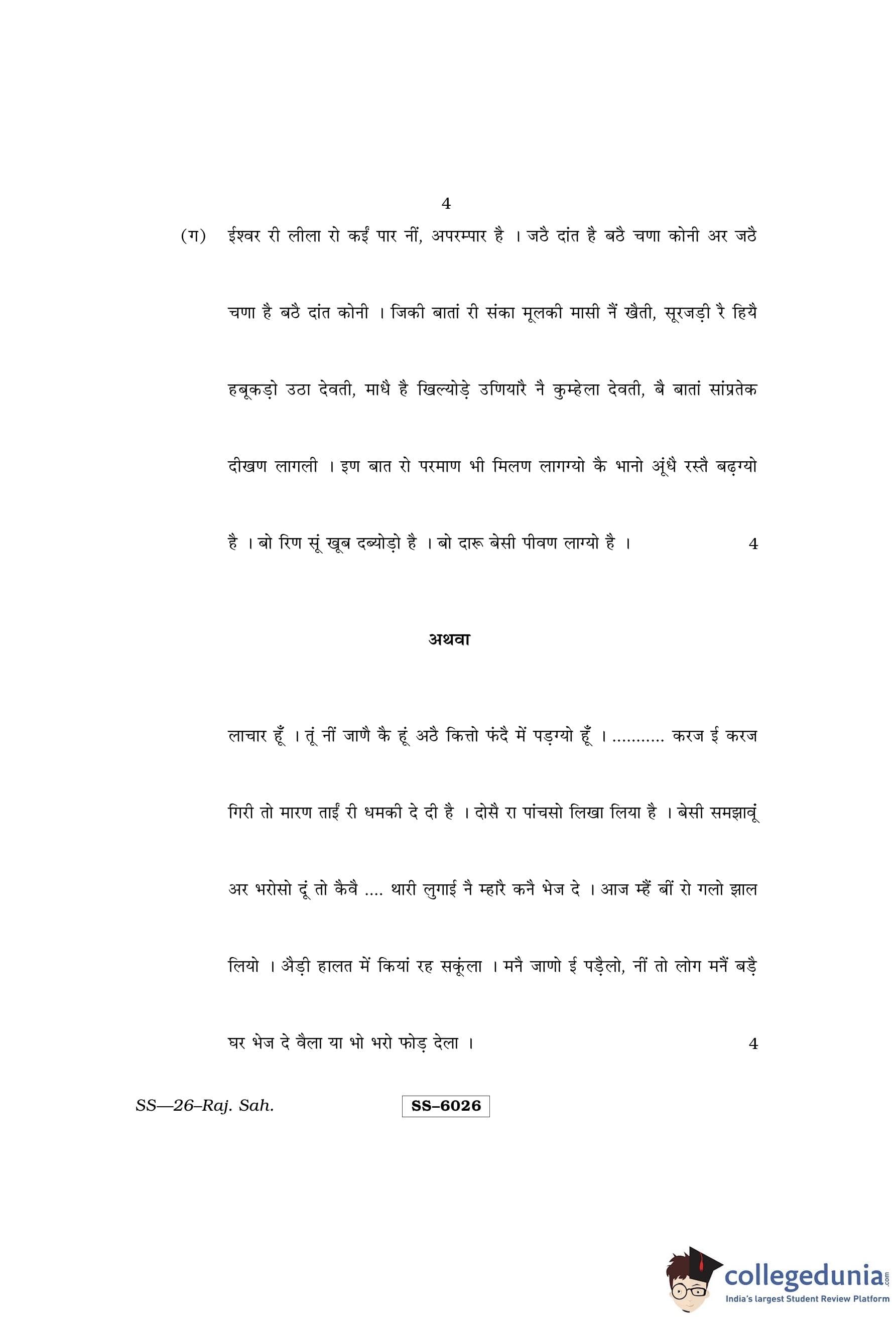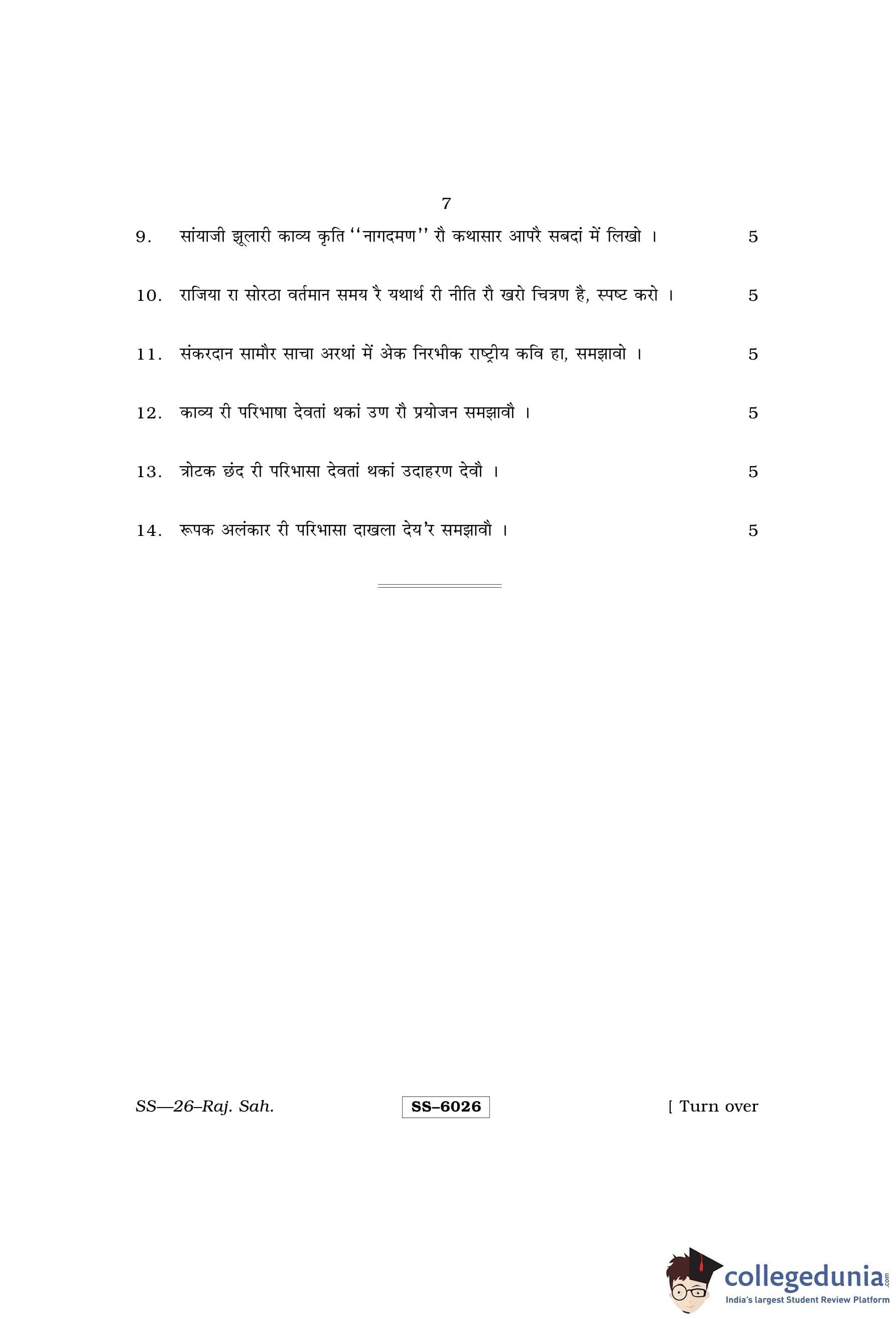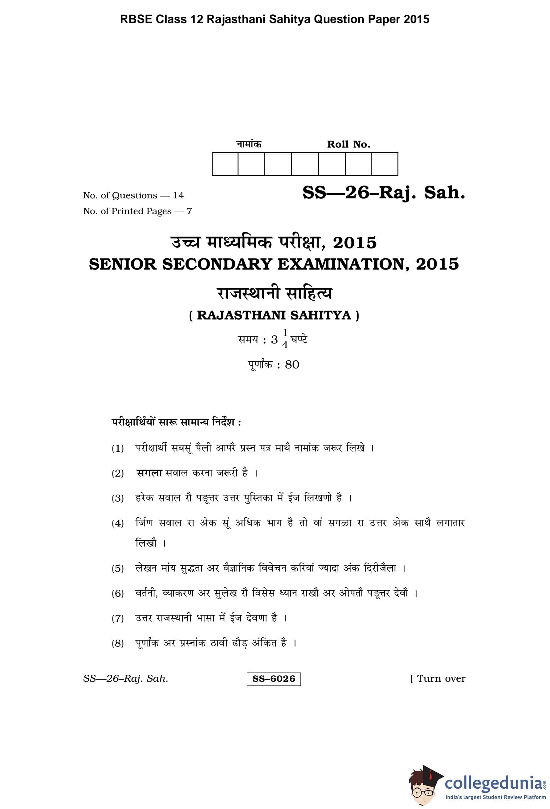 RBSE Class 12 Rajasthani Sahitya Question Paper 2015 with Answer Key pdf is available for download here. The exam was conducted by Board of Secondary Education Rajasthan (BSER) on March 26, 2015 in the Morning Session 8:30 AM to 11:45 AM. The question paper comprised a total of 14 questions.