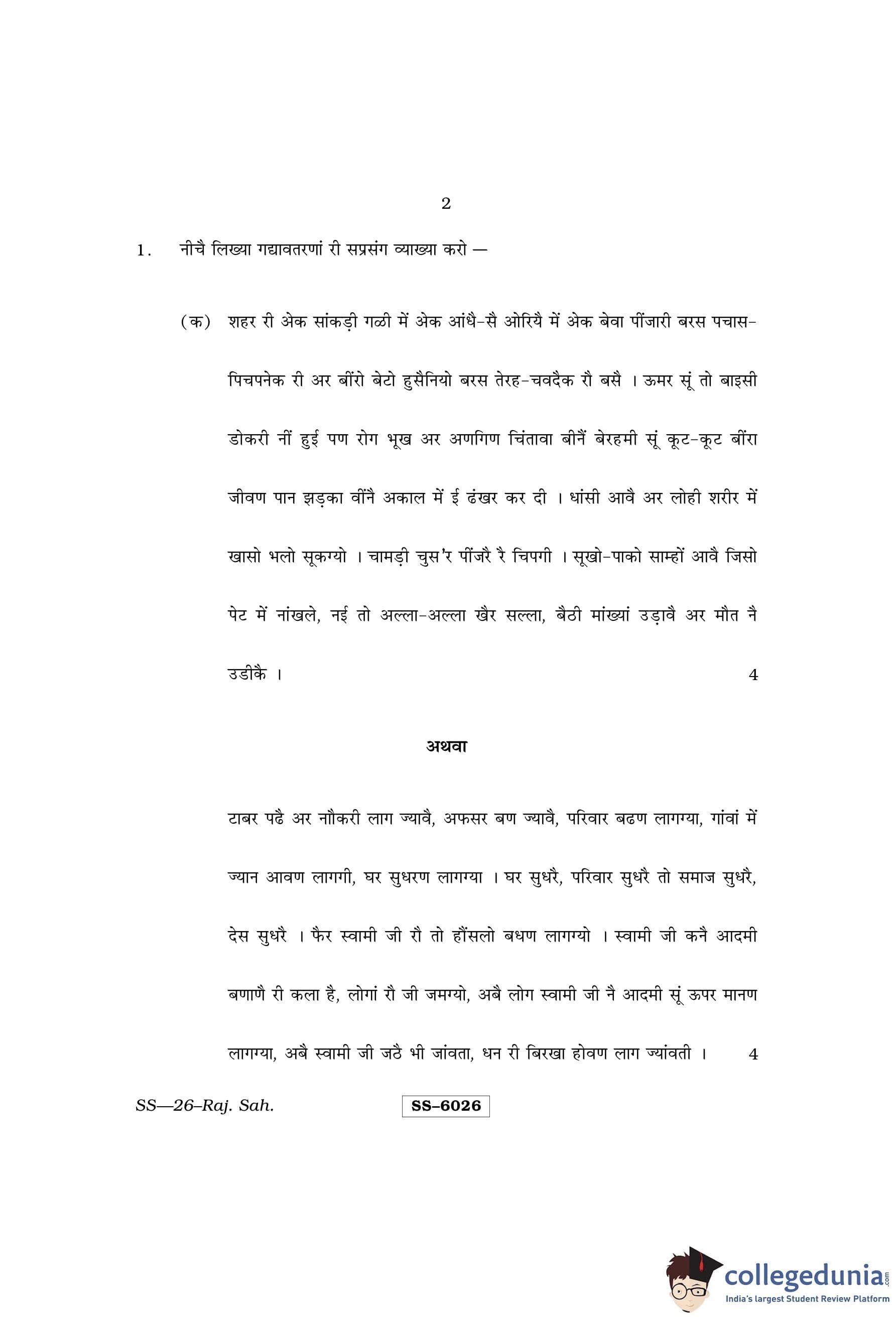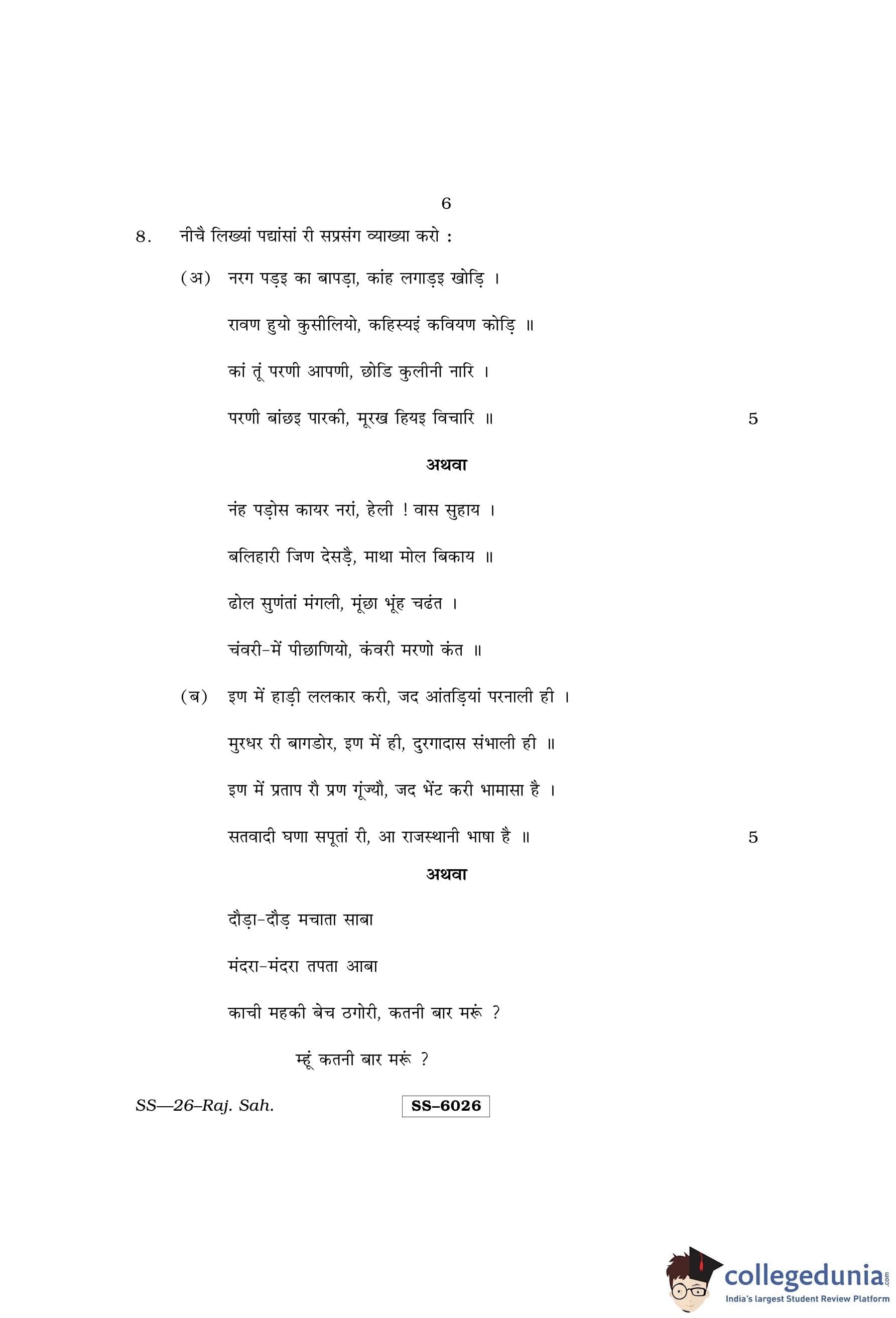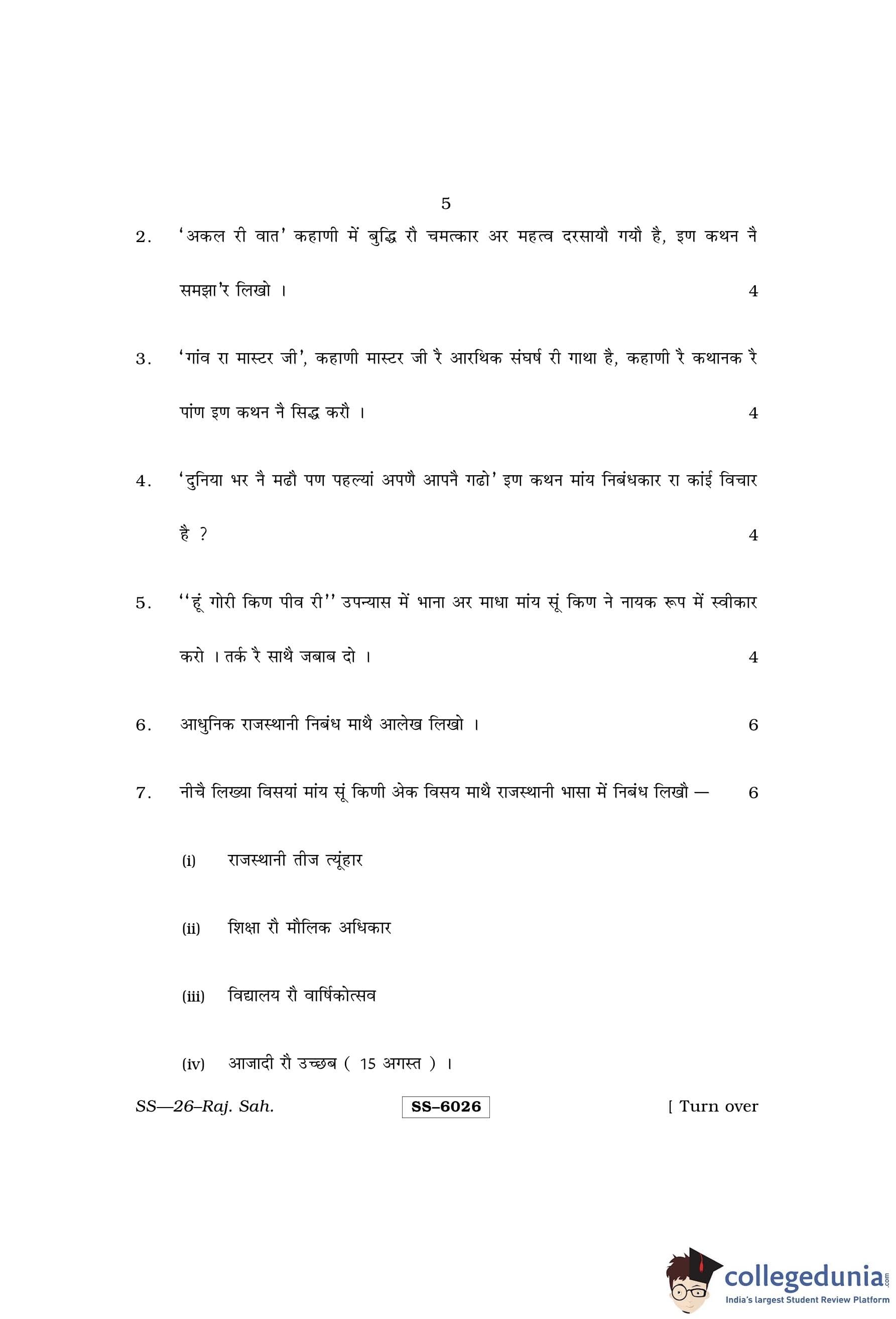 RBSE Class 12 Rajasthani Sahitya Question Paper 2015 with Answer Key pdf is available for download here. The exam was conducted by Board of Secondary Education Rajasthan (BSER) on March 26, 2015 in the Morning Session 8:30 AM to 11:45 AM. The question paper comprised a total of 14 questions.