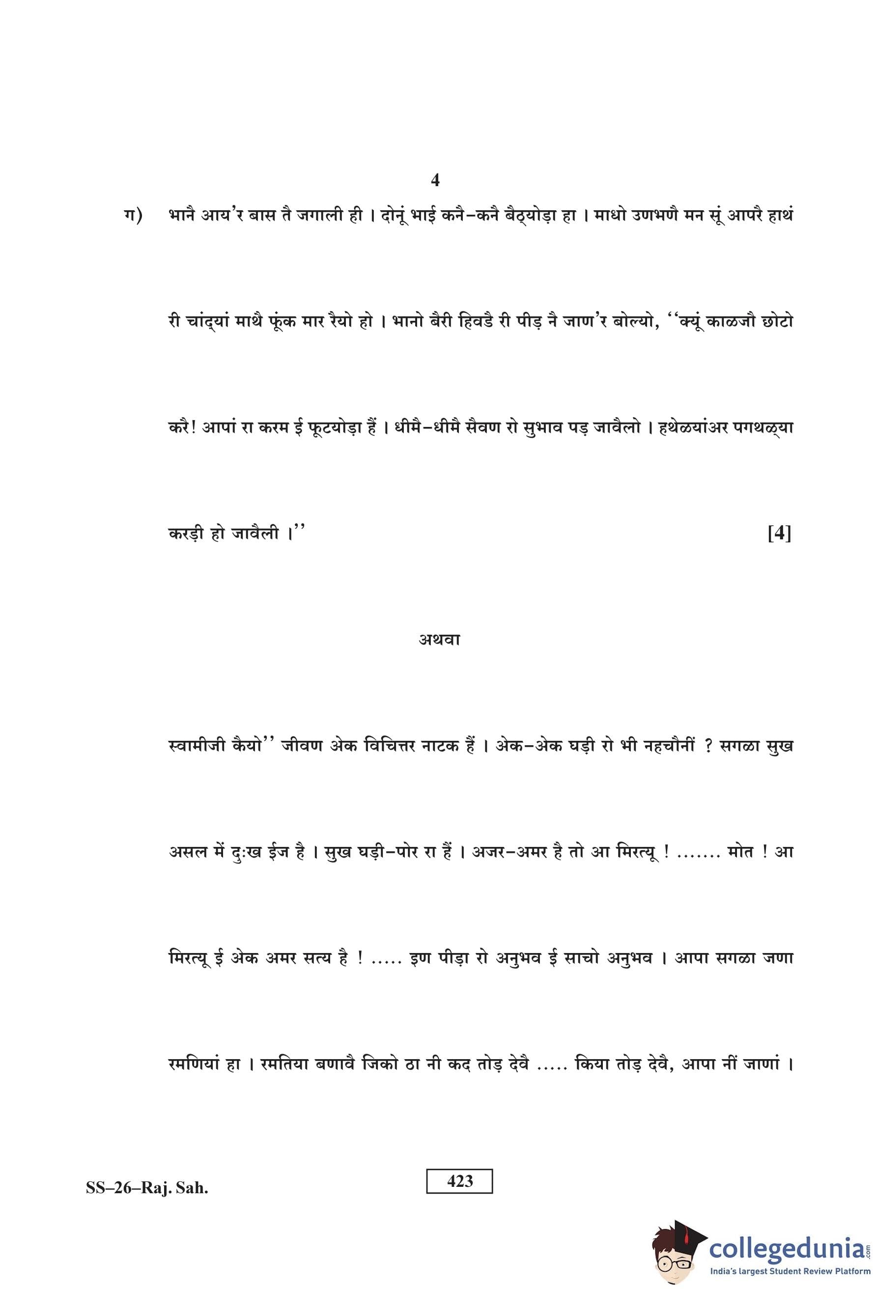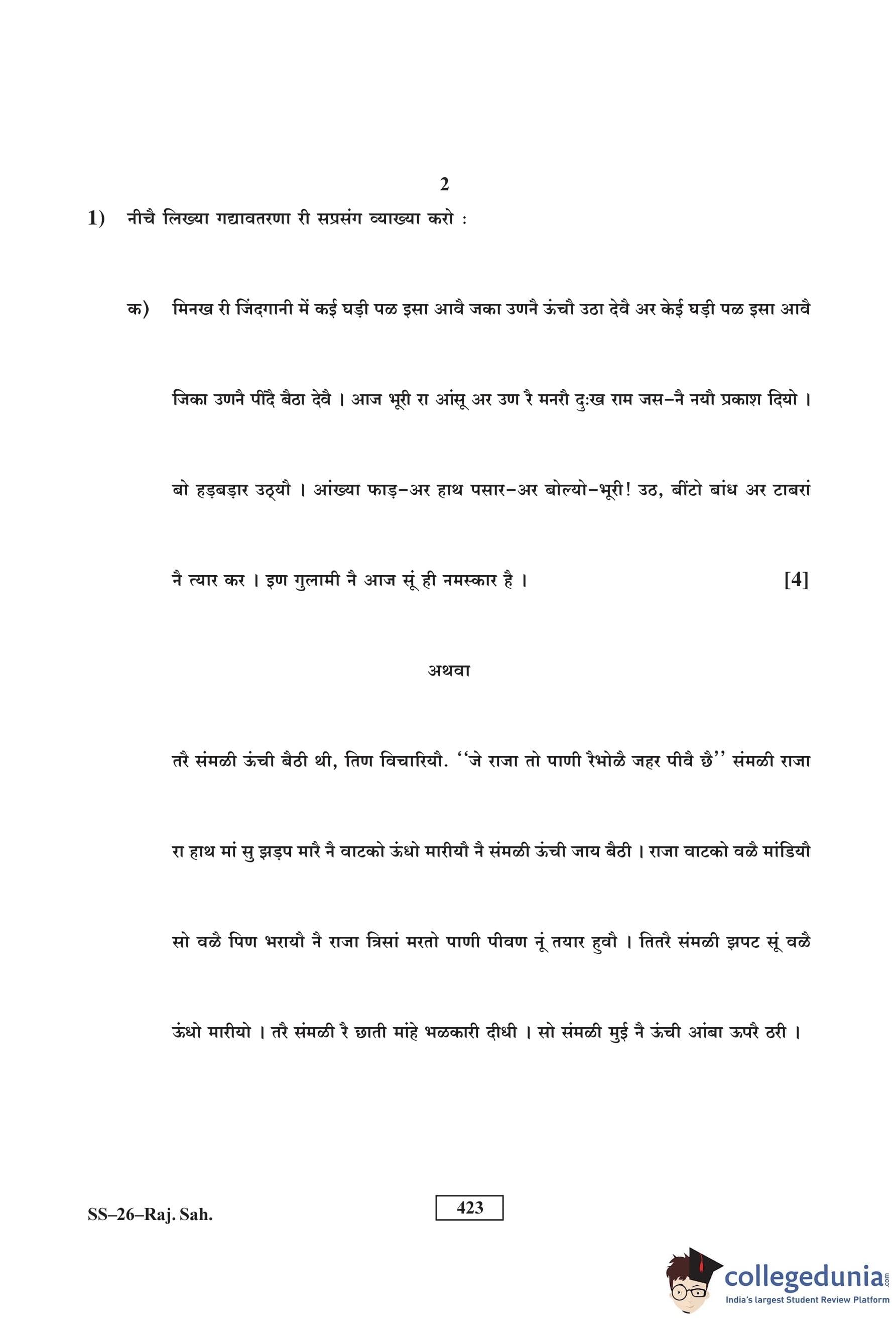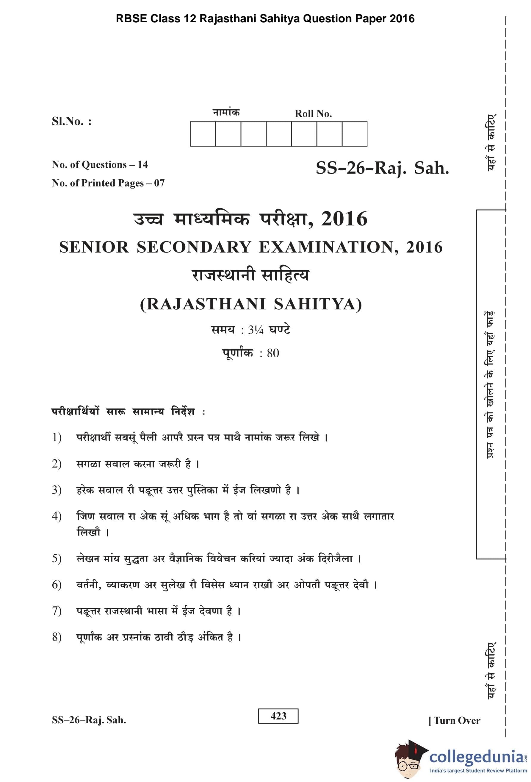 RBSE Class 12 Rajasthani Sahitya Question Paper 2016 with Answer Key pdf is available for download here. The exam was conducted by Board of Secondary Education Rajasthan (BSER) on March 19, 2016 in the Morning Session 8:30 AM to 11:45 AM. The question paper comprised a total of 14 questions.