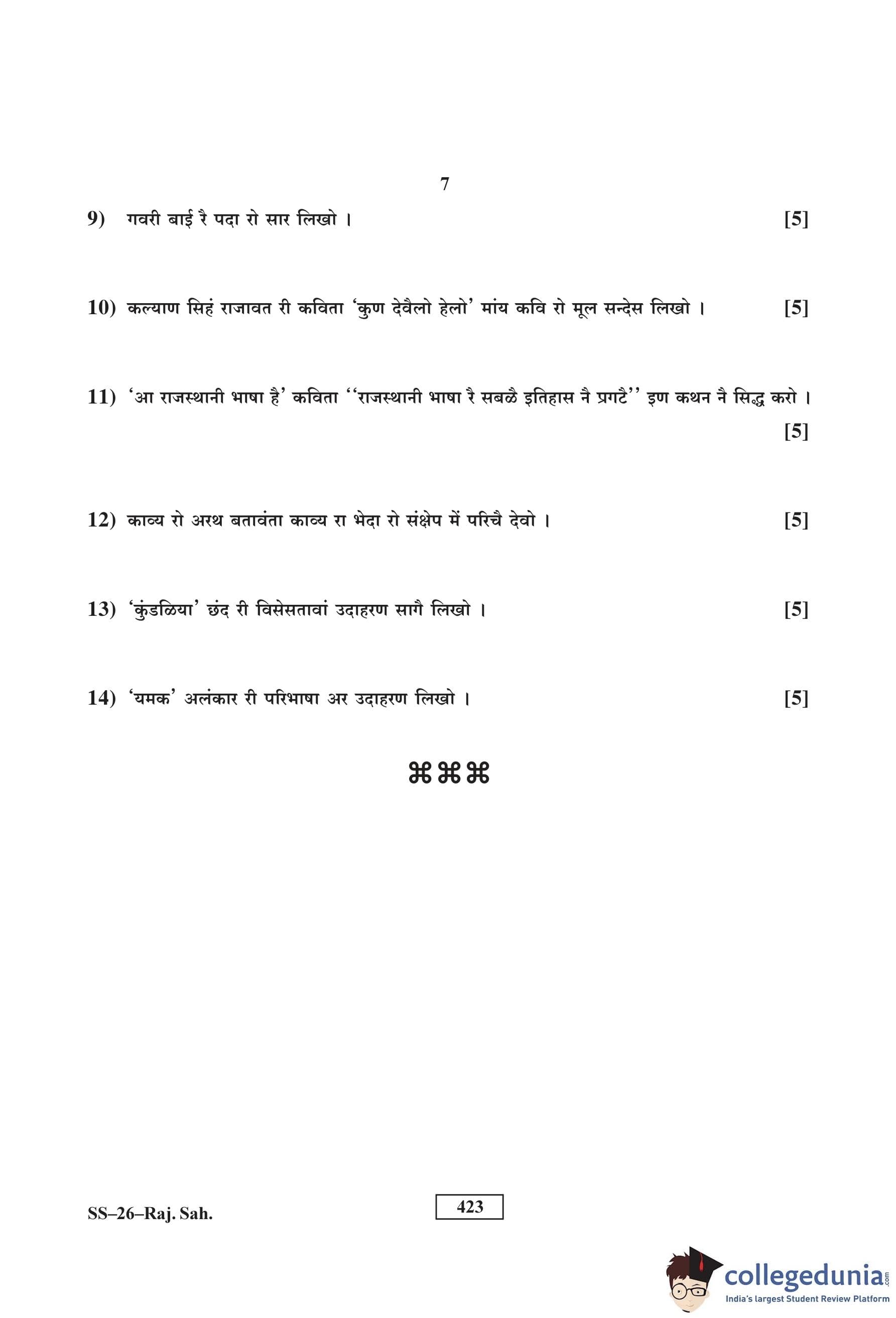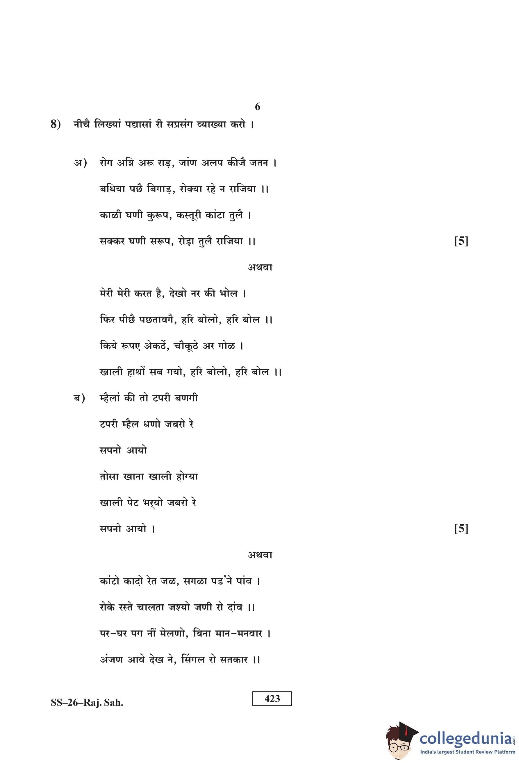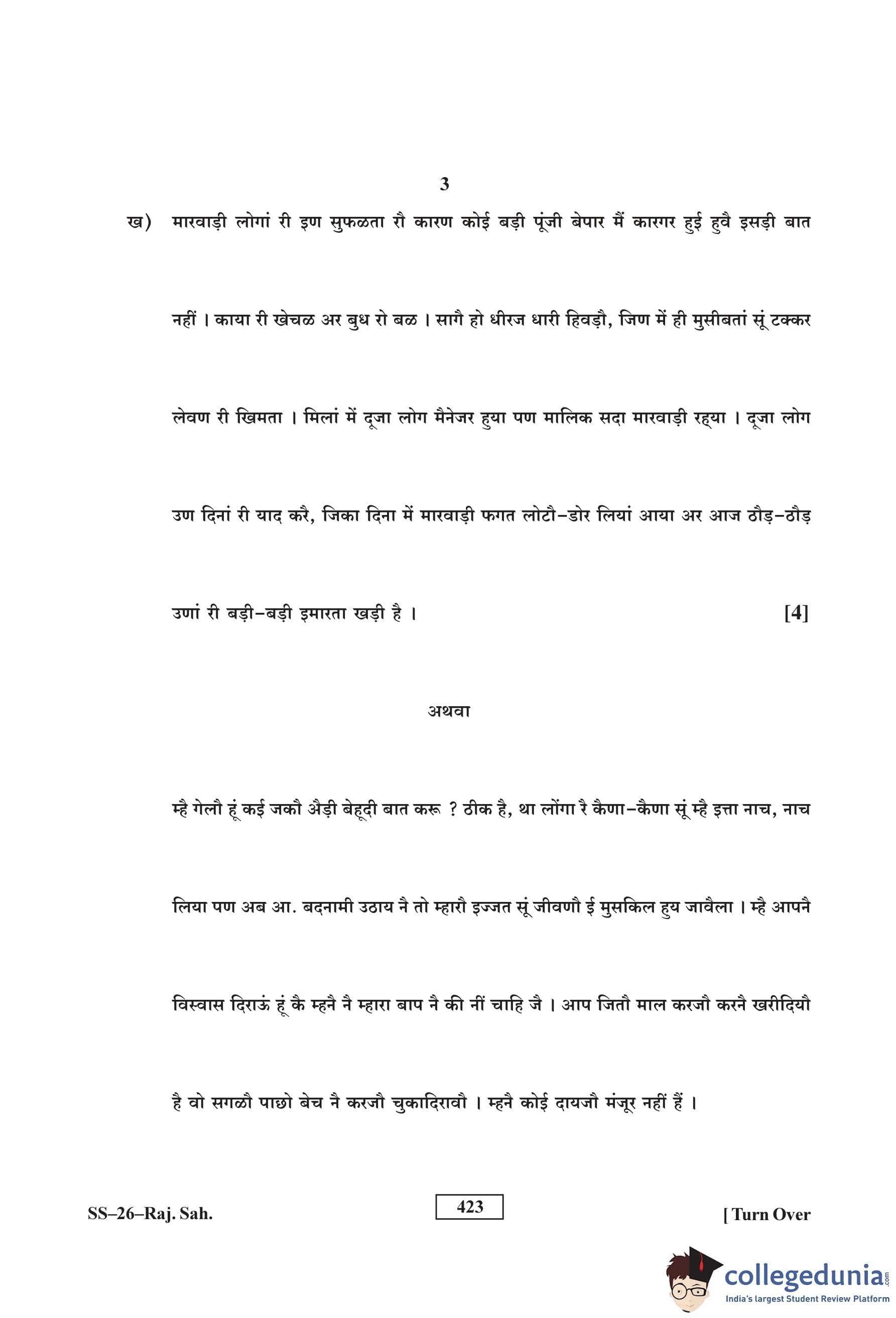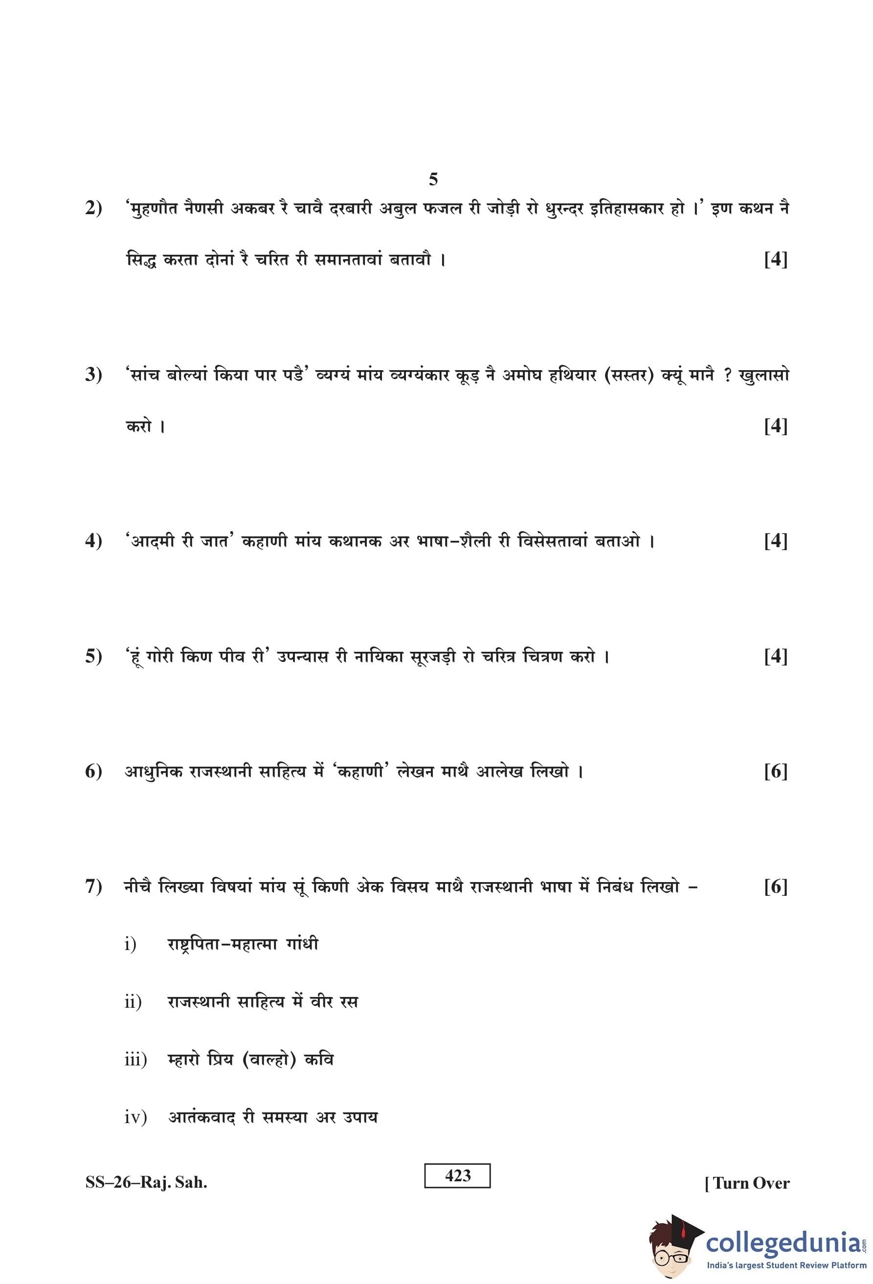 RBSE Class 12 Rajasthani Sahitya Question Paper 2016 with Answer Key pdf is available for download here. The exam was conducted by Board of Secondary Education Rajasthan (BSER) on March 19, 2016 in the Morning Session 8:30 AM to 11:45 AM. The question paper comprised a total of 14 questions.