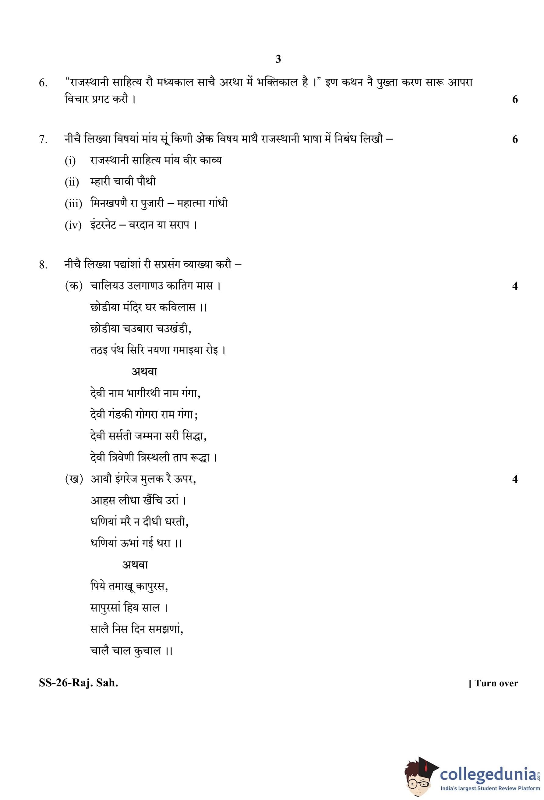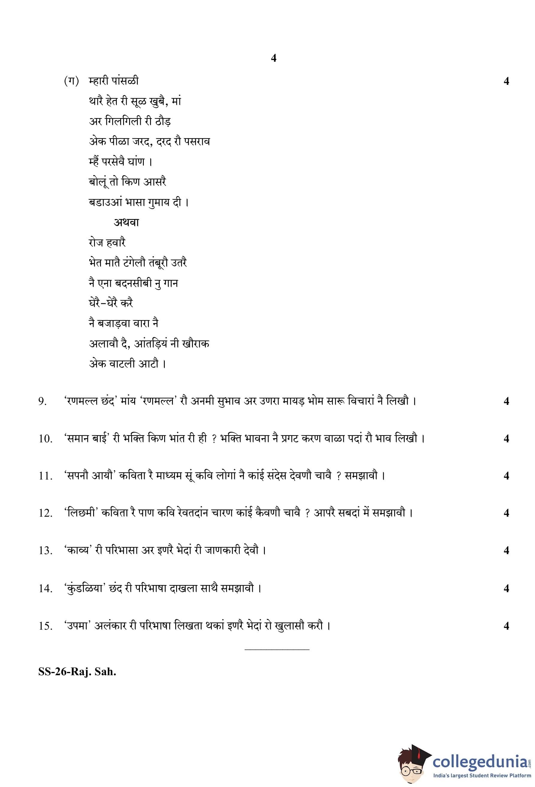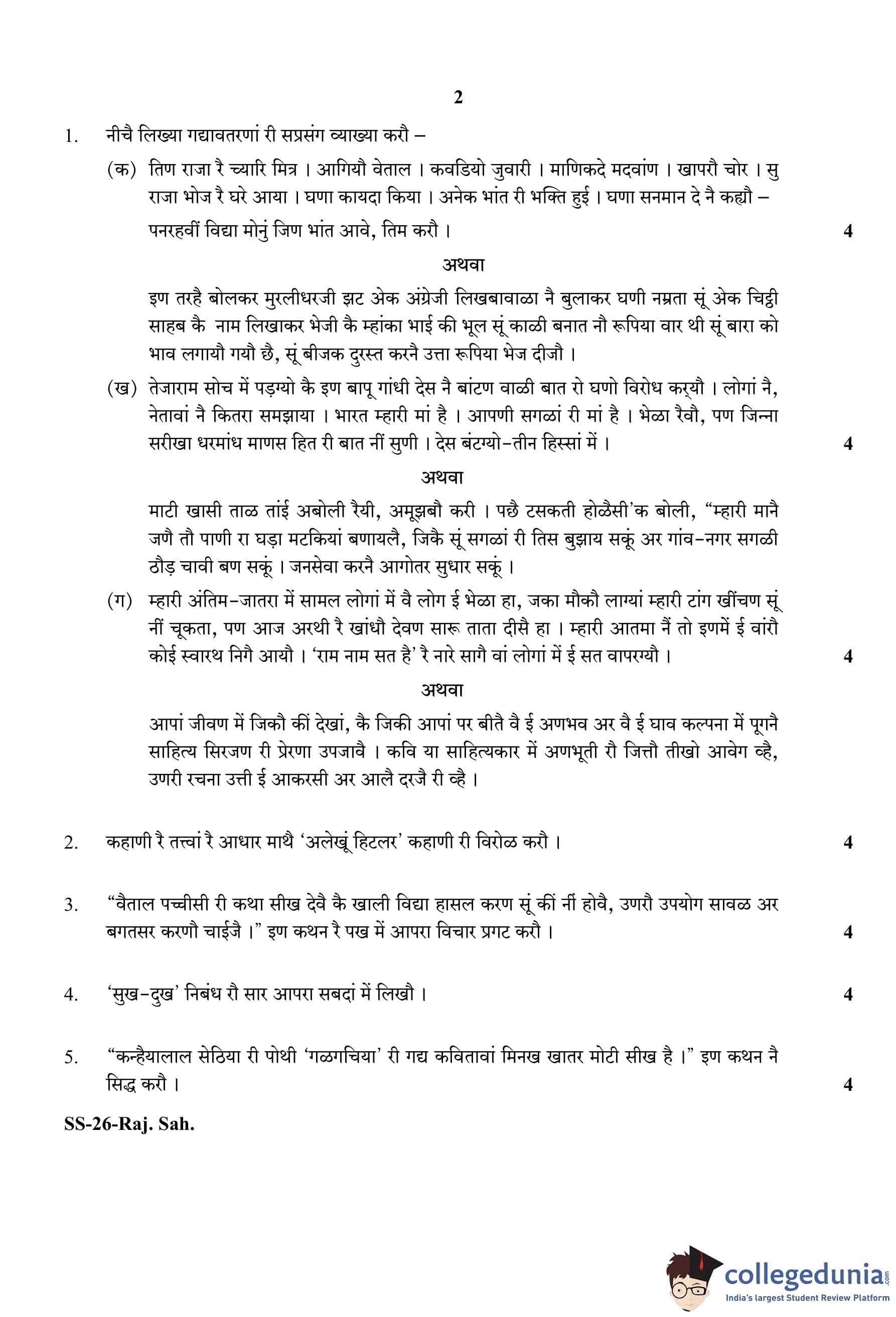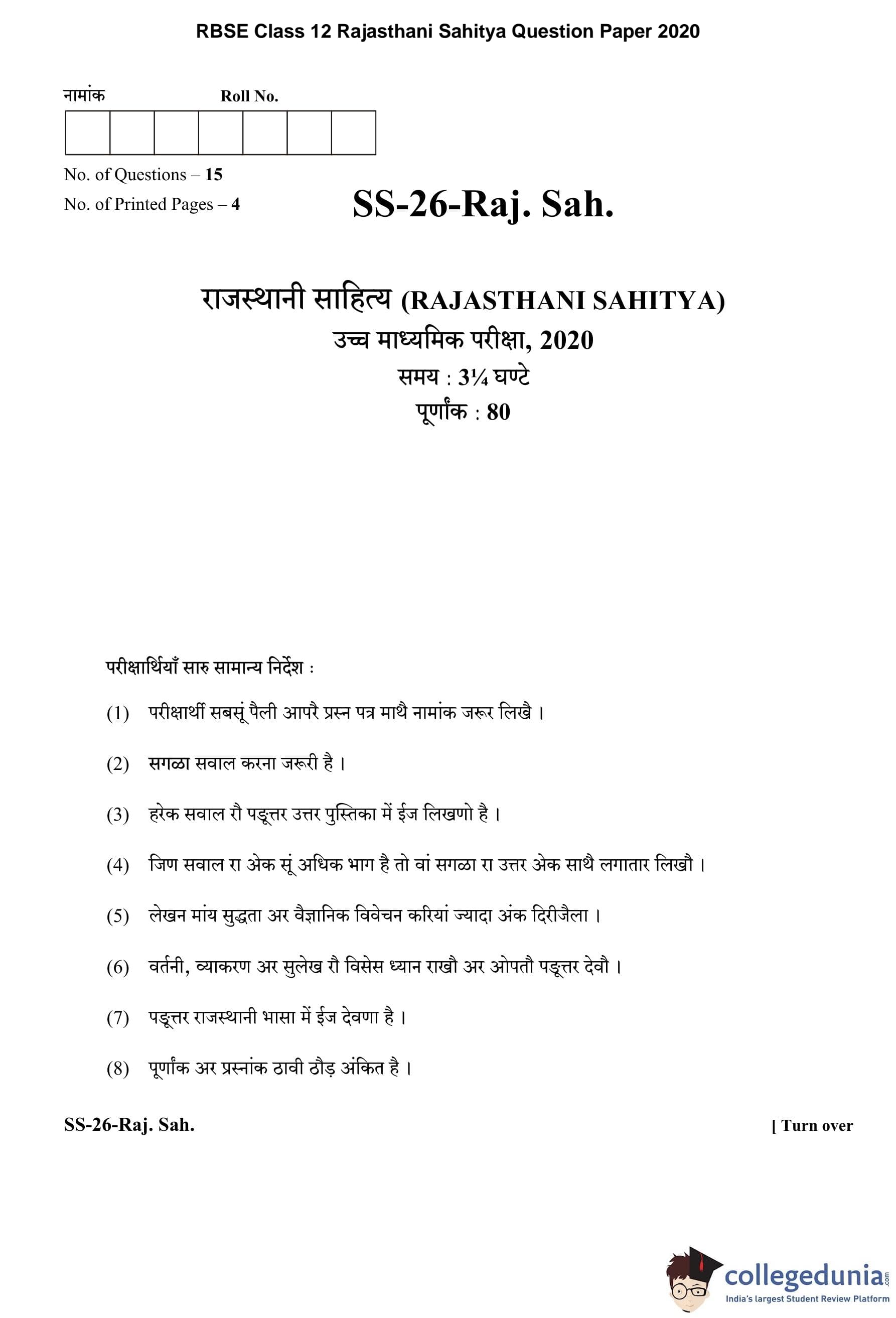 RBSE Class 12 Rajasthani Sahitya Question Paper 2020 with Answer Key