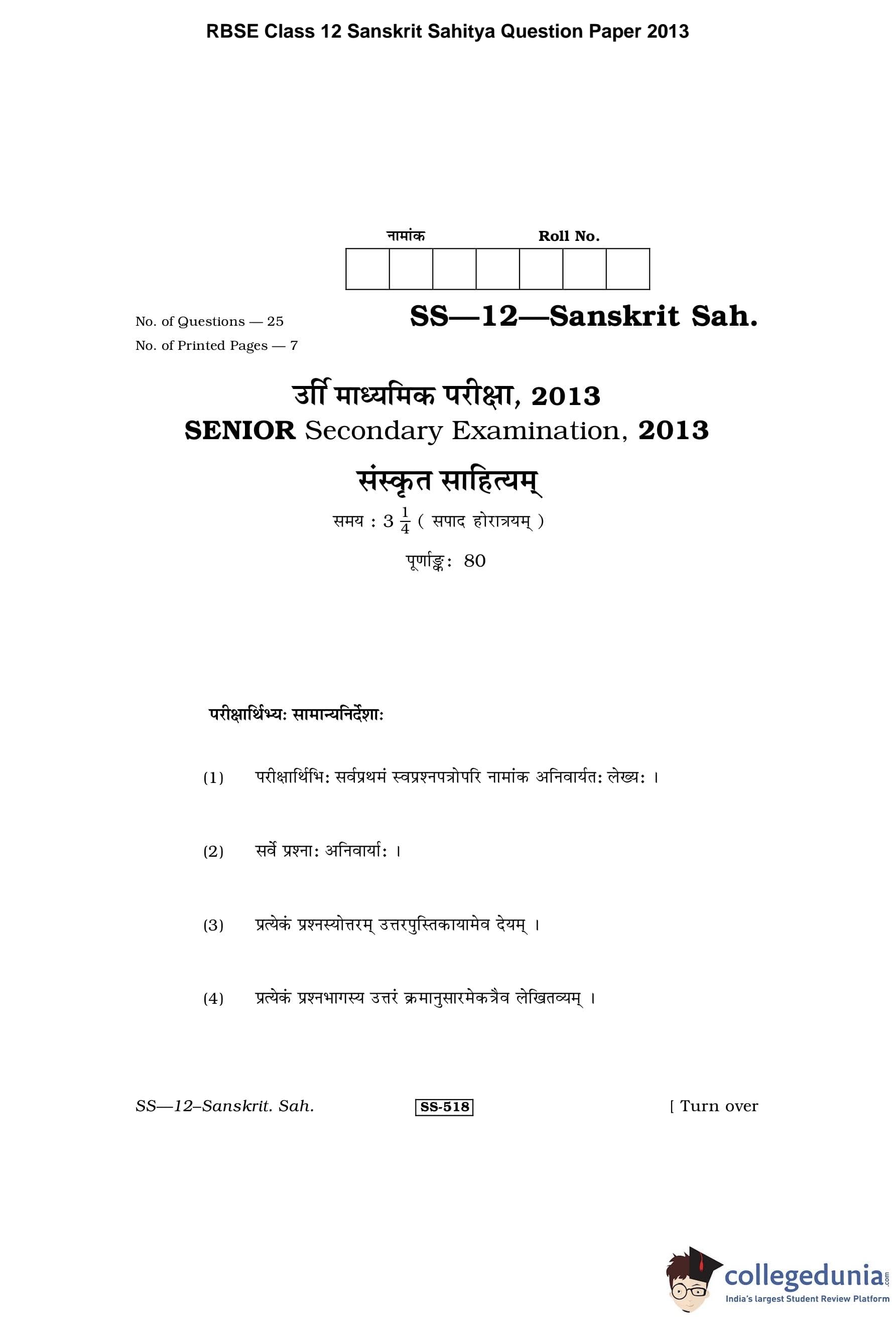 | RBSE Class 12 Sanskrit Sahitya Question Paper 2013 PDF | RBSE Class 12 Sanskrit Sahitya Answer Key 2013 PDF |
