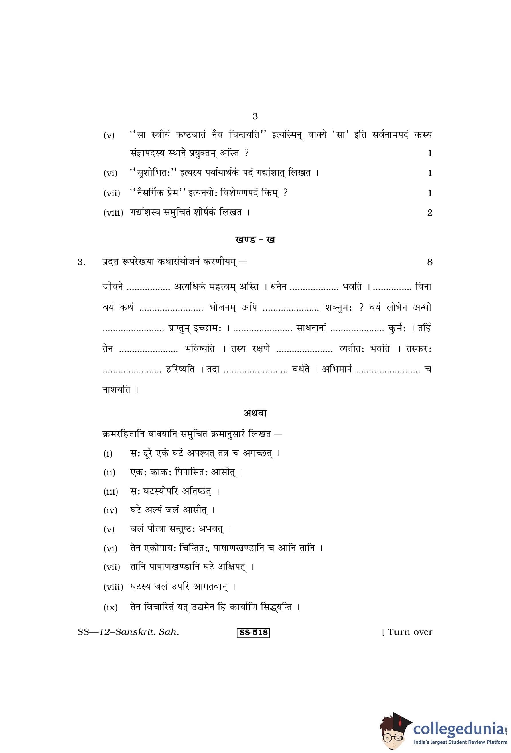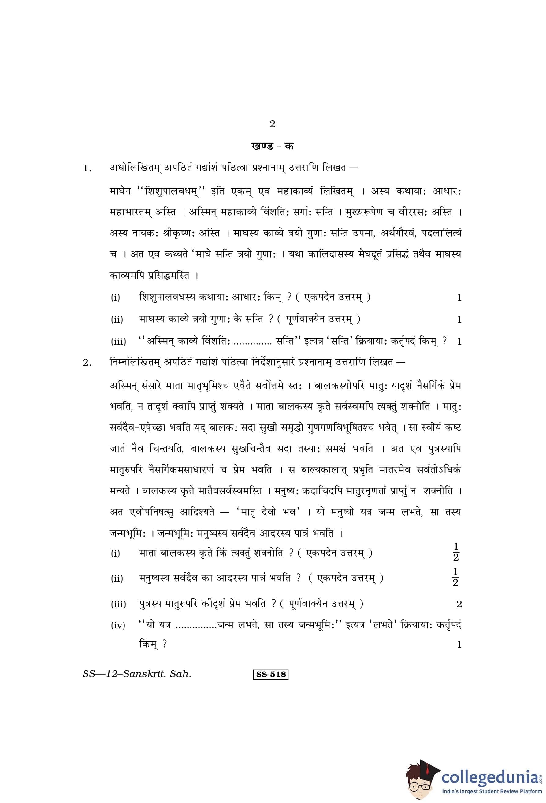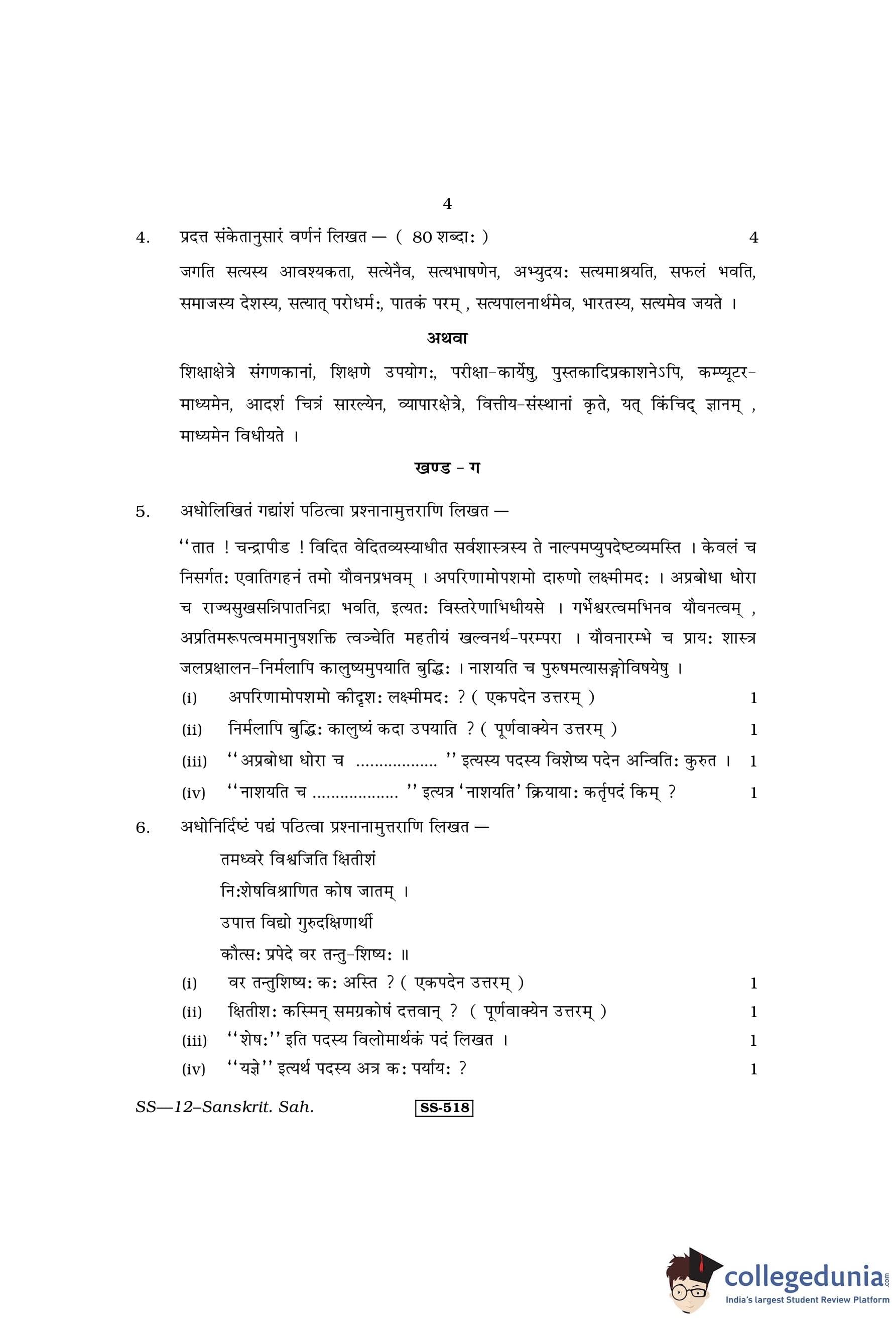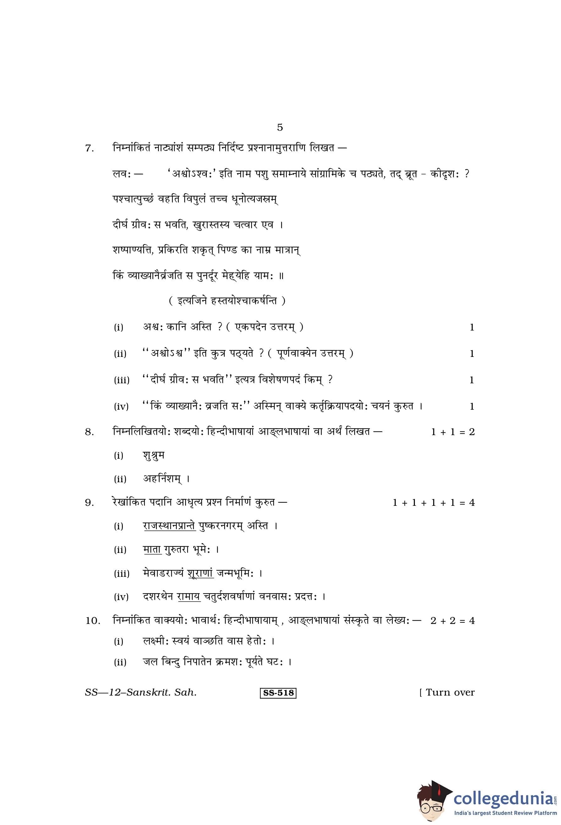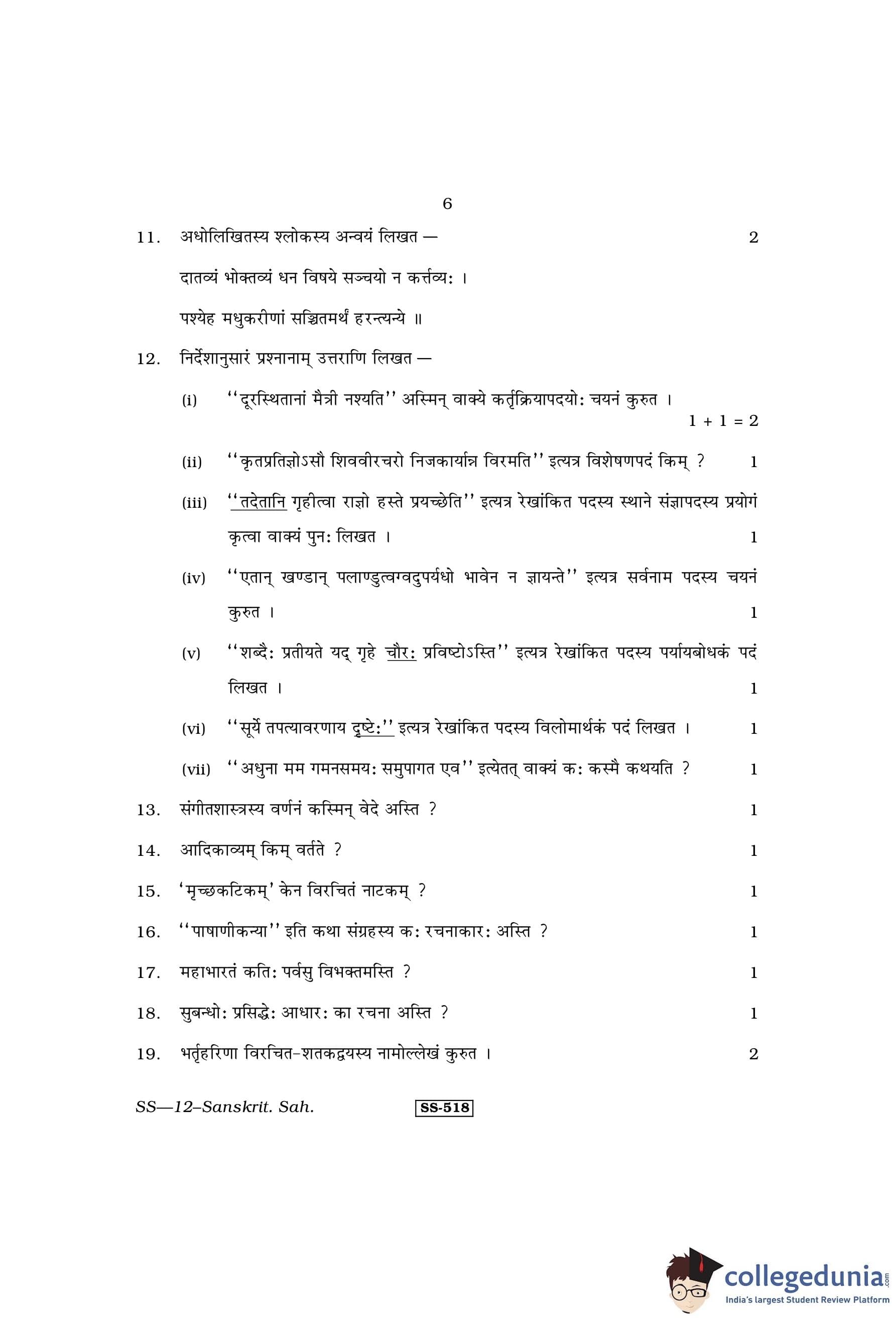 RBSE Class 12 Sanskrit Sahitya Question Paper 2013 with Answer Key pdf is available for download here. The exam was conducted by Board of Secondary Education Rajasthan (BSER) on April 1, 2013 in the Morning Session 8:30 AM to 11:45 AM. The question paper comprised a total of 25 questions divided among 4 sections.