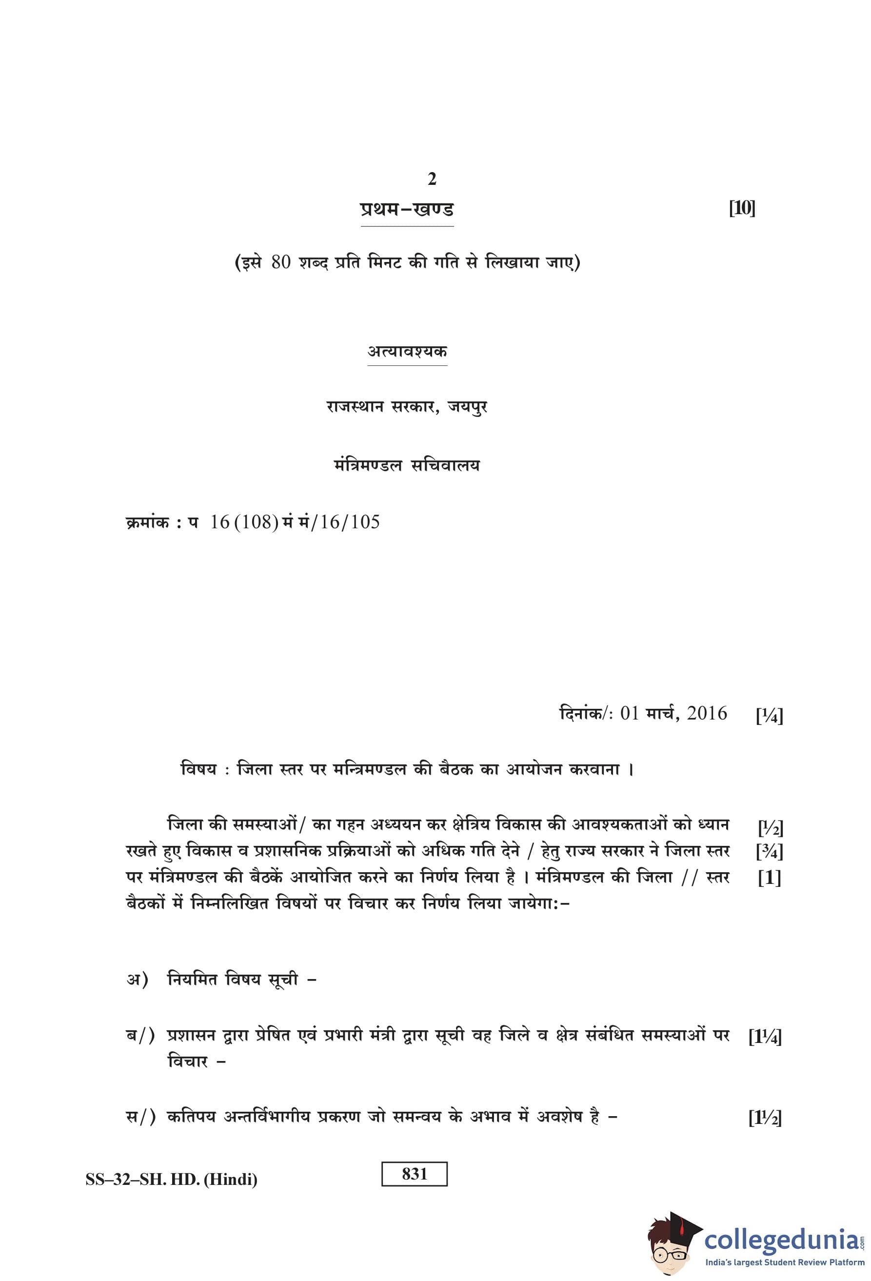 RBSE Class 12 Shorthand Hindi Question Paper 2017 with Answer Key