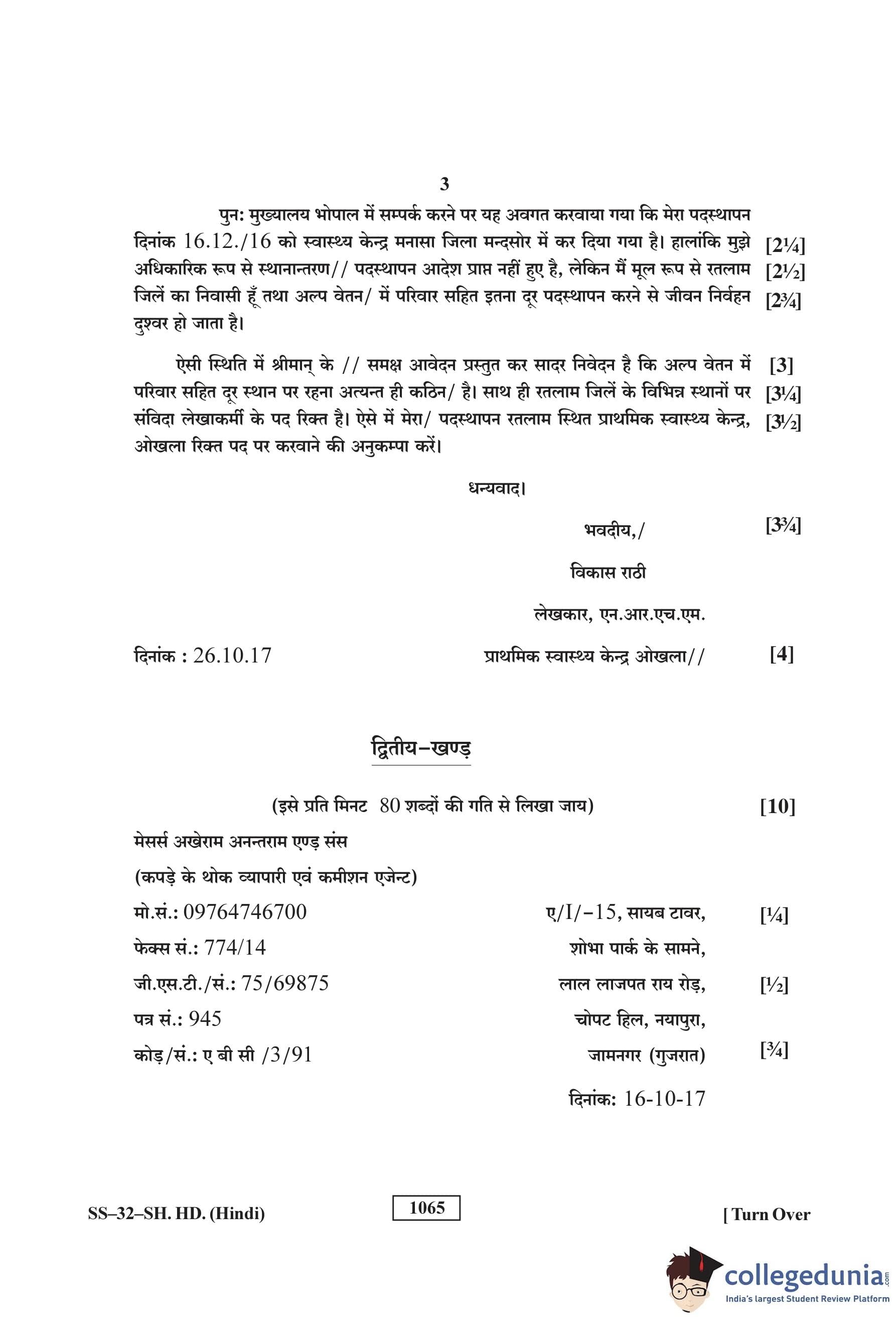 RBSE Class 12 Shorthand Hindi Question Paper 2018 with Answer Key