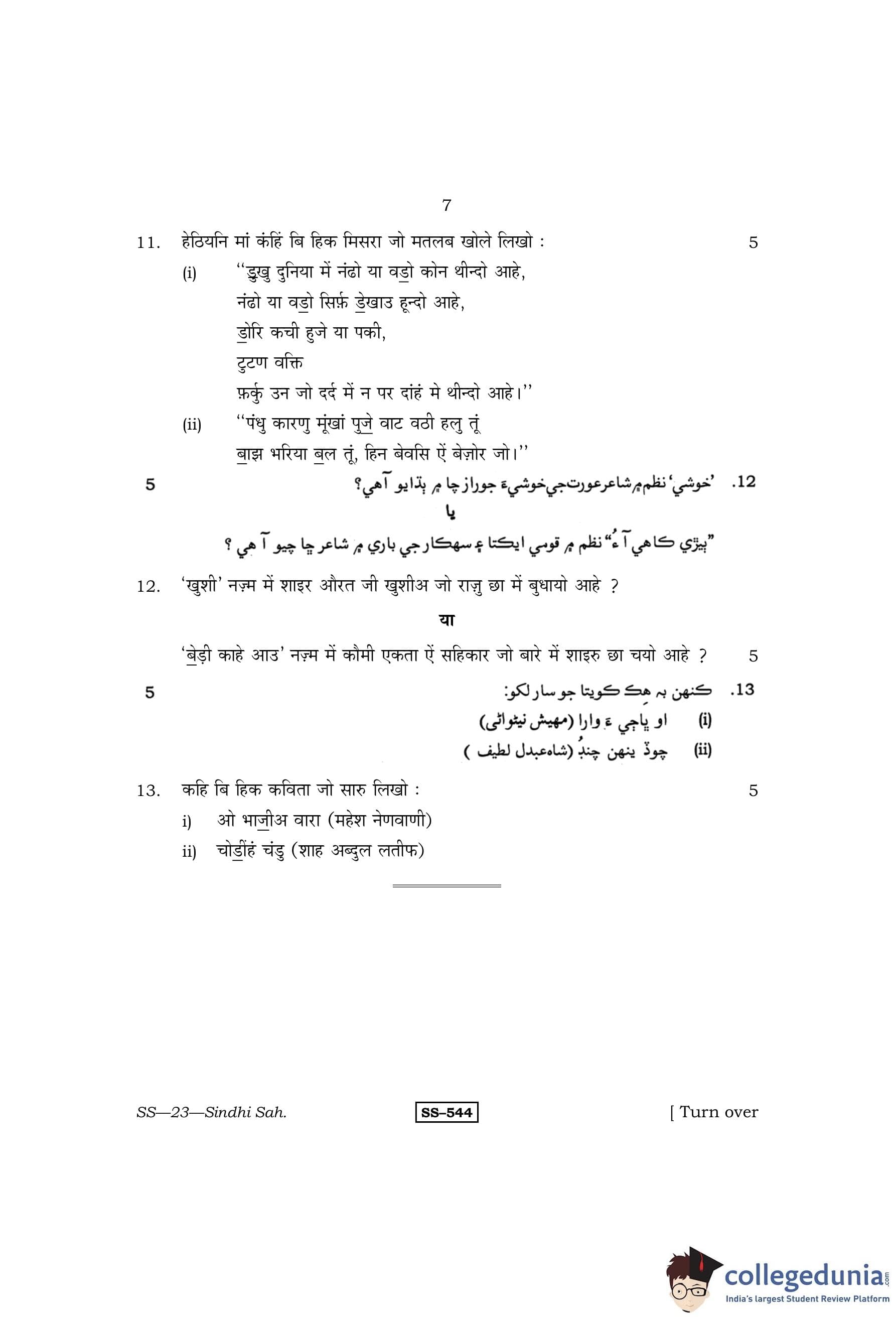 RBSE Class 12 Sindhi Sahitya Question Paper 2013 with Answer Key pdf is available for download here. The exam was conducted by Board of Secondary Education Rajasthan (BSER) on March 19, 2013 in the Morning Session 8:30 AM to 11:45 AM. The question paper comprised a total of 13 questions.