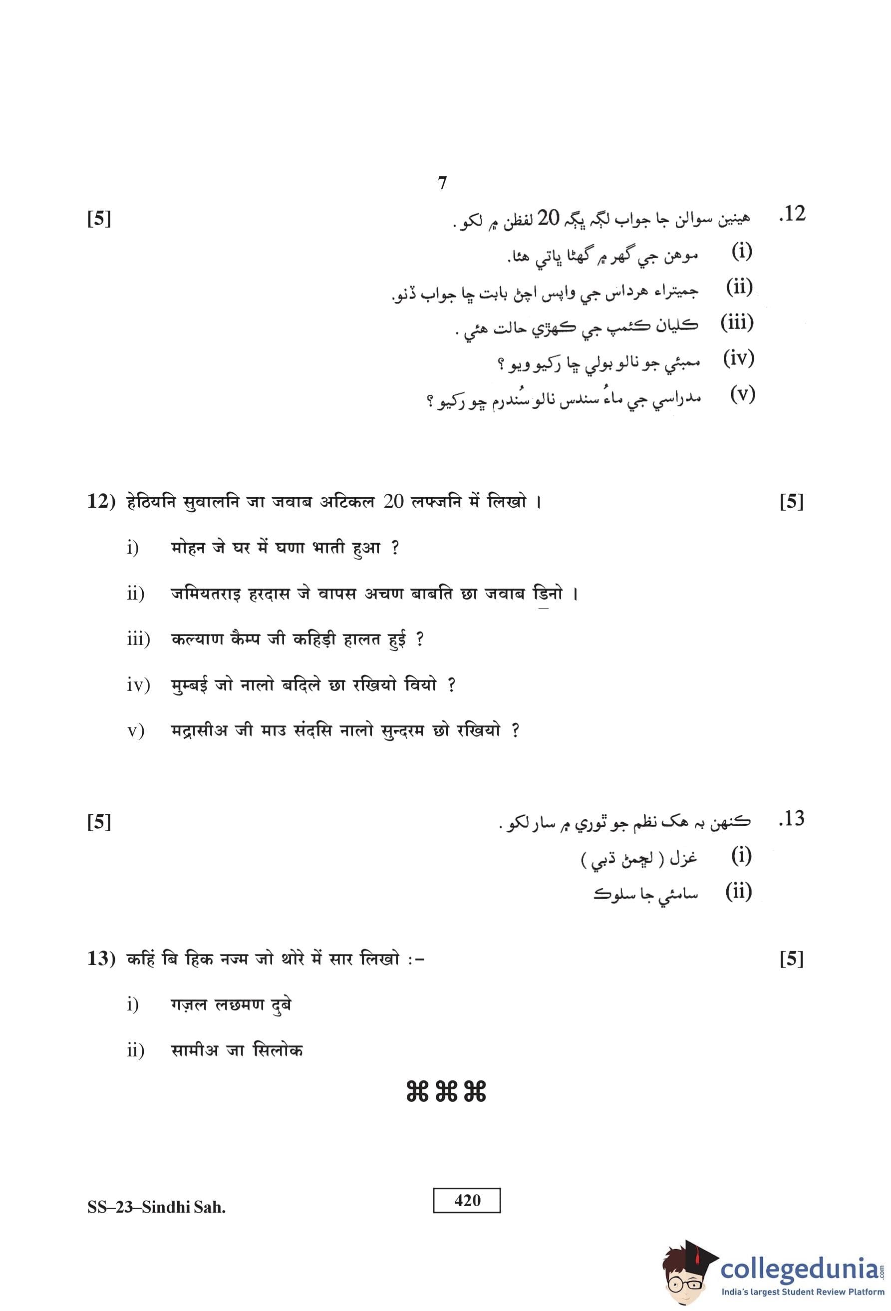 RBSE Class 12 Sindhi Sahitya Question Paper 2016 with Answer Key pdf is available for download here. The exam was conducted by Board of Secondary Education Rajasthan (BSER) on March 19, 2016 in the Morning Session 8:30 AM to 11:45 AM. The question paper comprised a total of 13 questions.