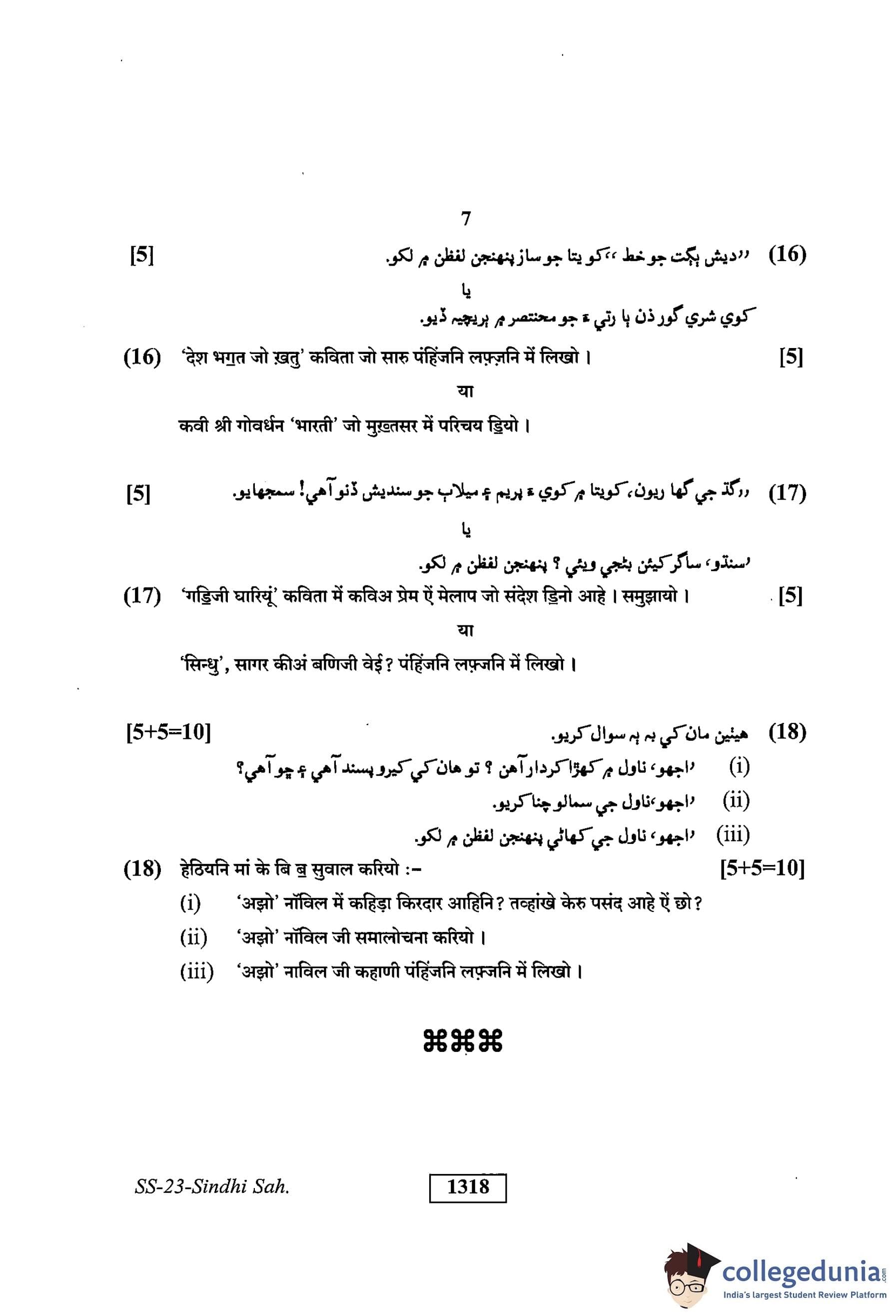 RBSE Class 12 Sindhi Sahitya Question Paper 2019 with Answer Key