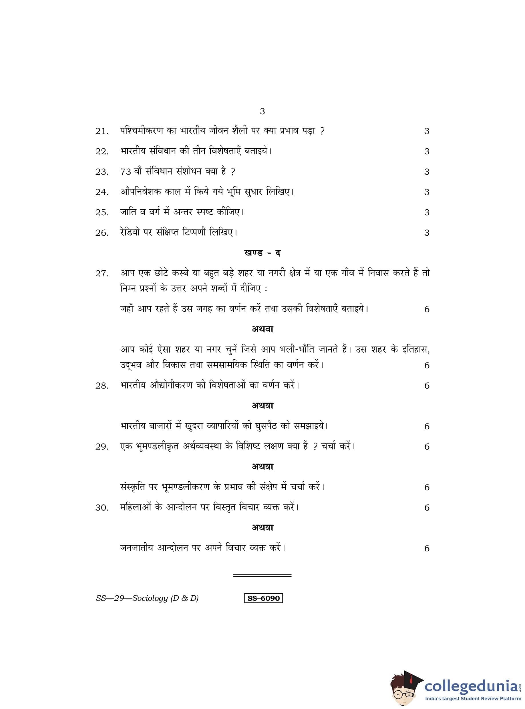 RBSE Class 12 Sociology Question Paper 2015 with Answer Key pdf is available for download here. The exam was conducted by Board of Secondary Education Rajasthan (BSER) on March 17, 2015 in the Morning Session 8:30 AM to 11:45 AM. The question paper comprised a total of 30 questions divided among 4 sections.