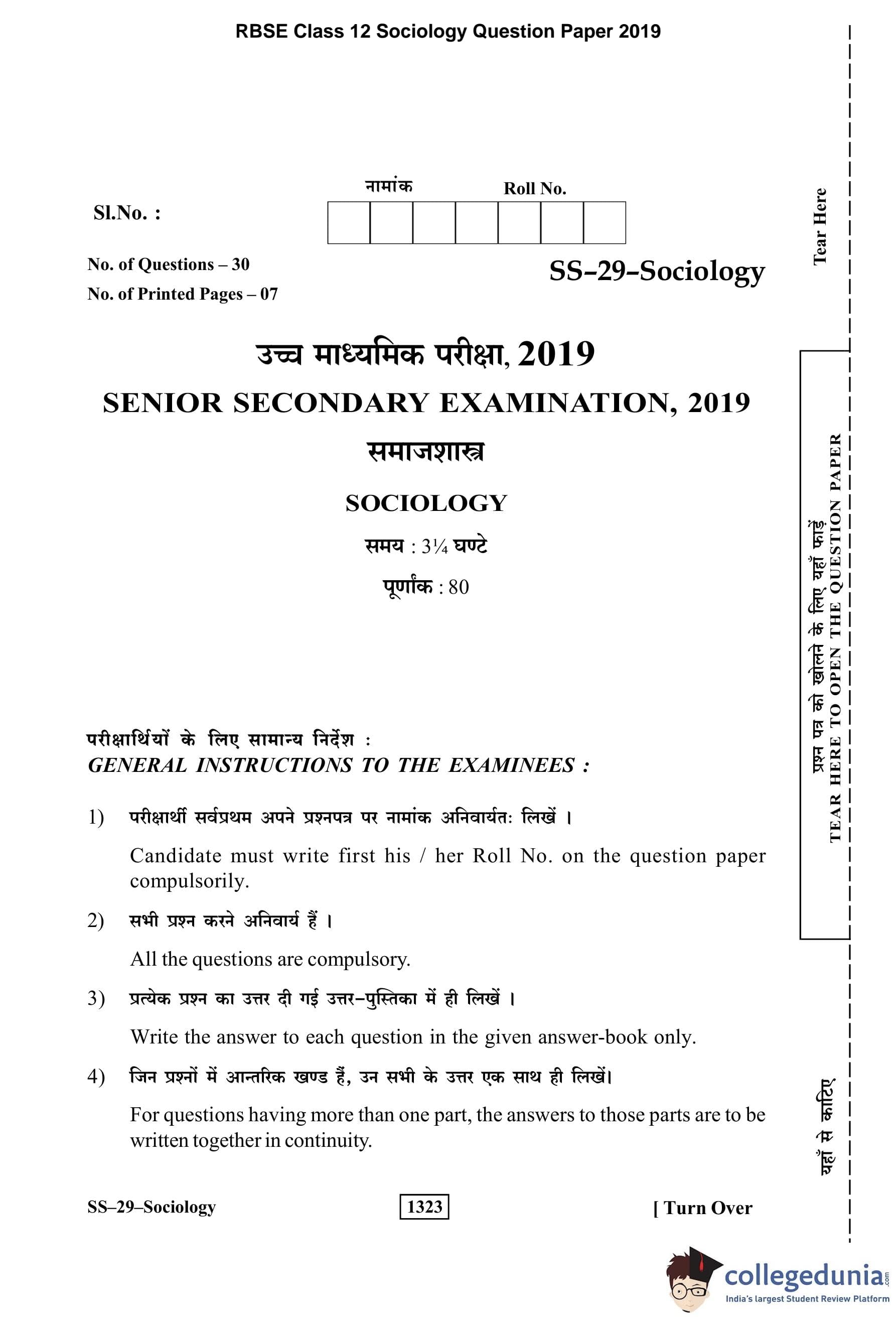 | RBSE Class 12 Sociology Question Paper 2019 PDF | RBSE Class 12 Sociology Answer Key 2019 PDF |