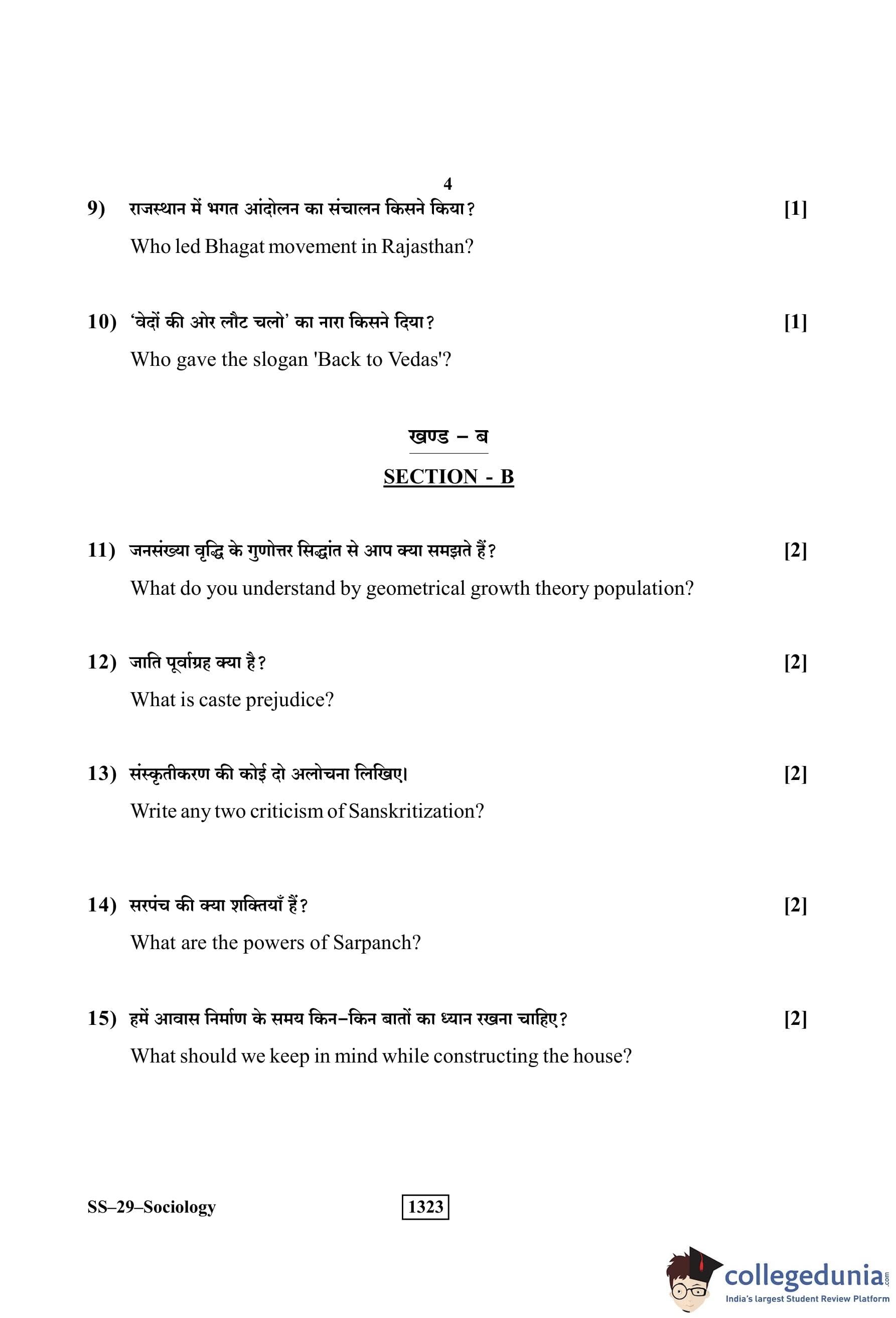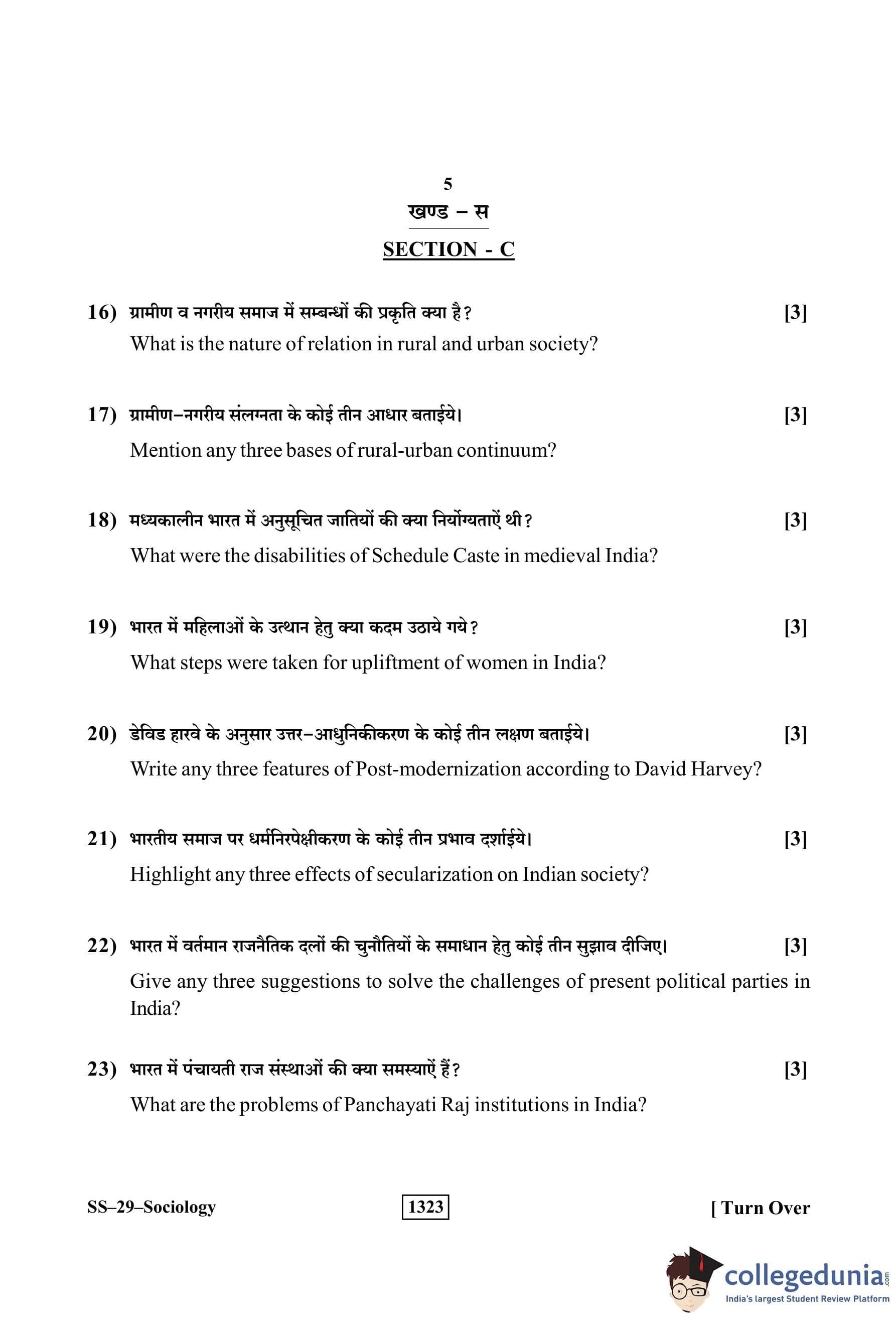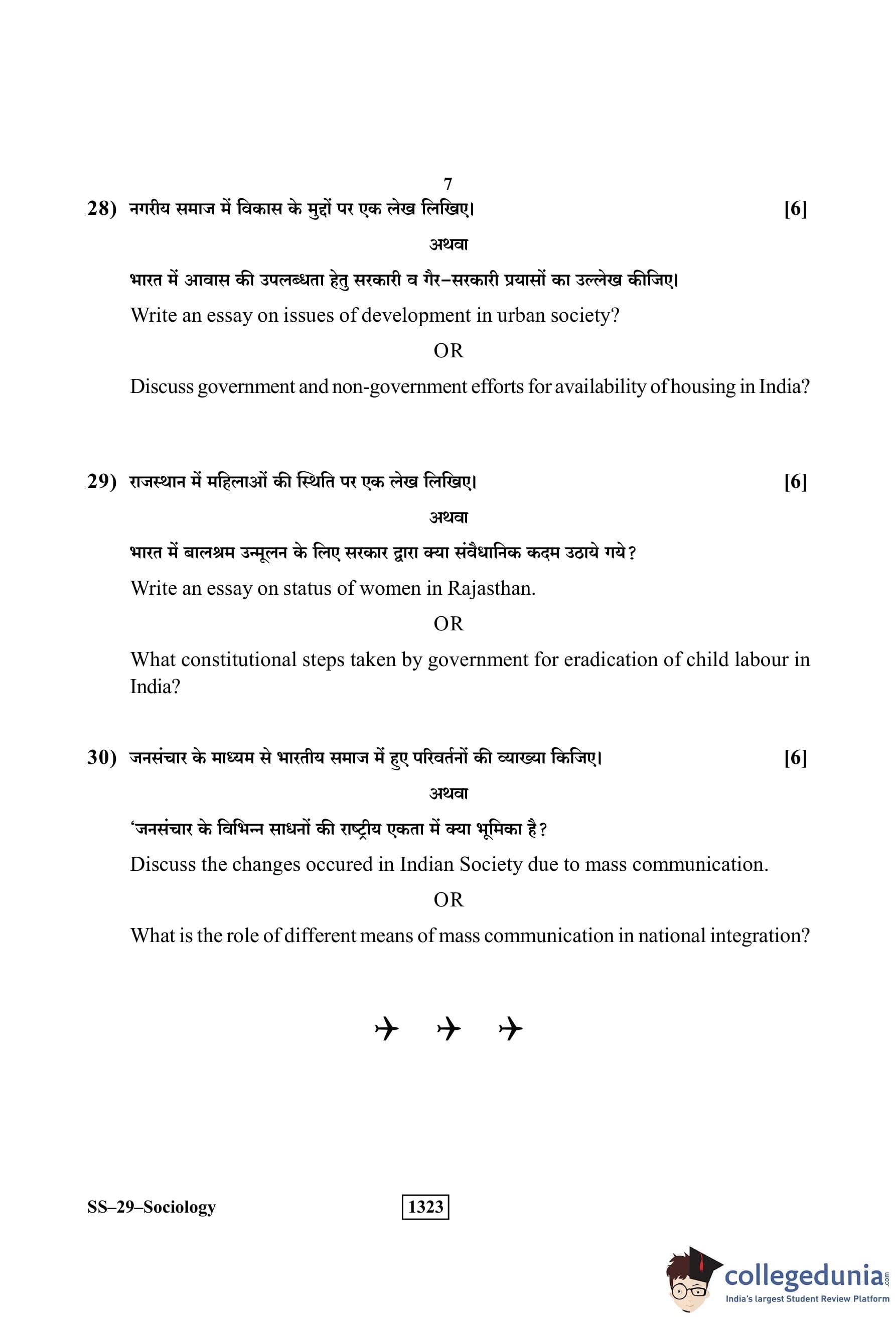 RBSE Class 12 Sociology Question Paper 2019 with Answer Key