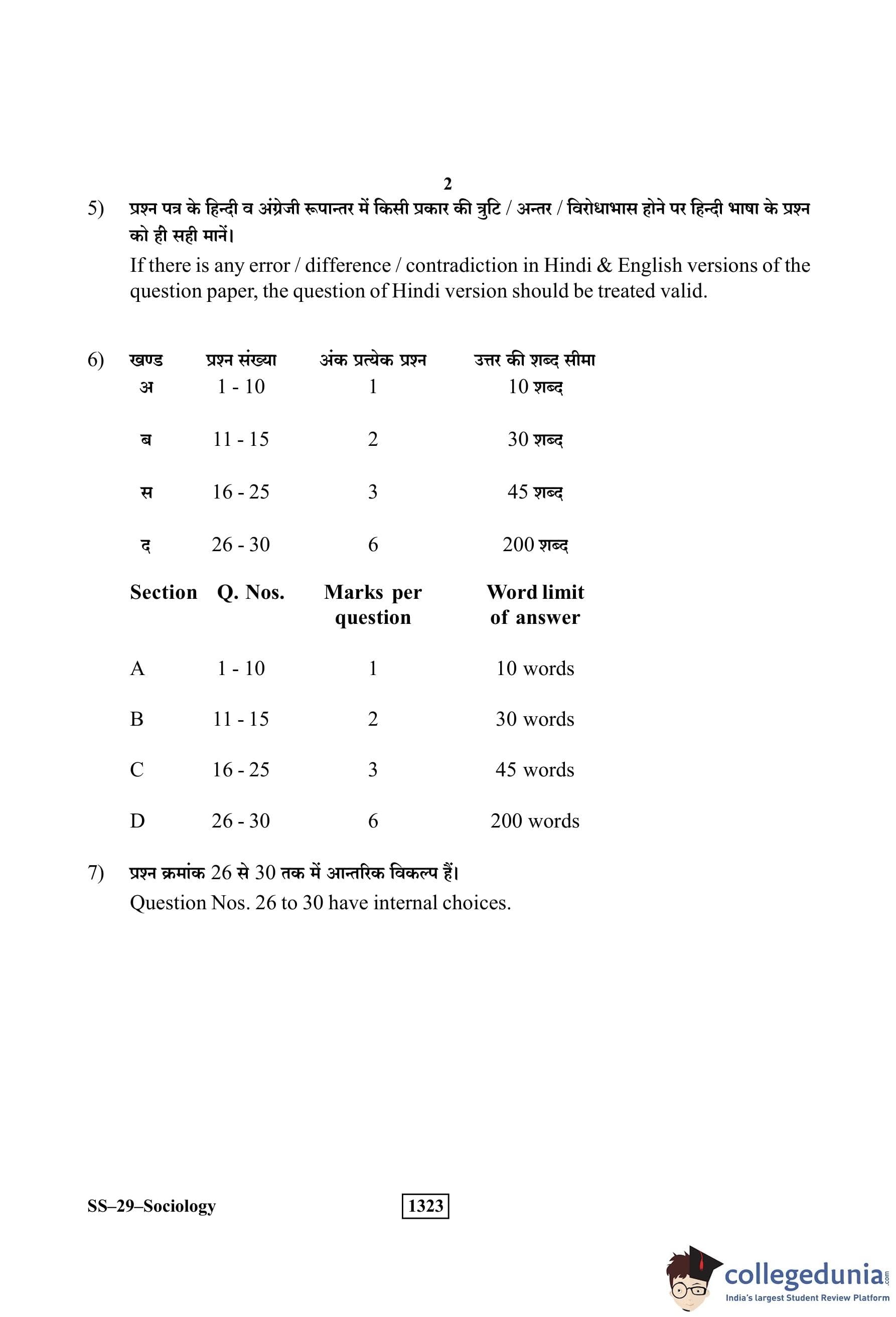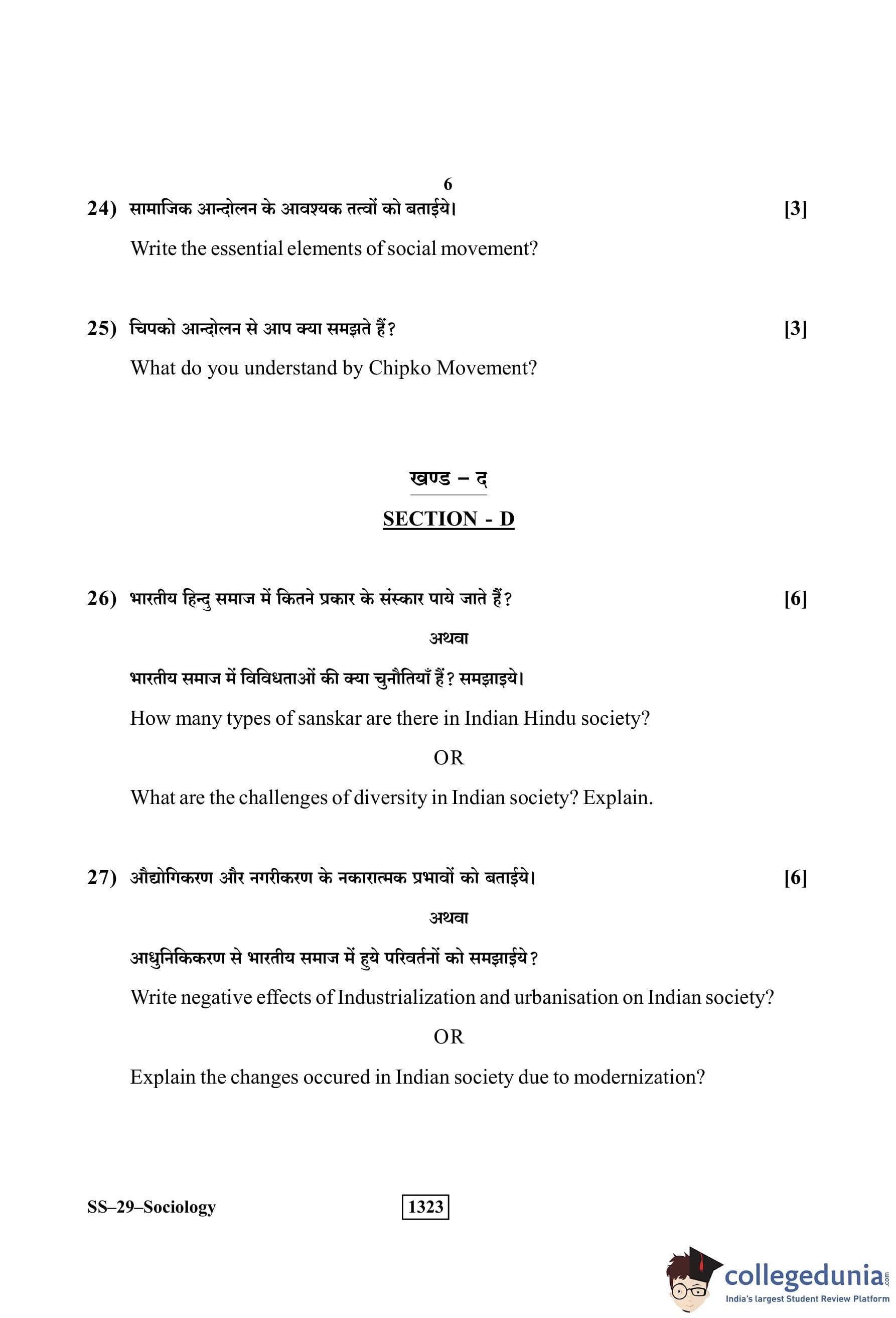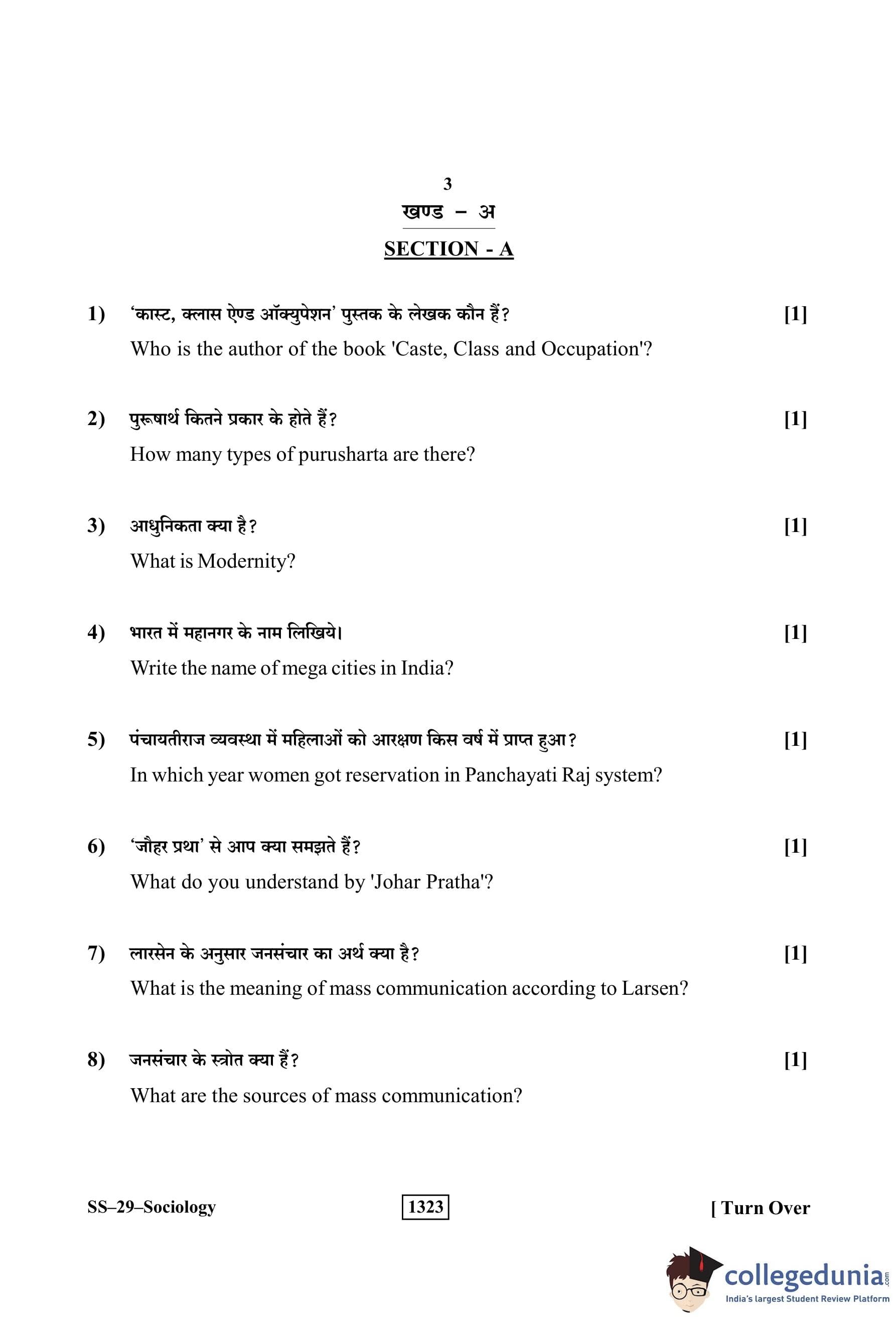 RBSE Class 12 Sociology Question Paper 2019 with Answer Key