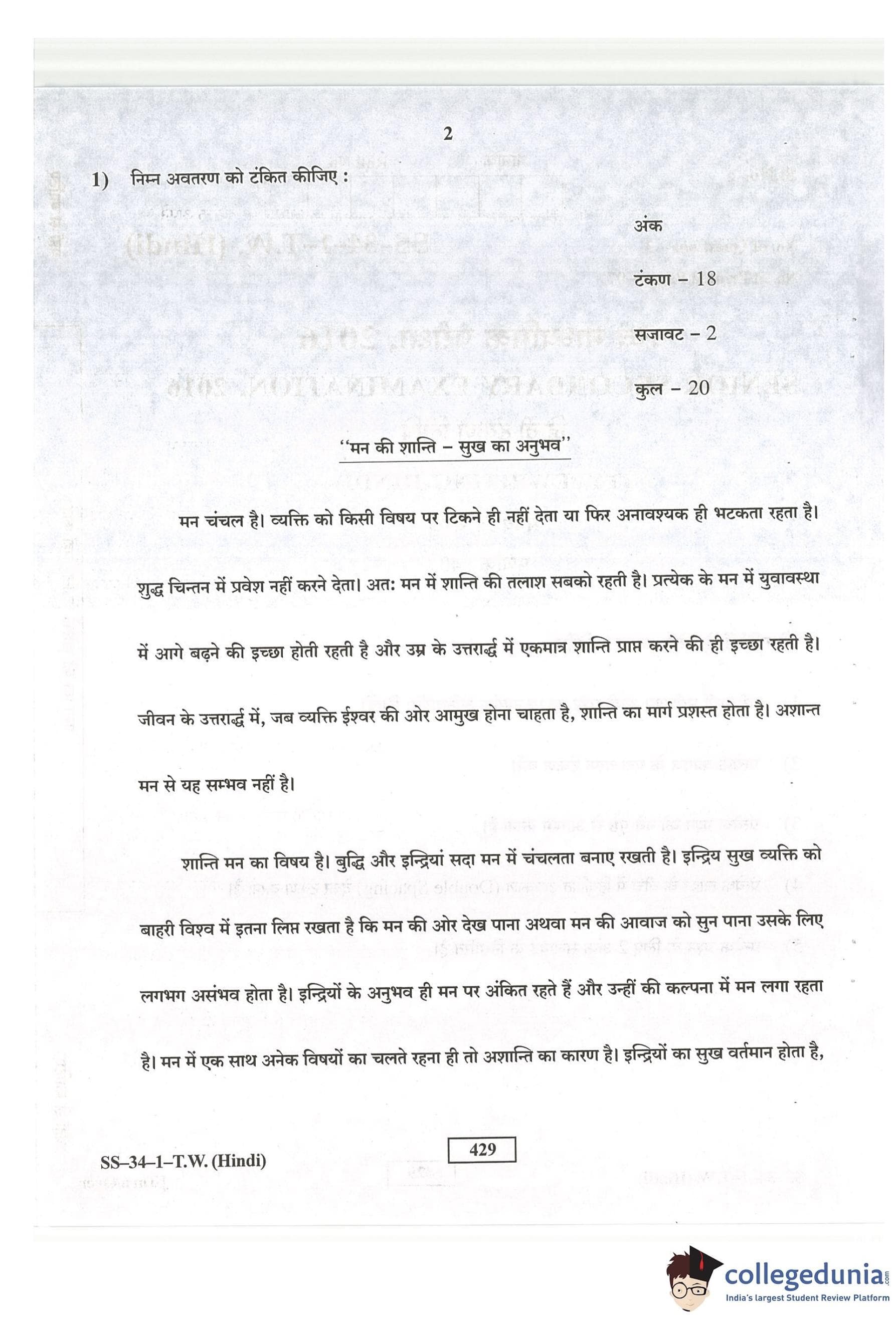 RBSE Class 12 Typewriting Hindi Question Paper 2016 with Answer Key