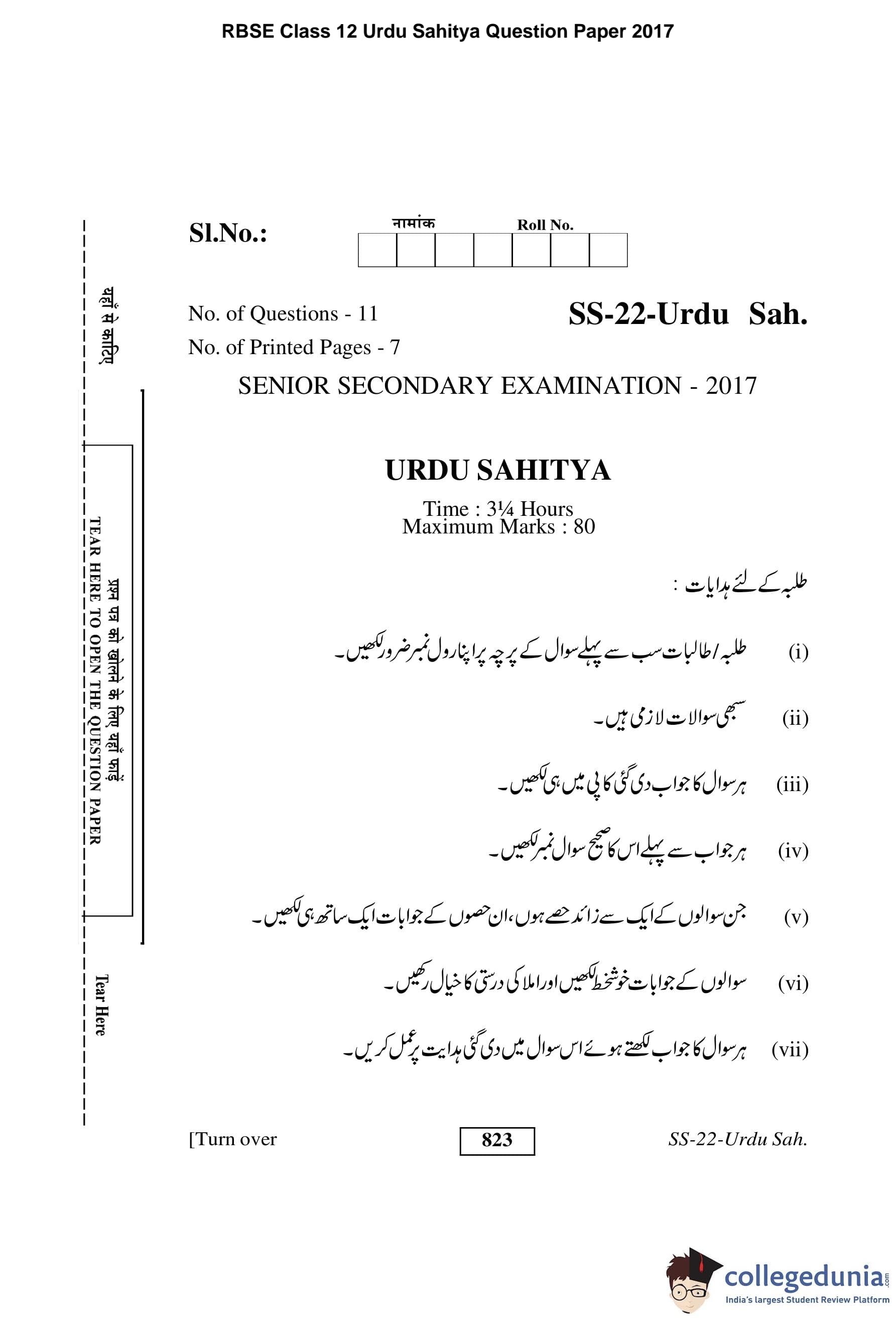 | RBSE Class 12 Urdu Sahitya Question Paper 2017 PDF | RBSE Class 12 Urdu Sahitya Answer Key 2017 PDF |
