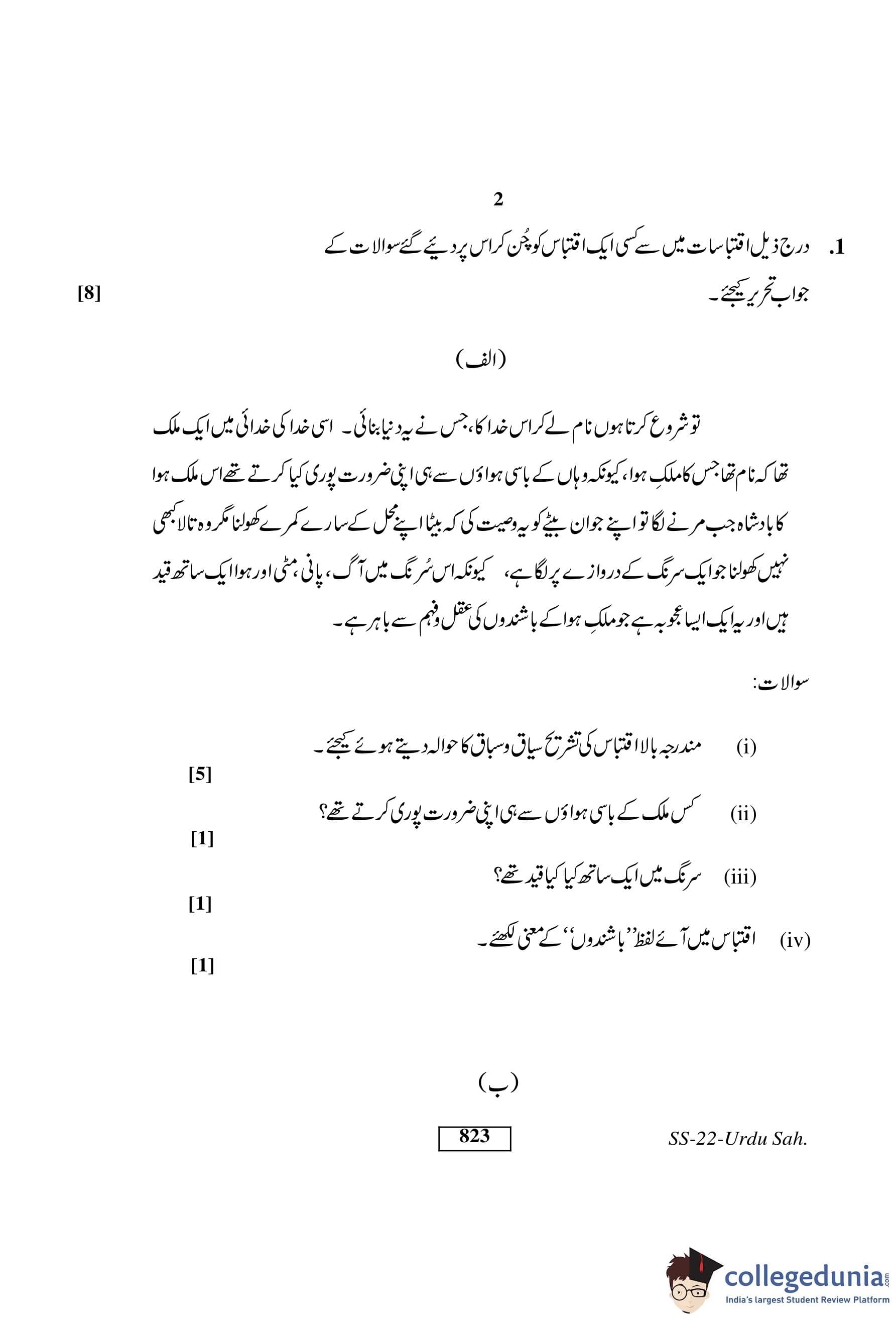 RBSE Class 12 Urdu Sahitya Question Paper 2017 with Answer Key