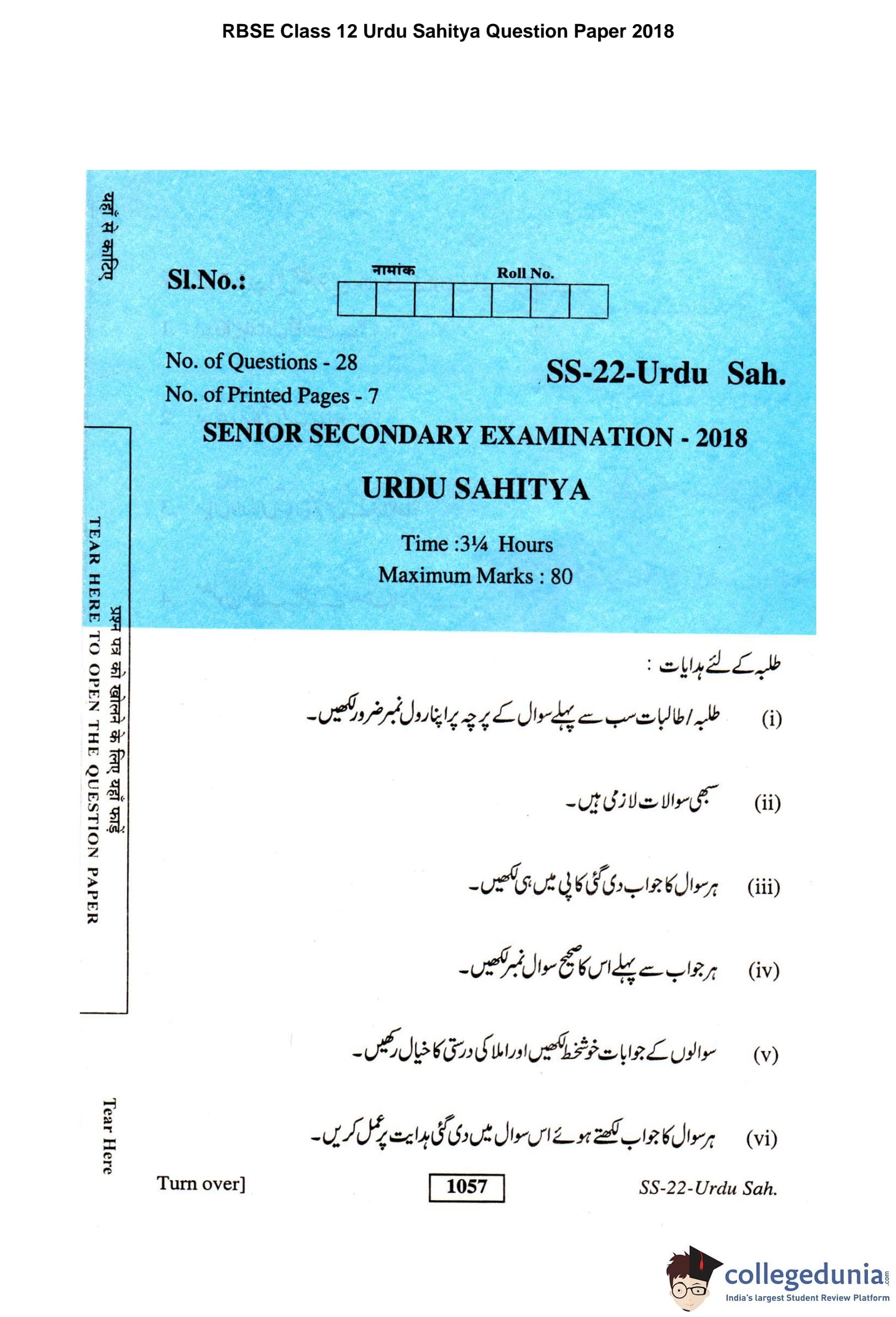 | RBSE Class 12 Urdu Sahitya Question Paper 2018 PDF | RBSE Class 12 Urdu Sahitya Answer Key 2018 PDF |