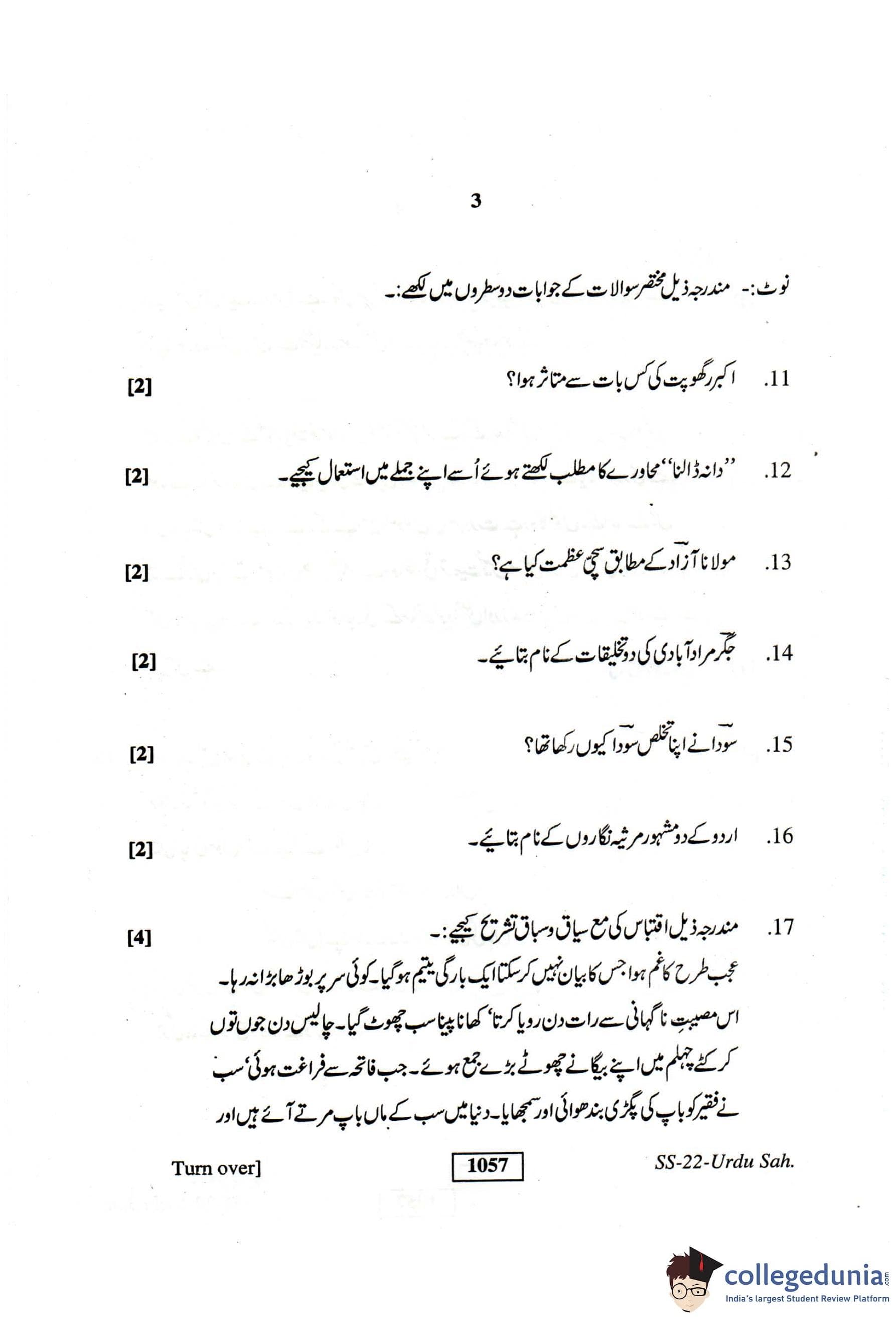 RBSE Class 12 Urdu Sahitya Question Paper 2018 with Answer Key pdf is available for download here. The exam was conducted by Board of Secondary Education Rajasthan (BSER) on March 27, 2018 in the Morning Session 8:30 AM to 11:45 AM. The question paper comprised a total of 28 questions.