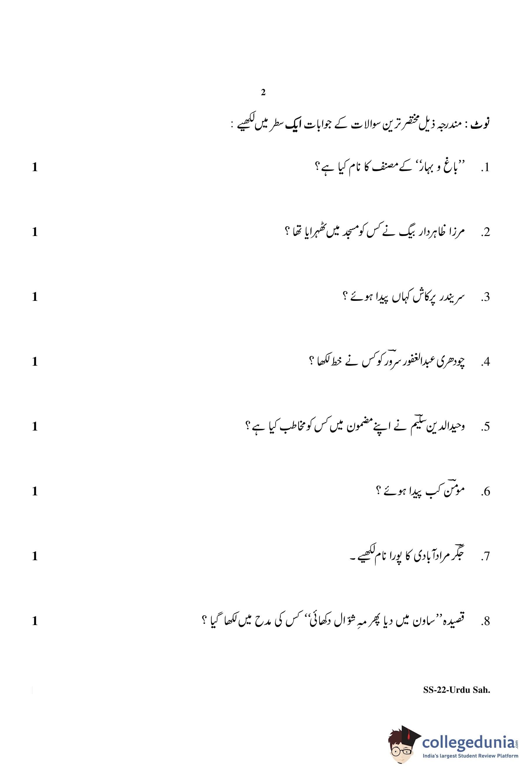 RBSE Class 12 Urdu Sahitya Question Paper 2020 with Answer Key pdf is available for download here. The exam was conducted by Board of Secondary Education Rajasthan (BSER) on March 24, 2020 in the Morning Session 8:30 AM to 11:45 AM. The question paper comprised a total of 28 questions.