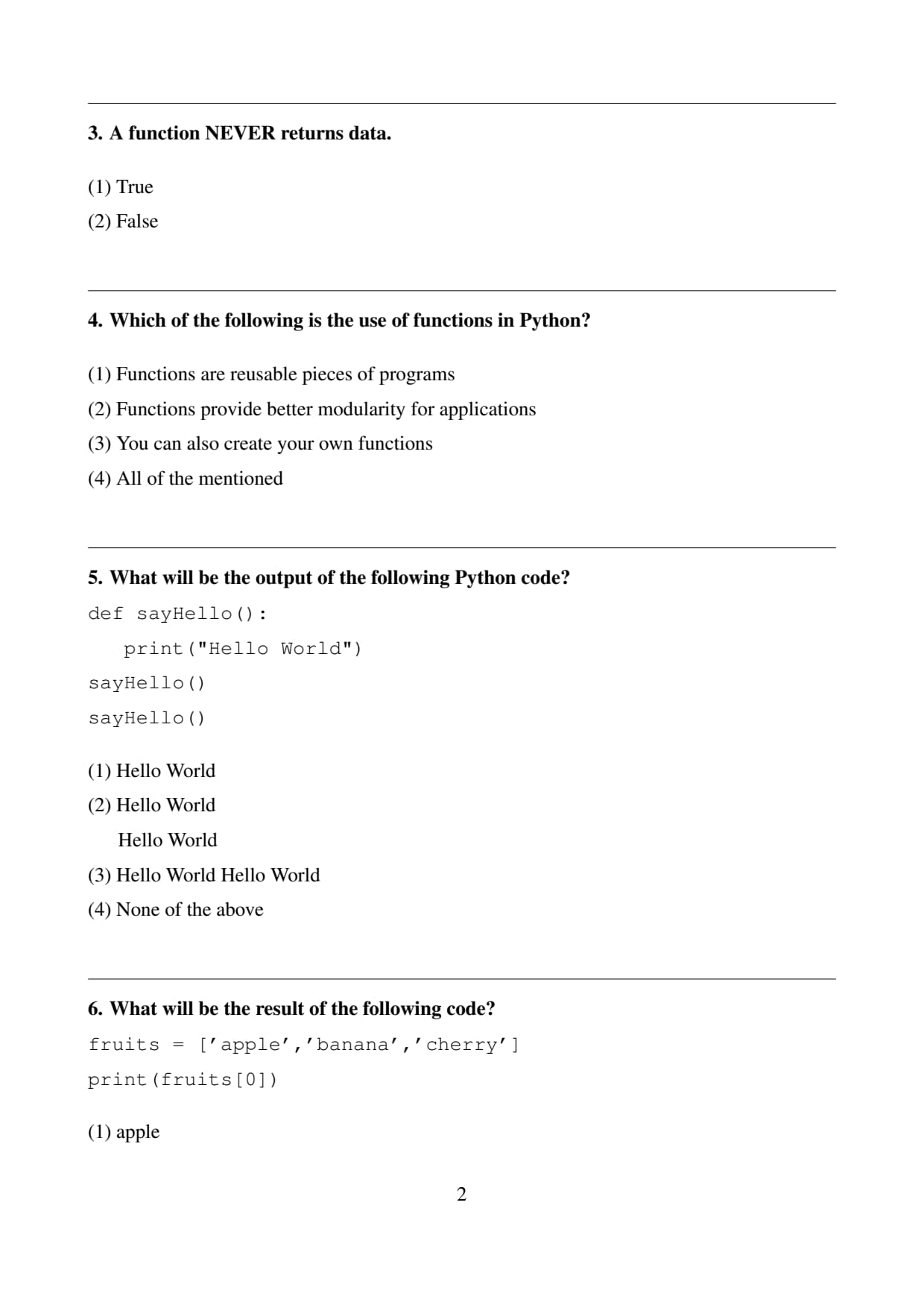 Since all the given statements describe valid uses of functions in Python, the correct answer is