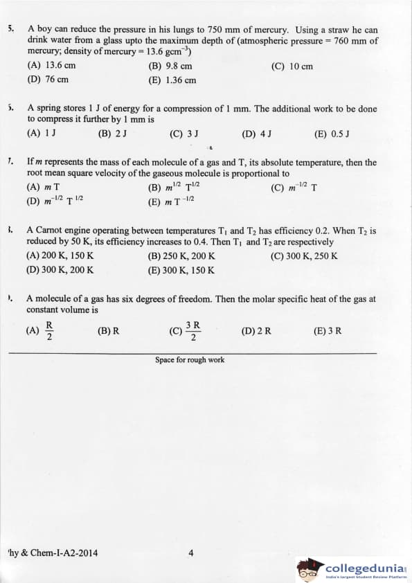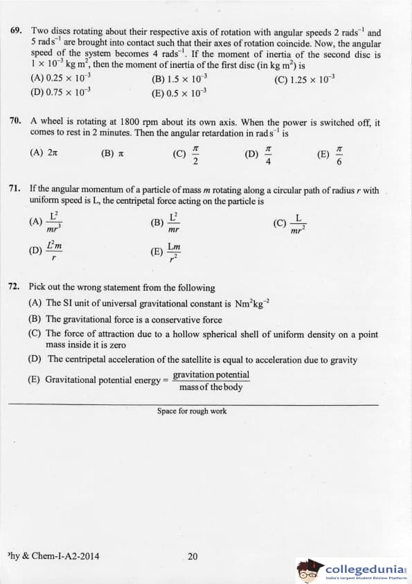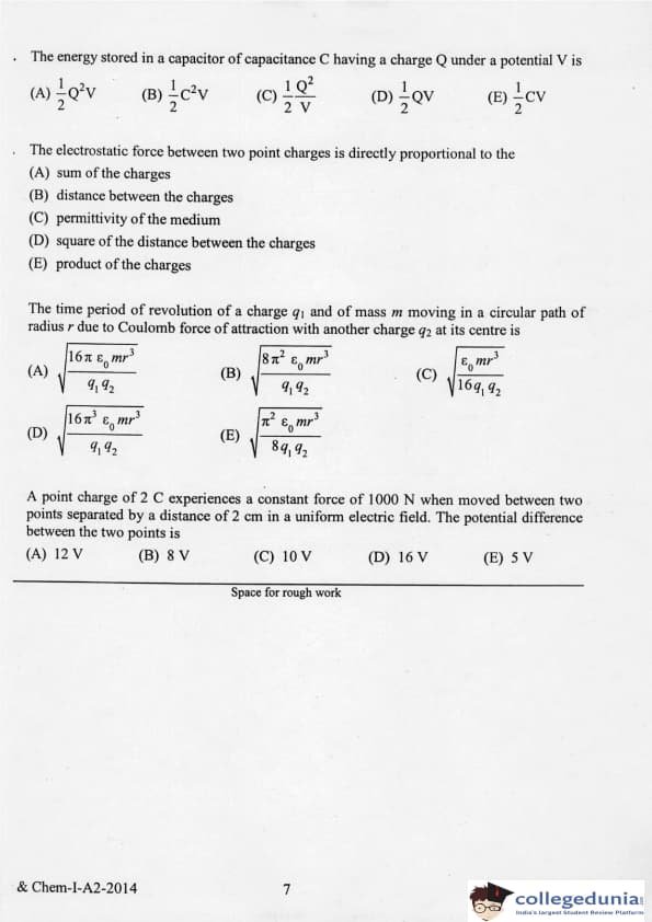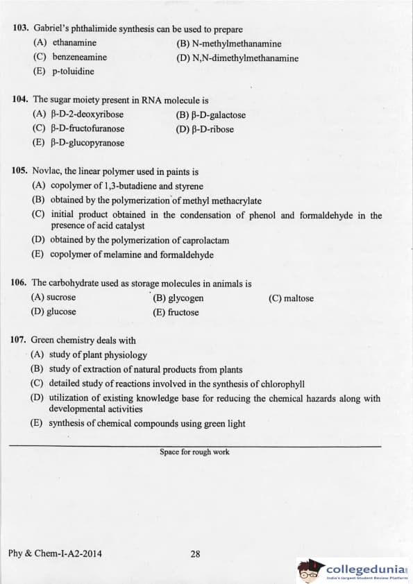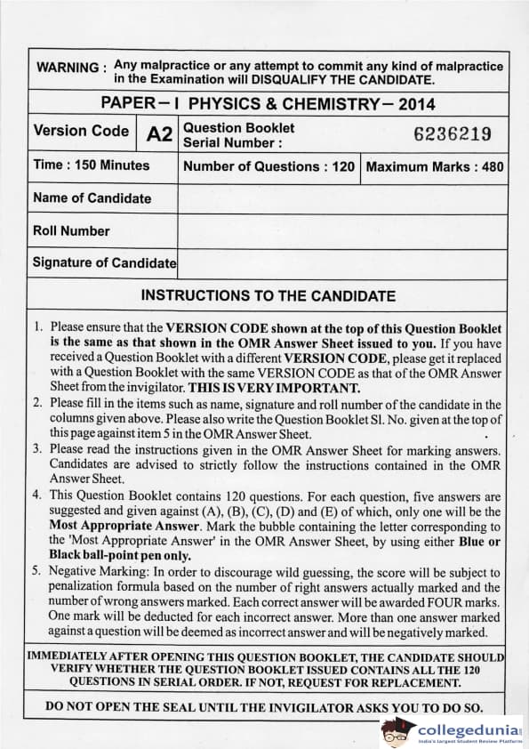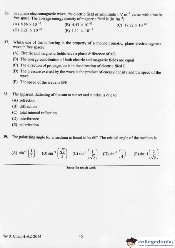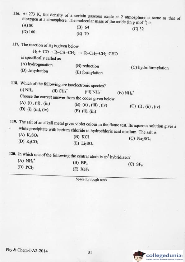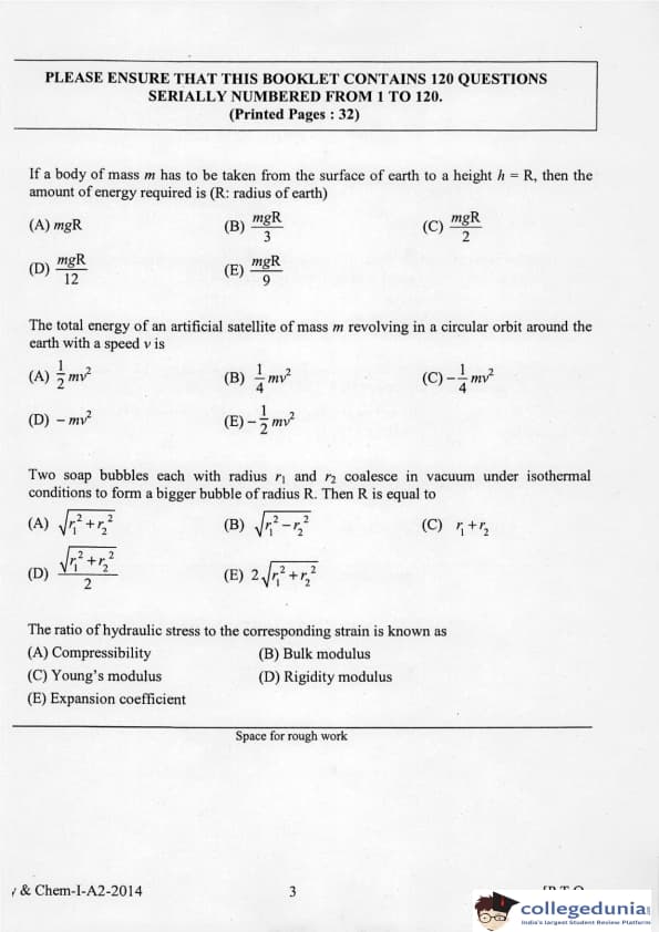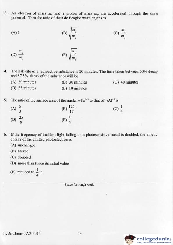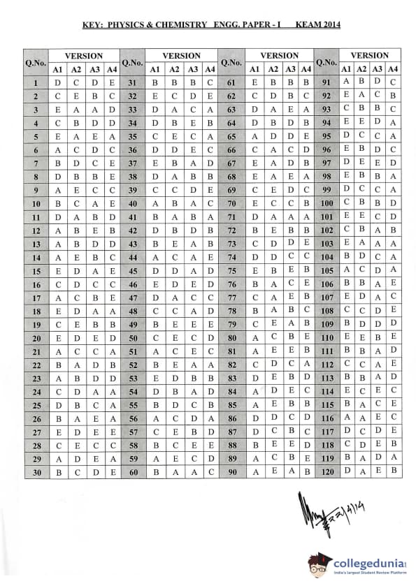 KEAM 2014 Physics & Chemistry Question paper with answer key pdf conducted on April 21, 2014 is available for download. The exam was successfully organized by Commissioner of Entrance Examinations Kerala. The question paper comprised a total of 120 questions.
