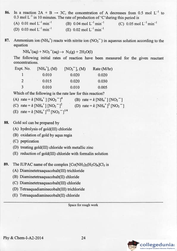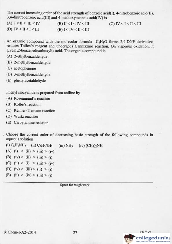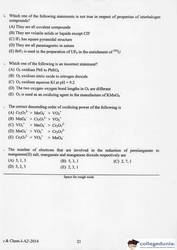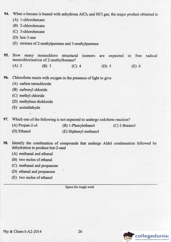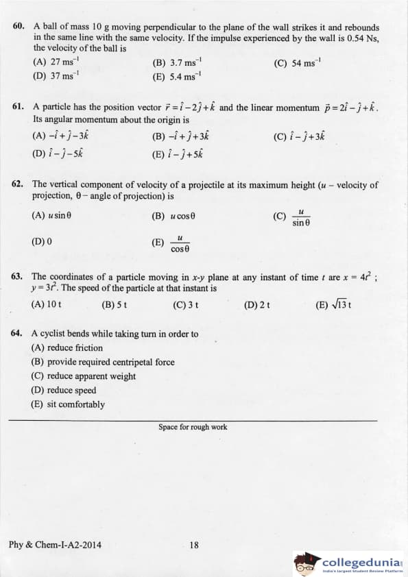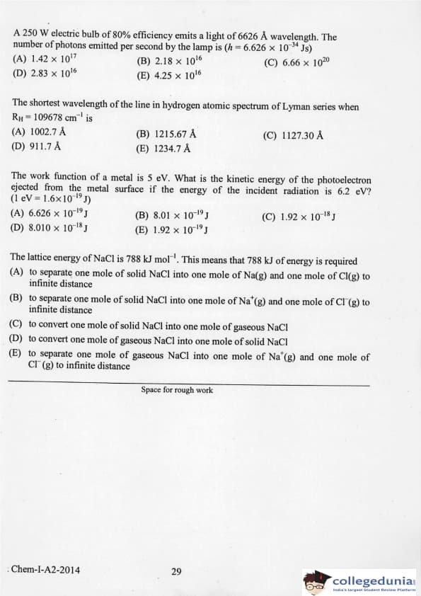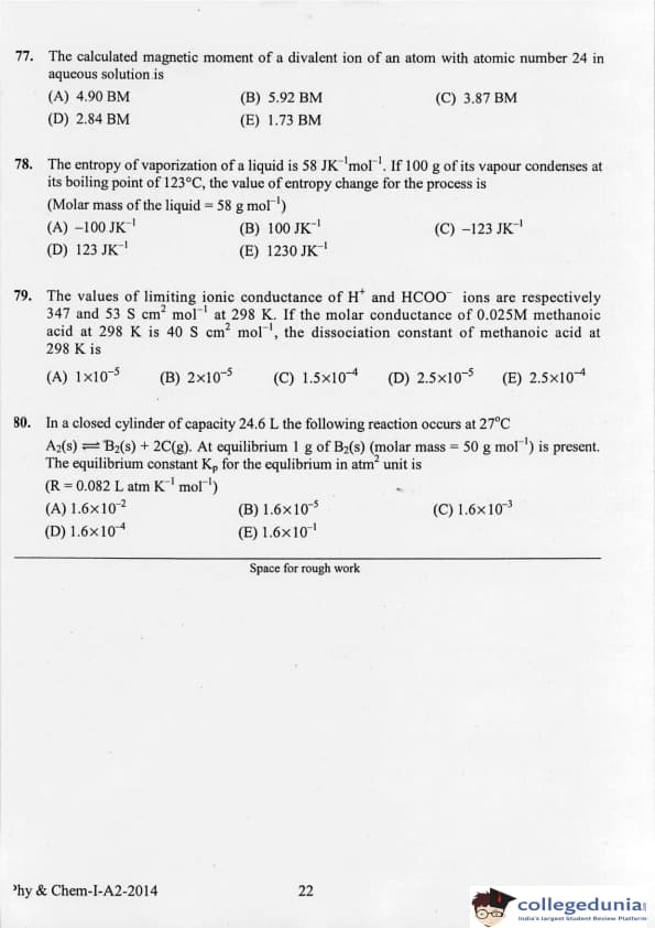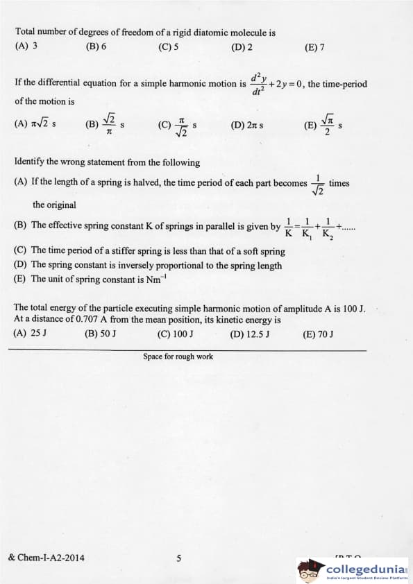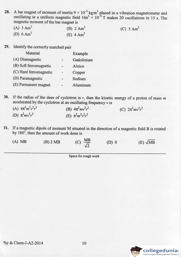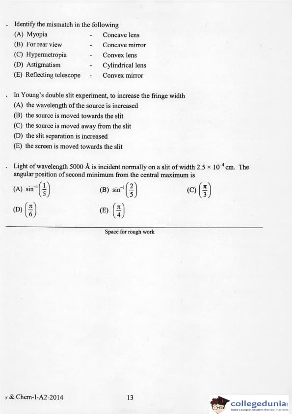 KEAM 2014 Physics & Chemistry Question paper with answer key pdf conducted on April 21, 2014 is available for download. The exam was successfully organized by Commissioner of Entrance Examinations Kerala. The question paper comprised a total of 120 questions.