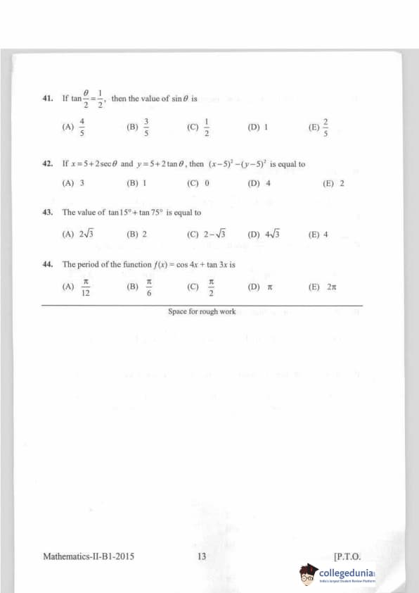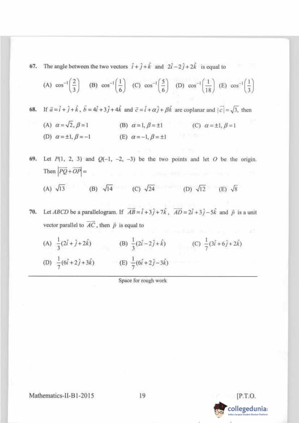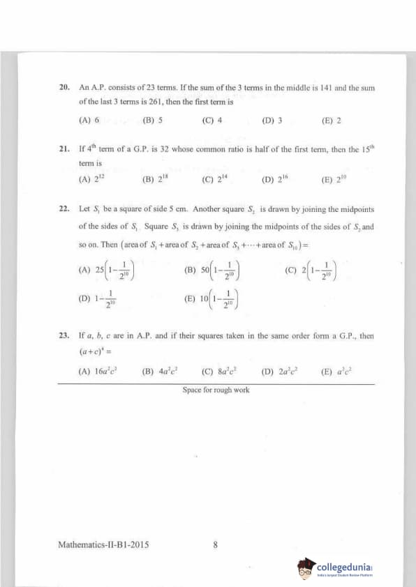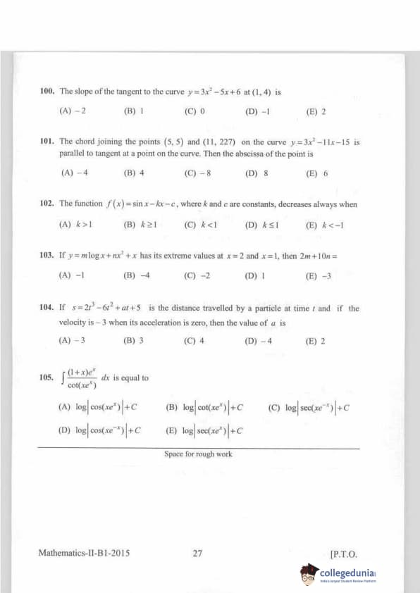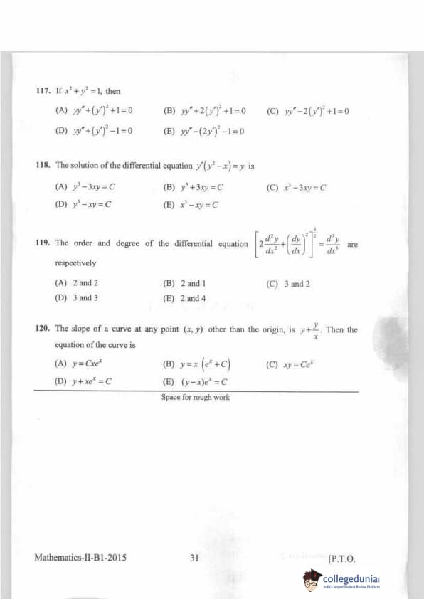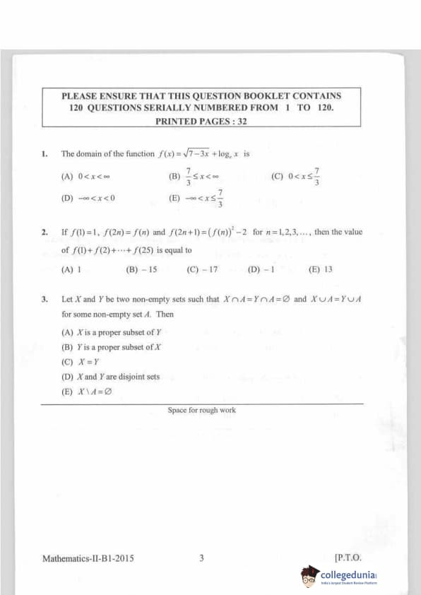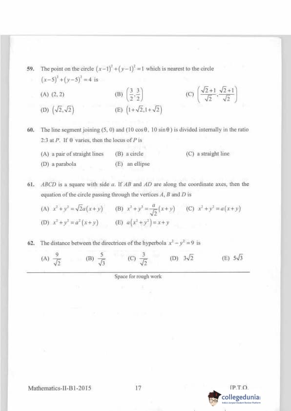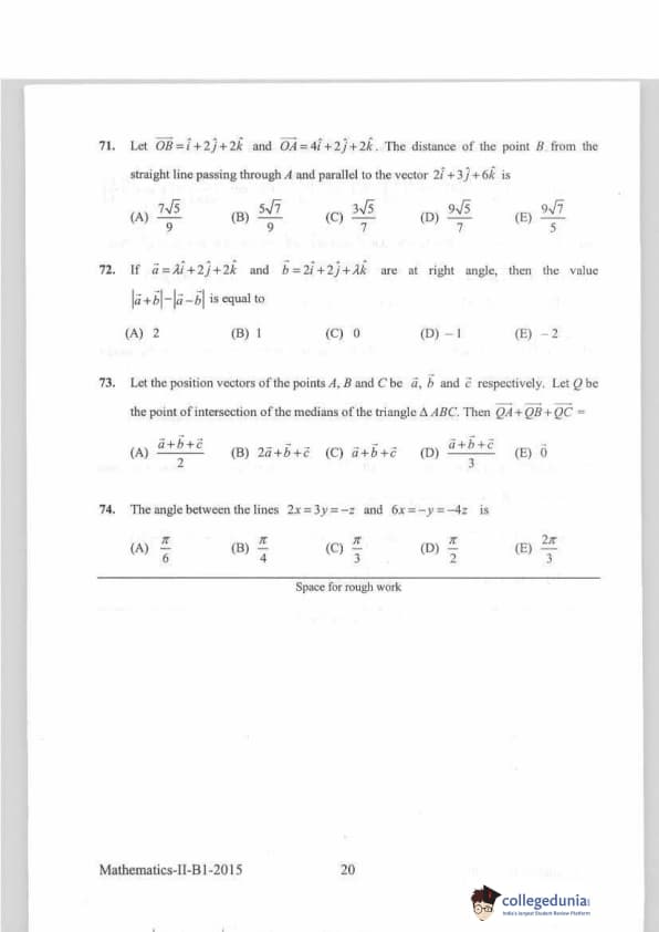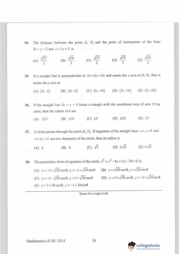 KEAM 2015 Mathematics Question paper with answer key pdf conducted on April 21, 2015 is available for download. The exam was successfully organized by Commissioner of Entrance Examinations Kerala. The question paper comprised a total of 120 questions.