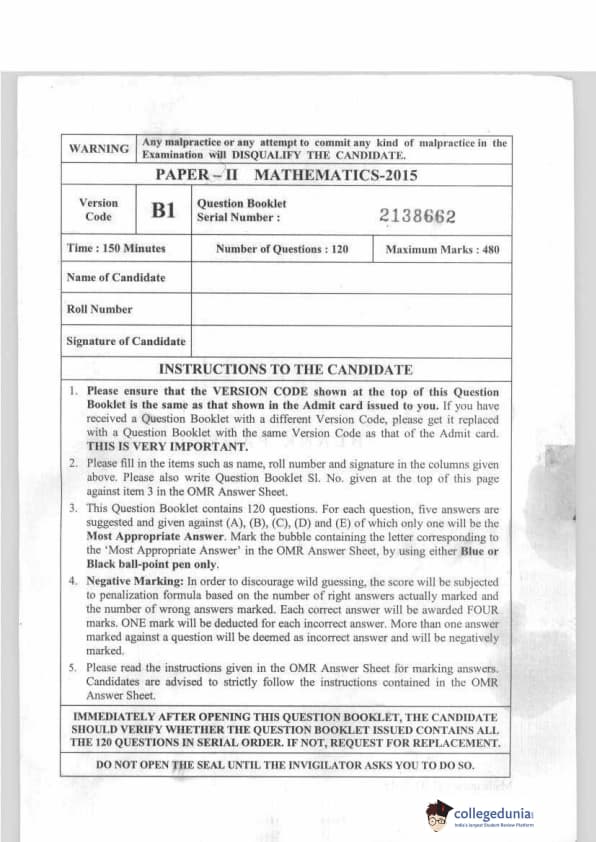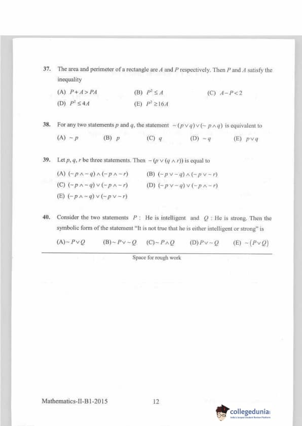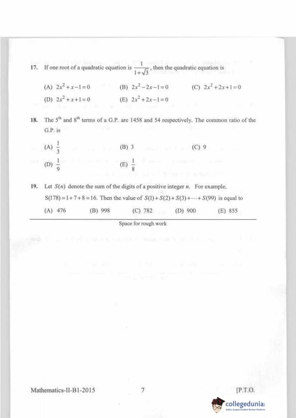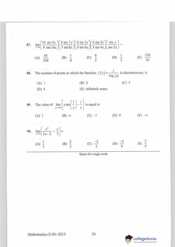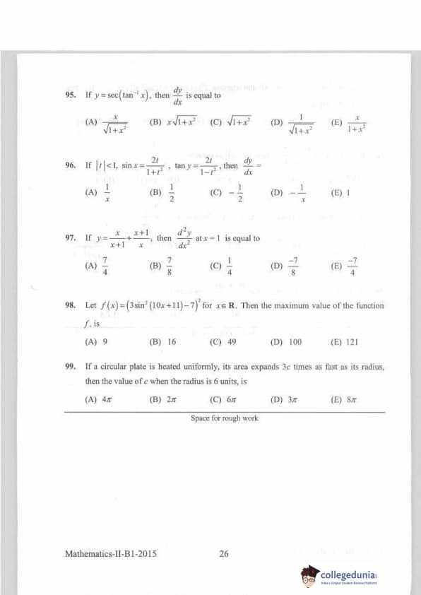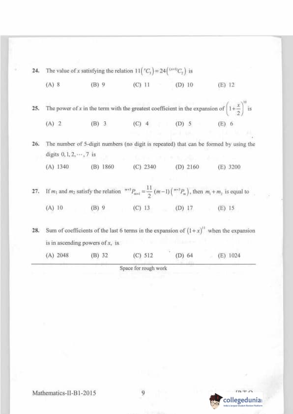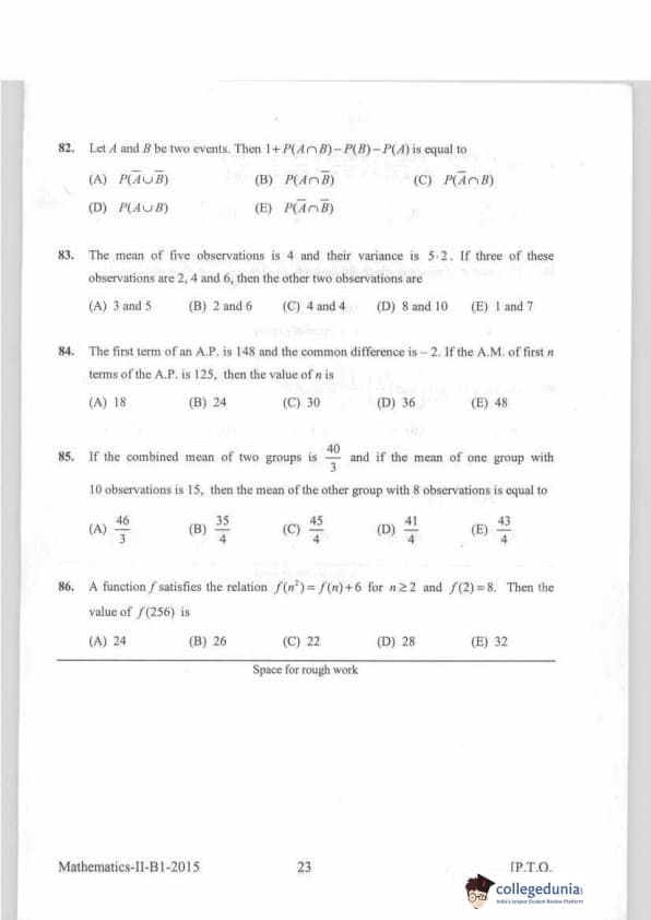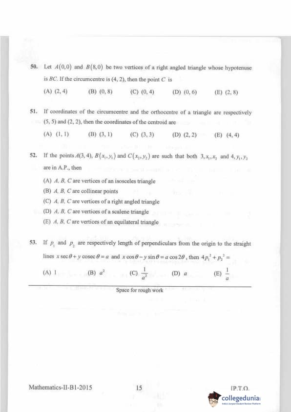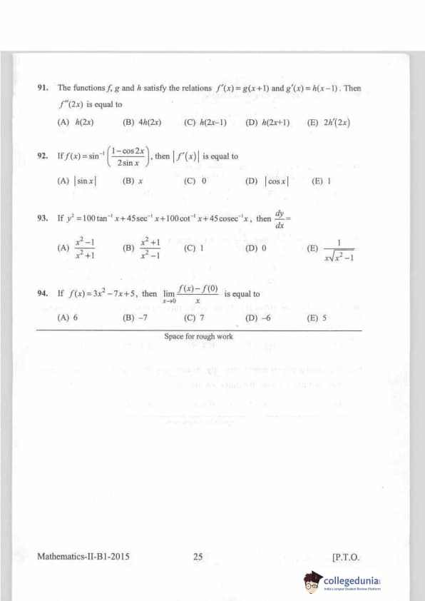 KEAM 2015 Mathematics Question paper with answer key pdf conducted on April 21, 2015 is available for download. The exam was successfully organized by Commissioner of Entrance Examinations Kerala. The question paper comprised a total of 120 questions.