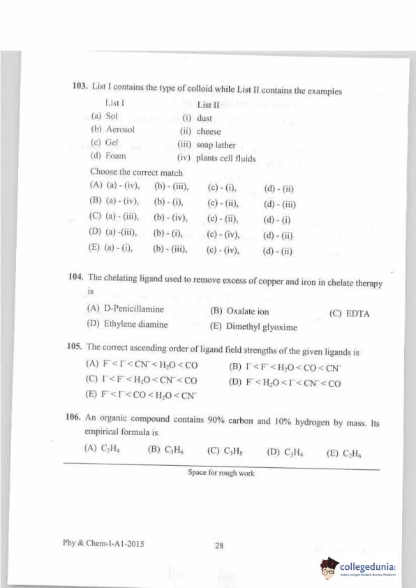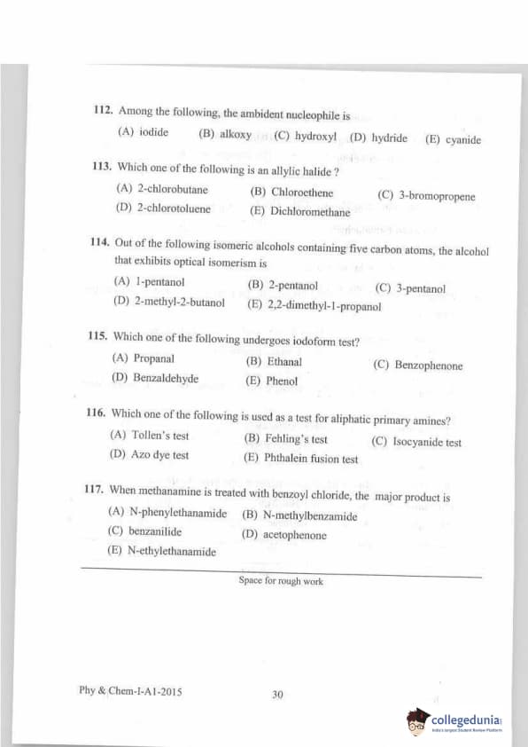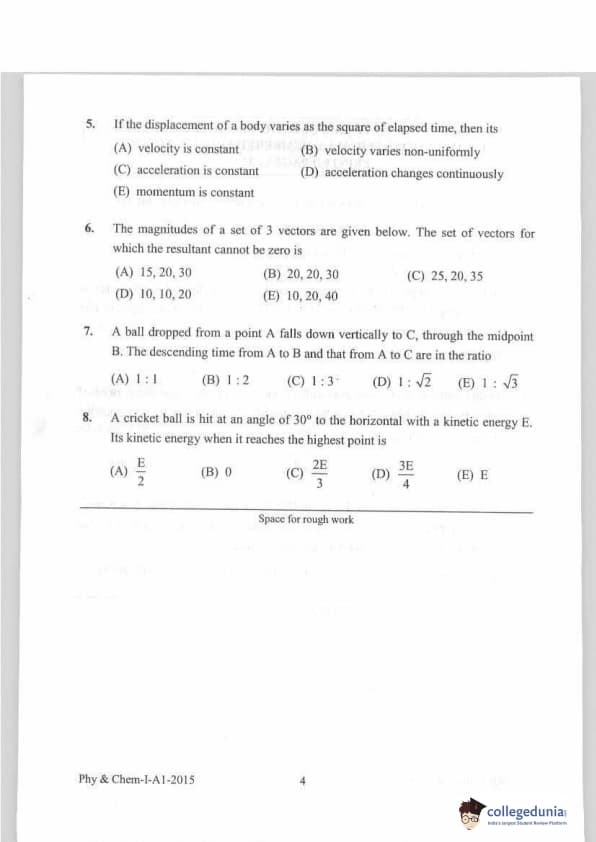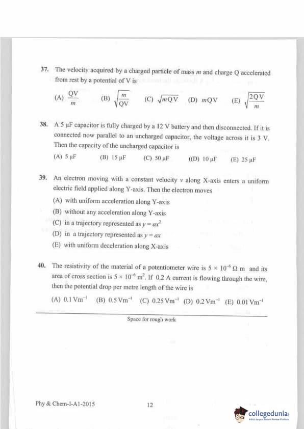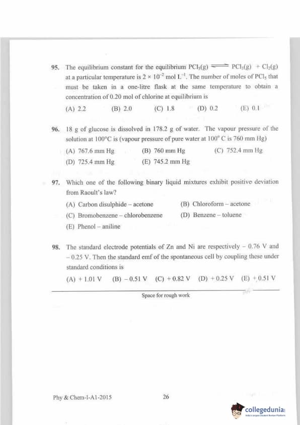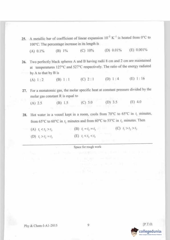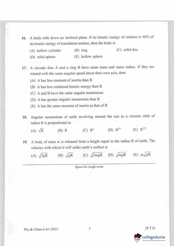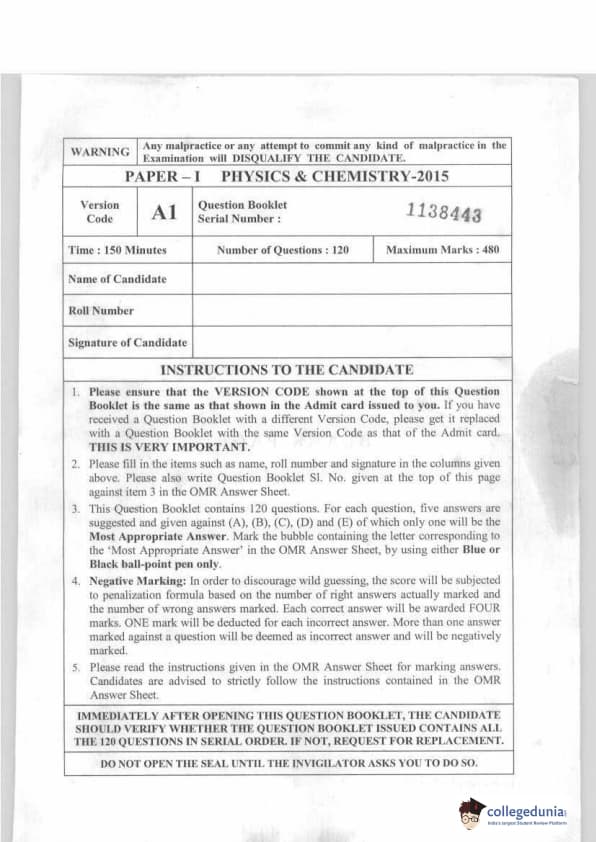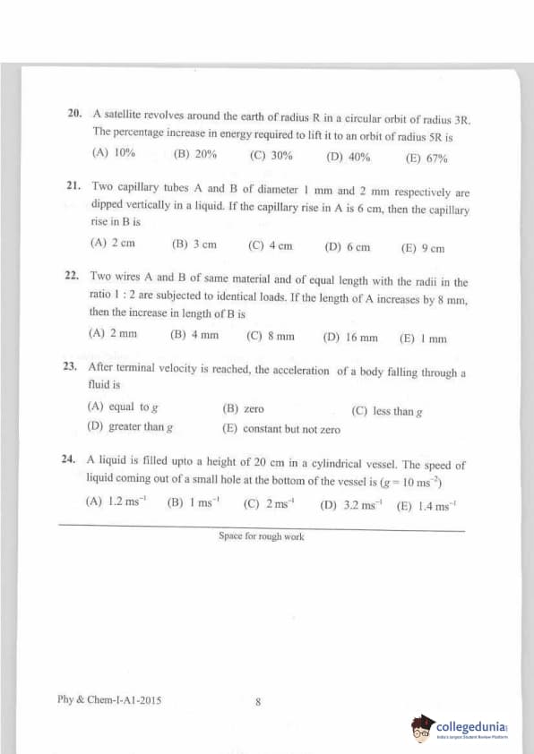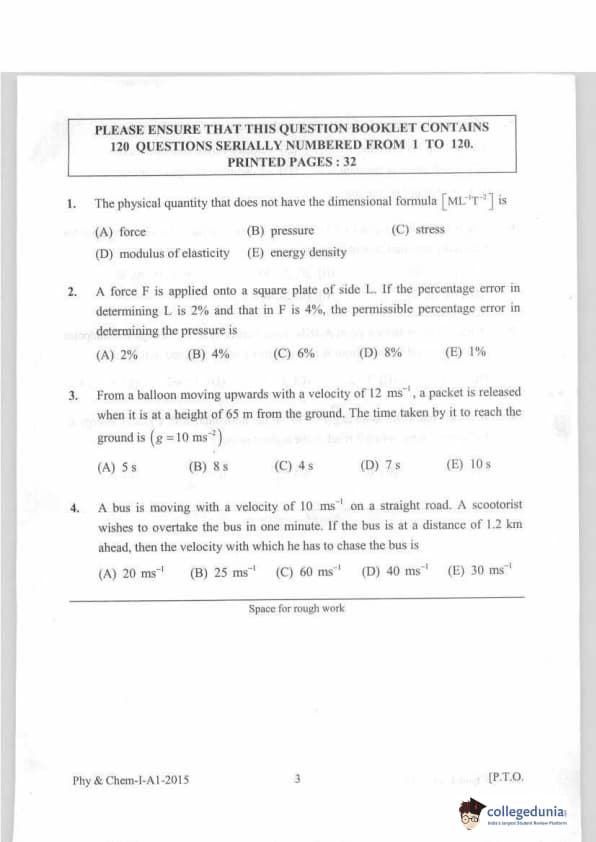 KEAM 2015 Physics & Chemistry Question paper with answer key pdf conducted on April 20, 2015 is available for download. The exam was successfully organized by Commissioner of Entrance Examinations Kerala. The question paper comprised a total of 120 questions.
