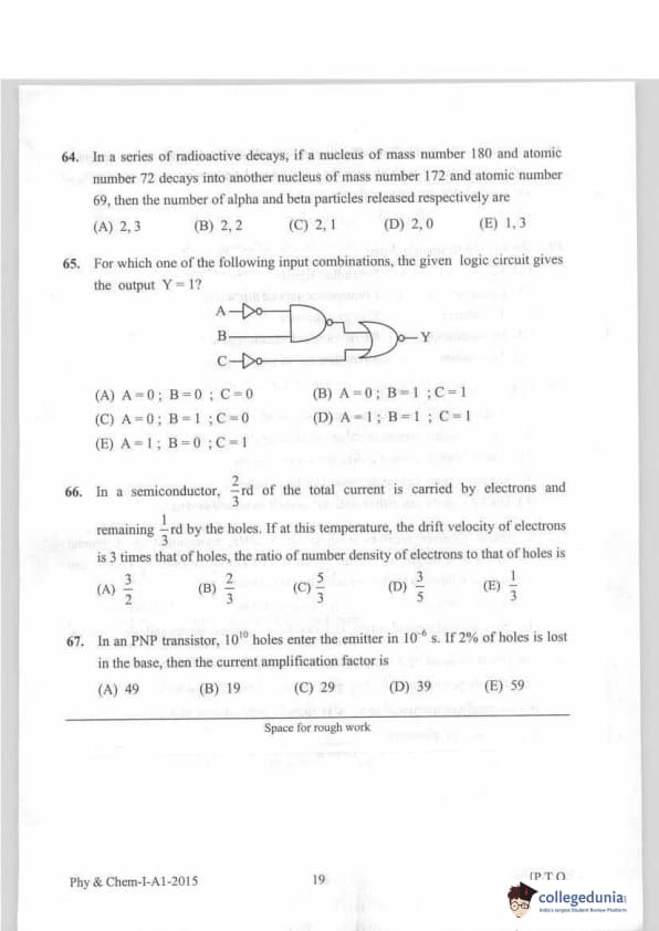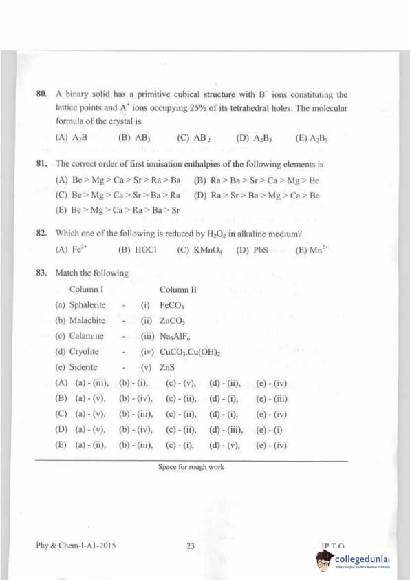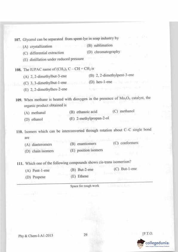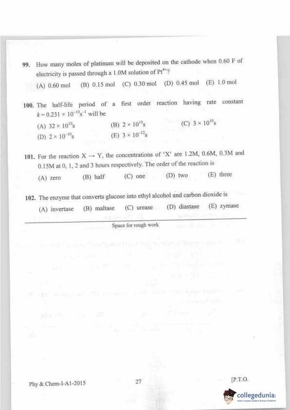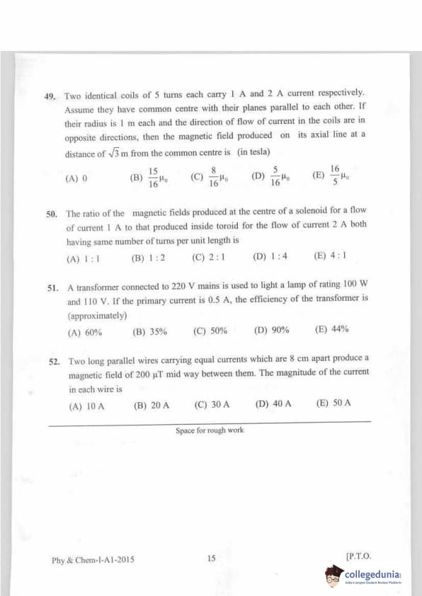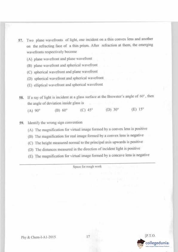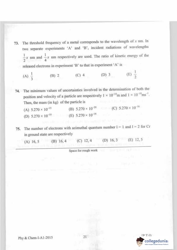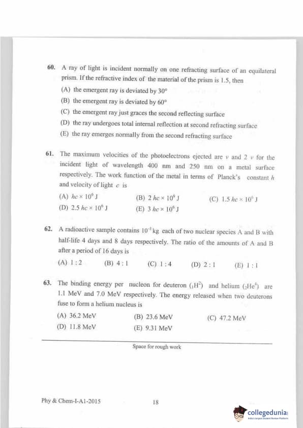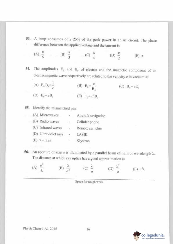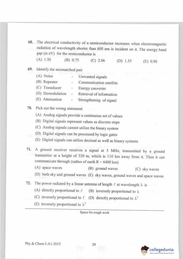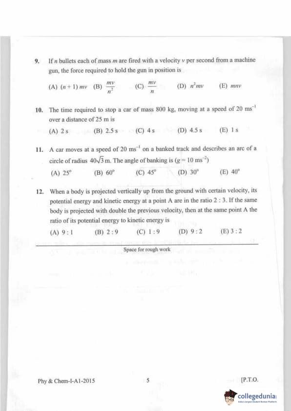 KEAM 2015 Physics & Chemistry Question paper with answer key pdf conducted on April 20, 2015 is available for download. The exam was successfully organized by Commissioner of Entrance Examinations Kerala. The question paper comprised a total of 120 questions.