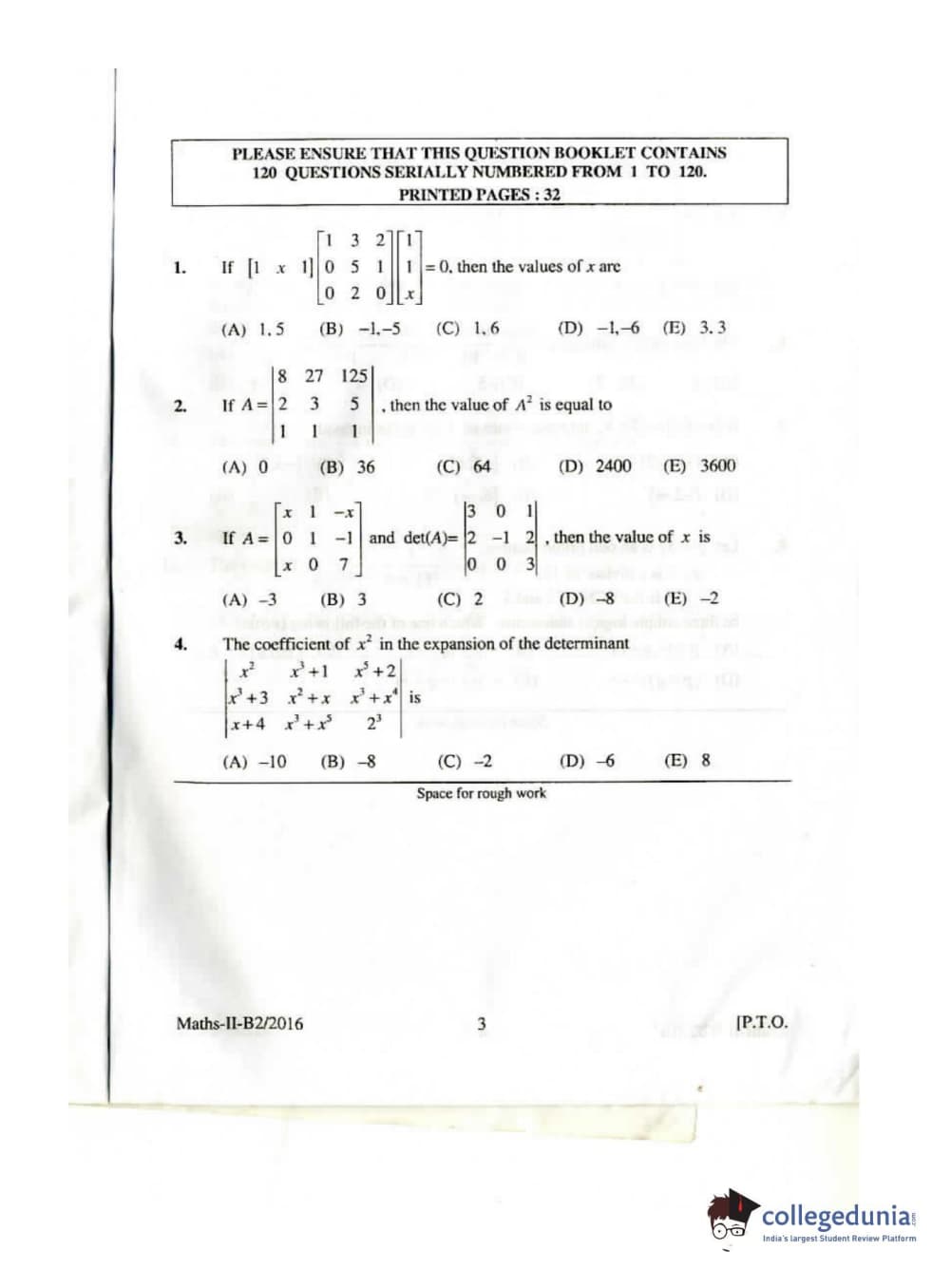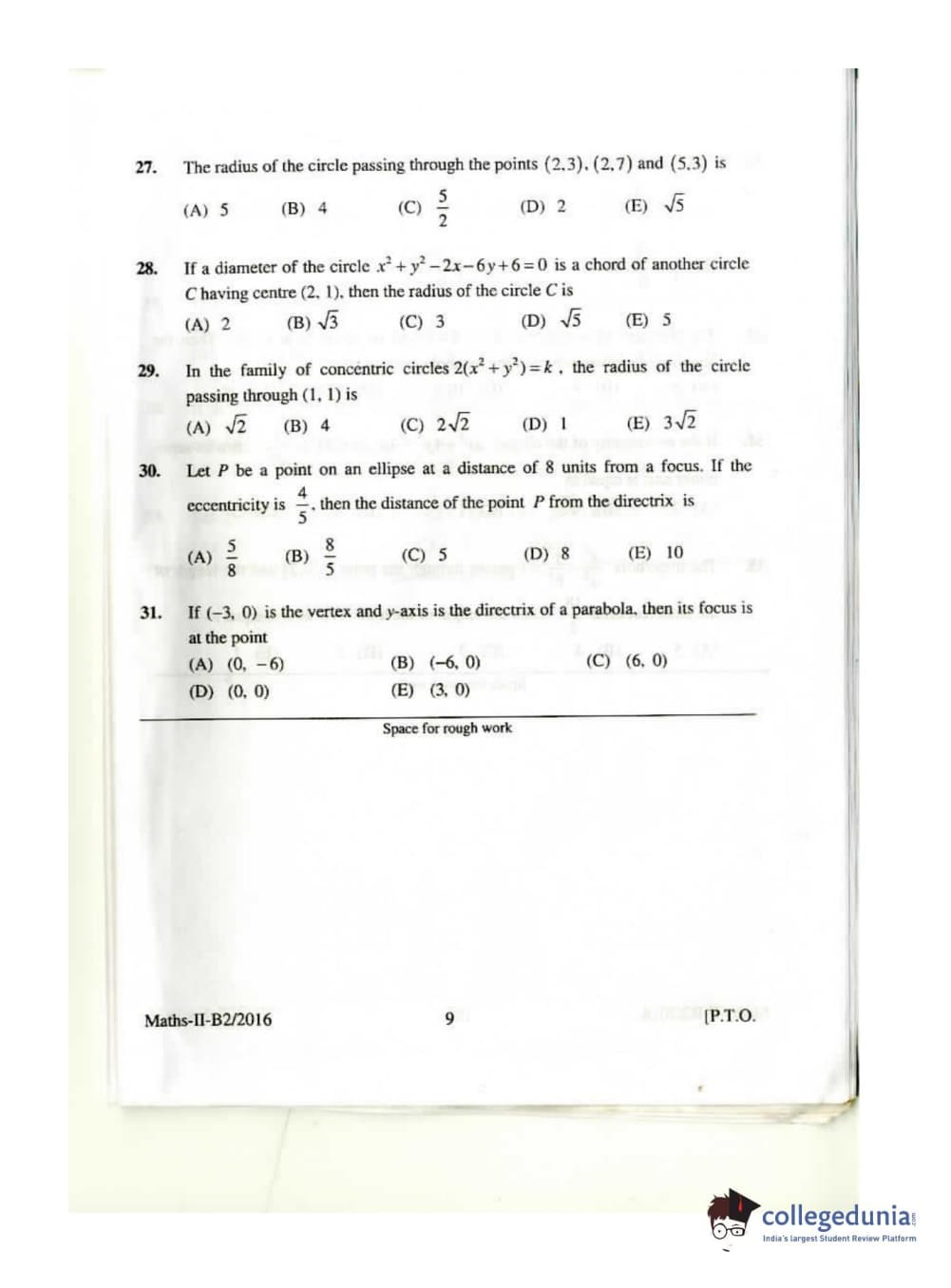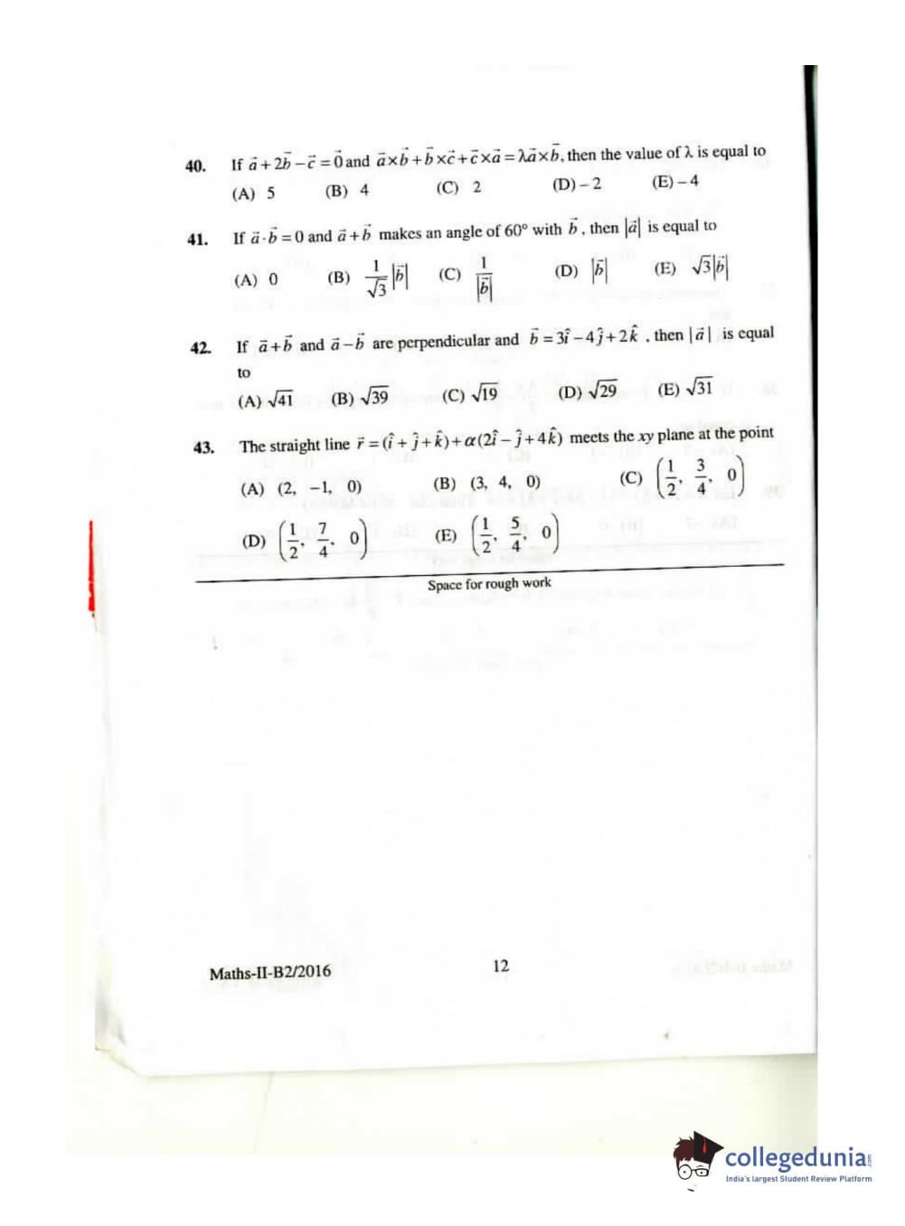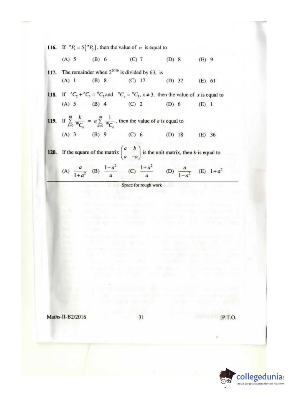 KEAM 2016 Mathematics Question paper with answer key pdf conducted on April 26, 2016 is available for download. The exam was successfully organized by Commissioner of Entrance Examinations Kerala. The question paper comprised a total of 120 questions.