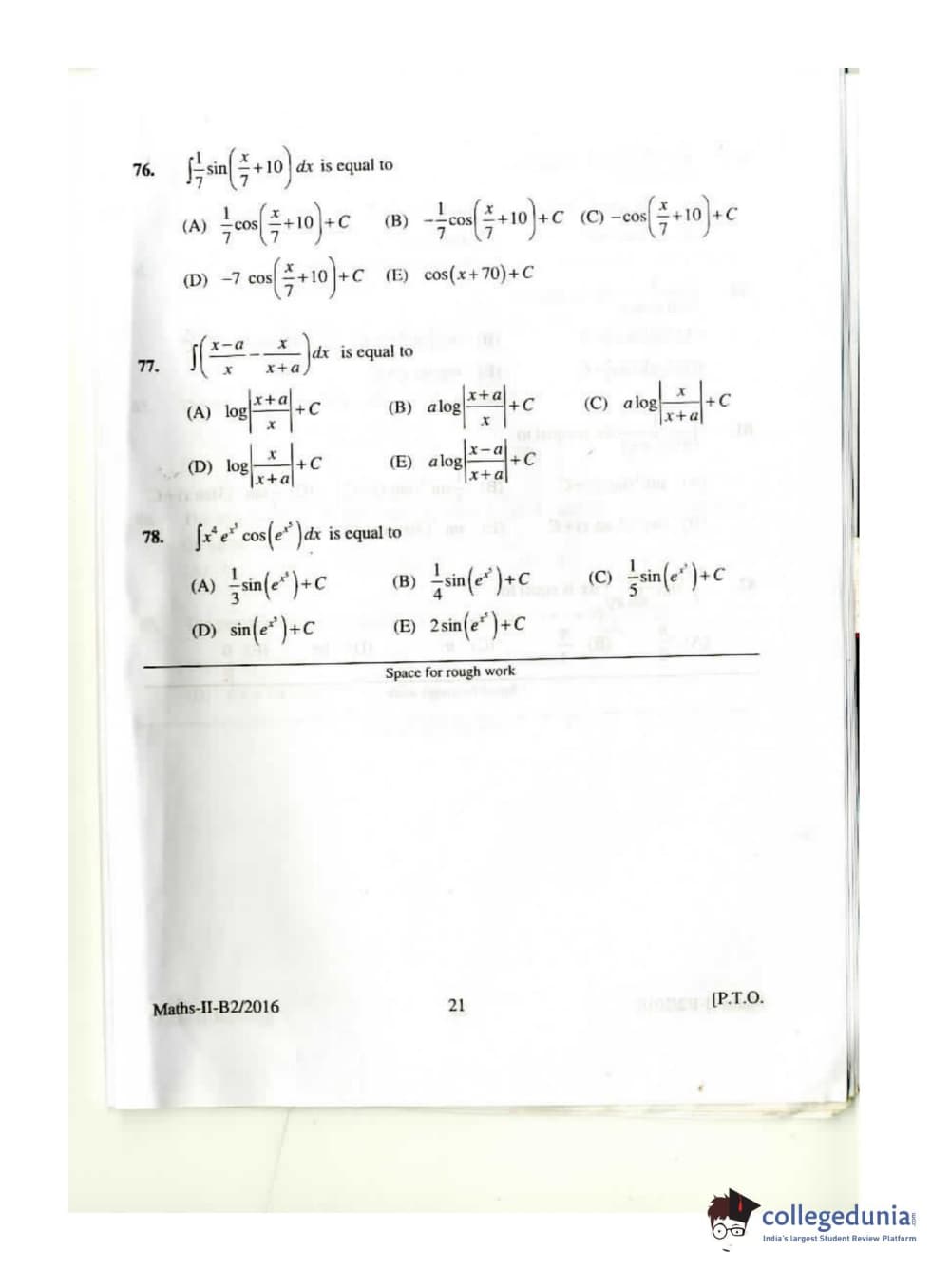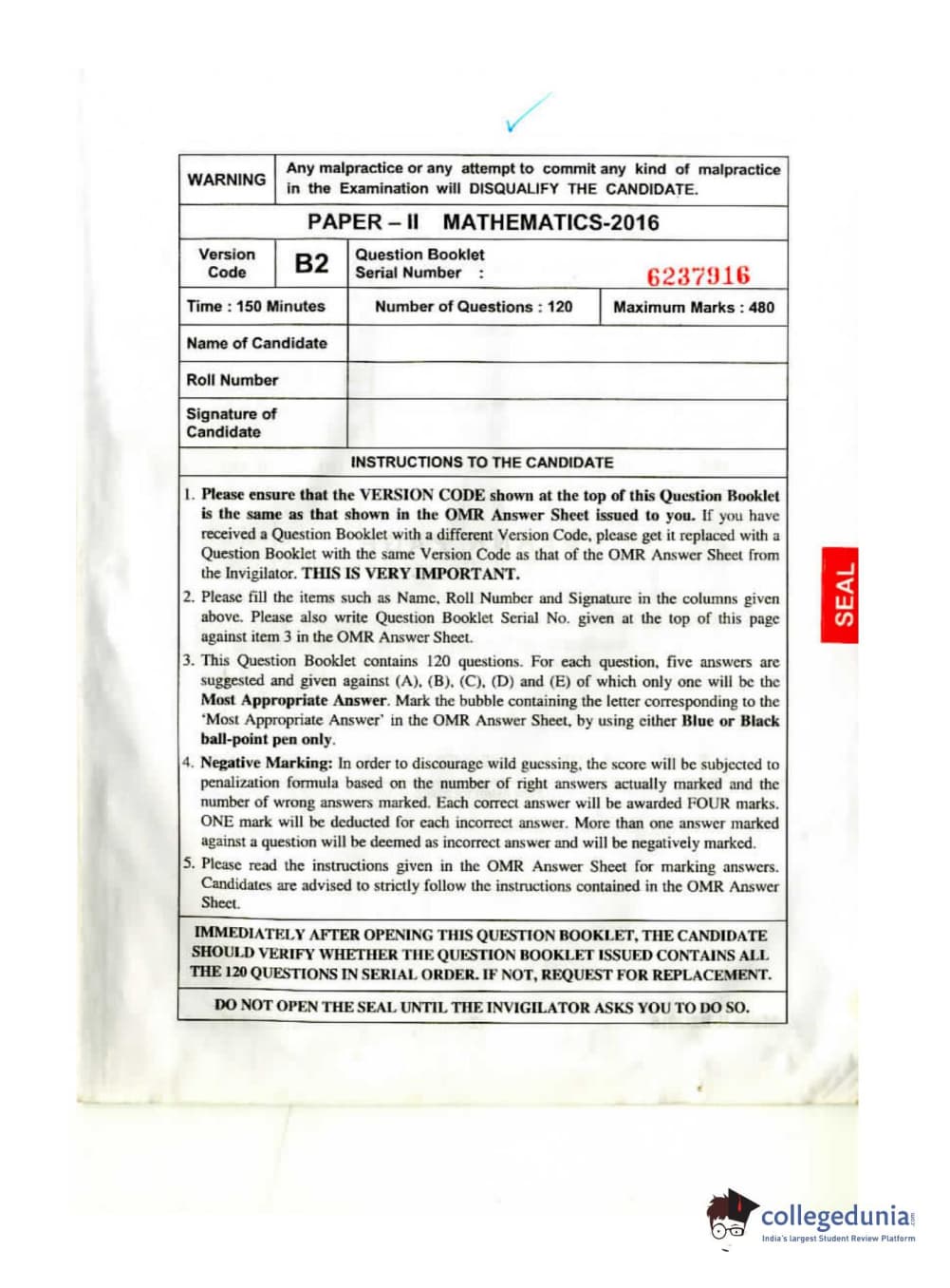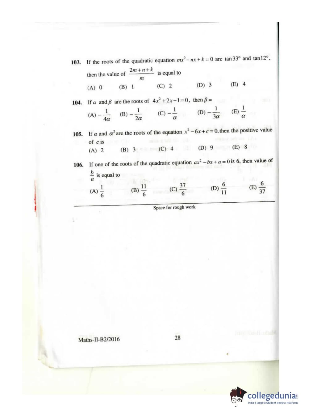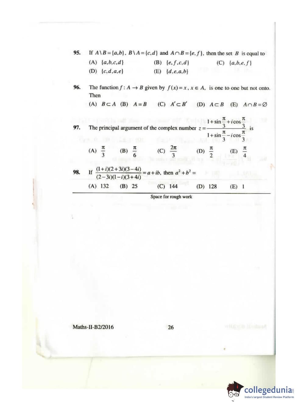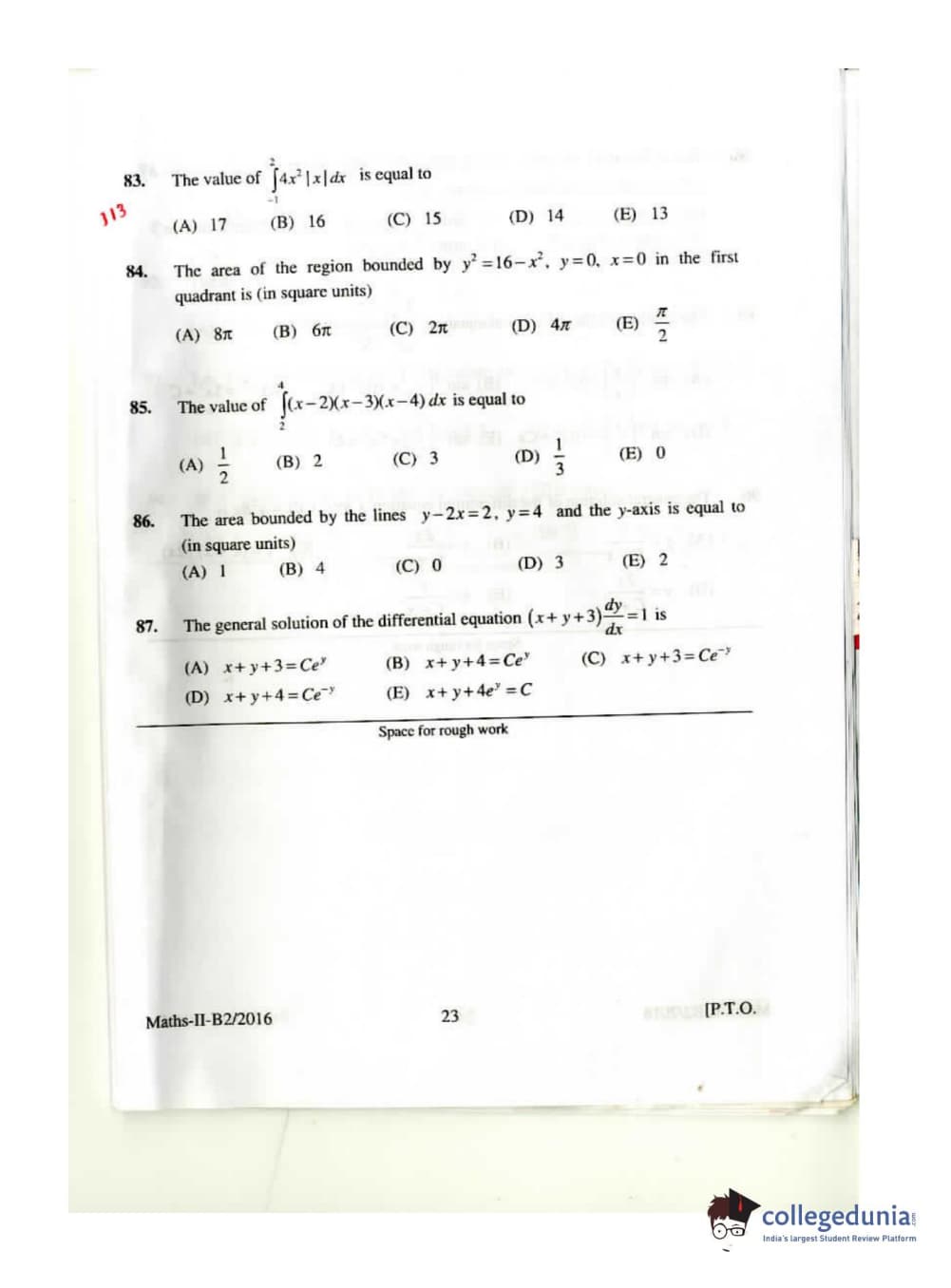 KEAM 2016 Mathematics Question paper with answer key pdf conducted on April 26, 2016 is available for download. The exam was successfully organized by Commissioner of Entrance Examinations Kerala. The question paper comprised a total of 120 questions.