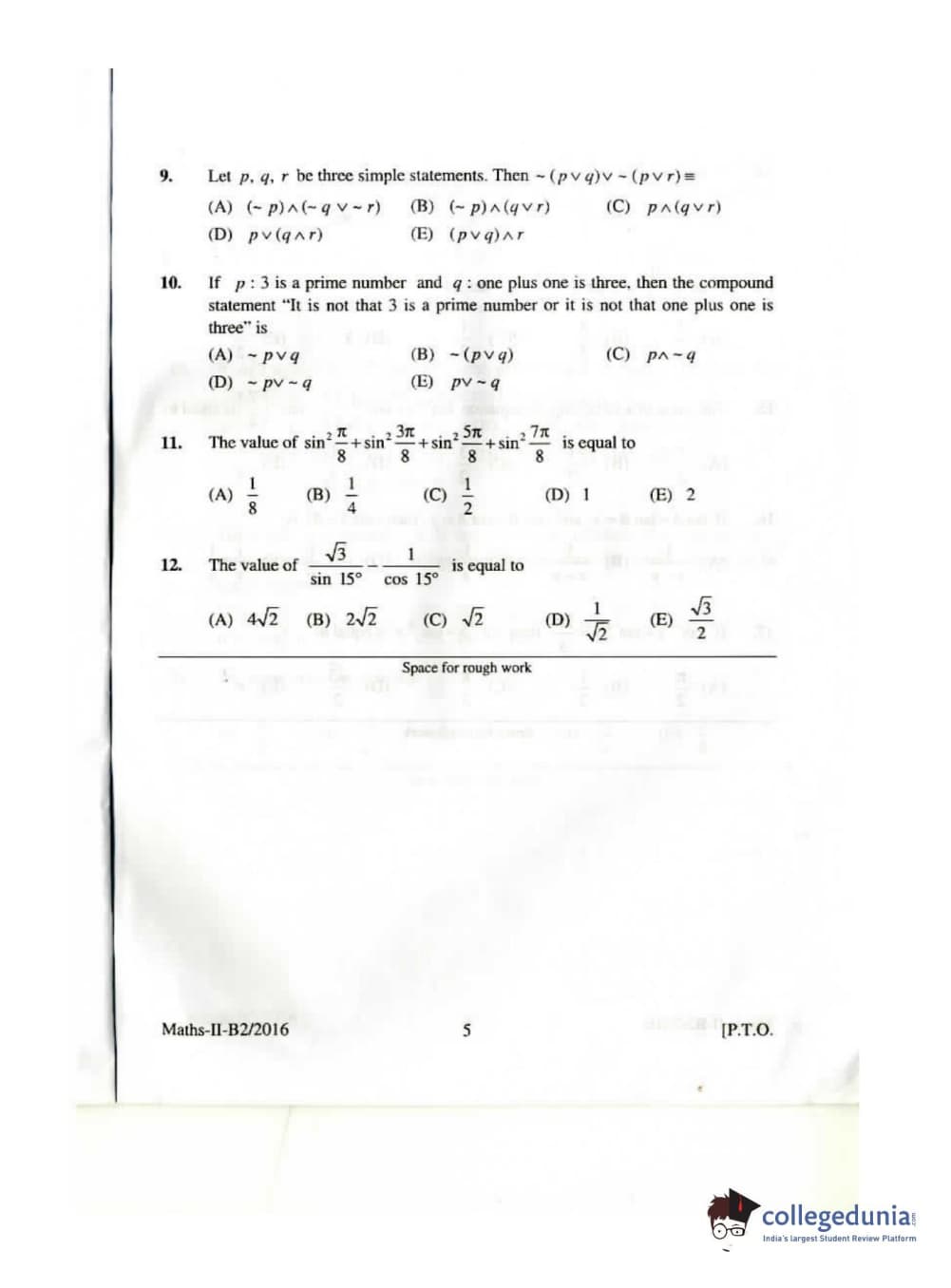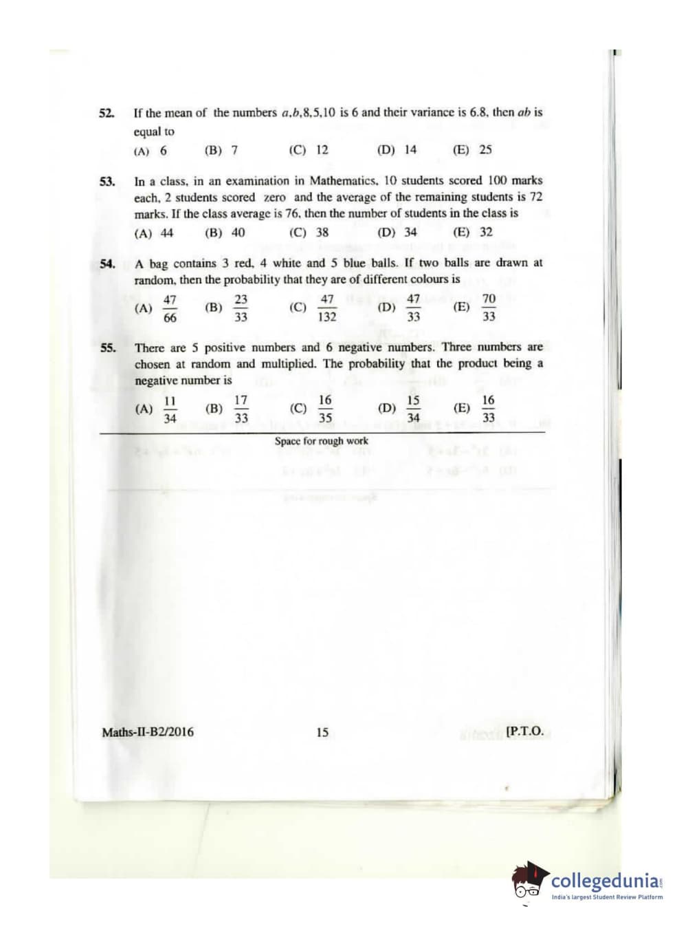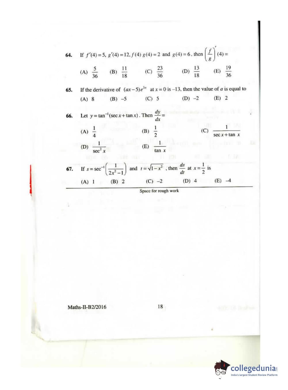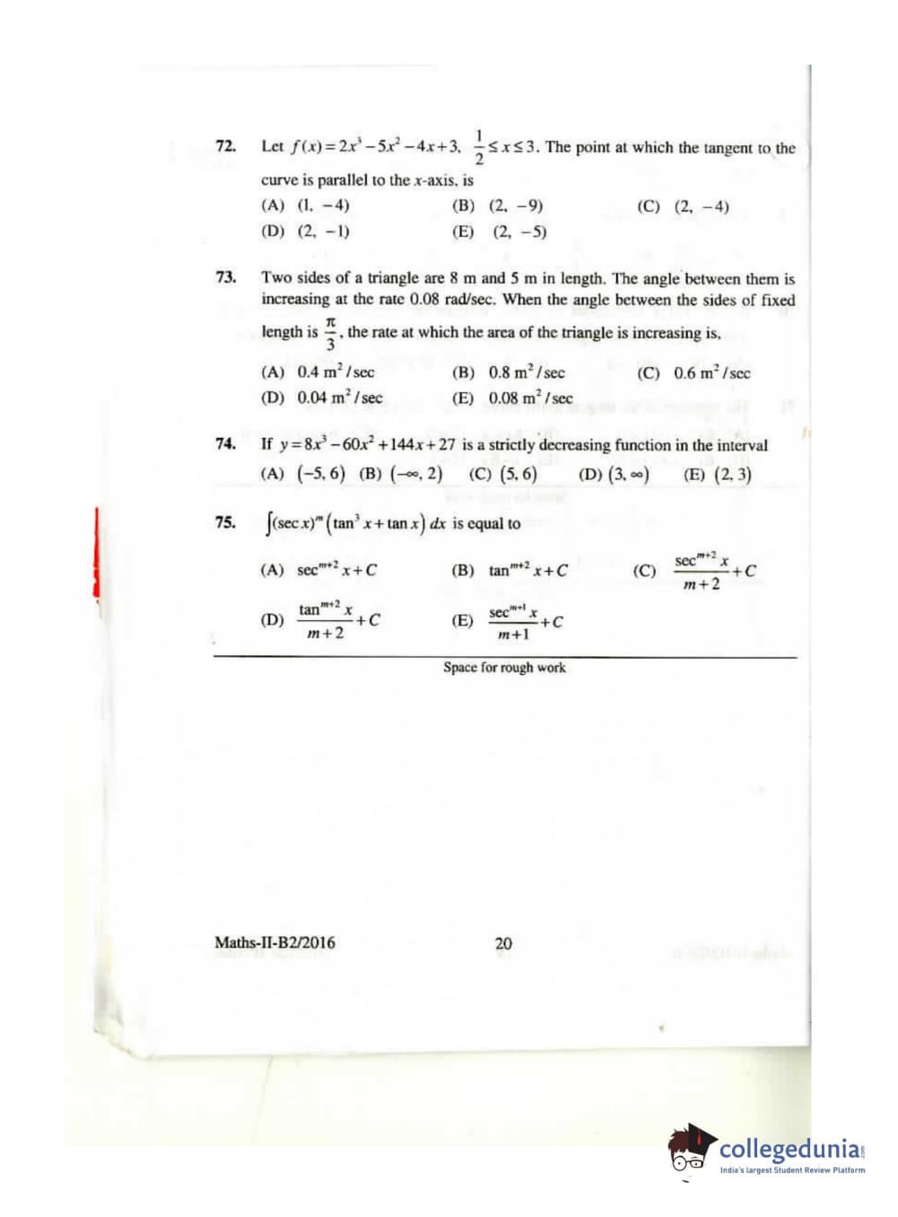 KEAM 2016 Mathematics Question paper with answer key pdf conducted on April 26, 2016 is available for download. The exam was successfully organized by Commissioner of Entrance Examinations Kerala. The question paper comprised a total of 120 questions.